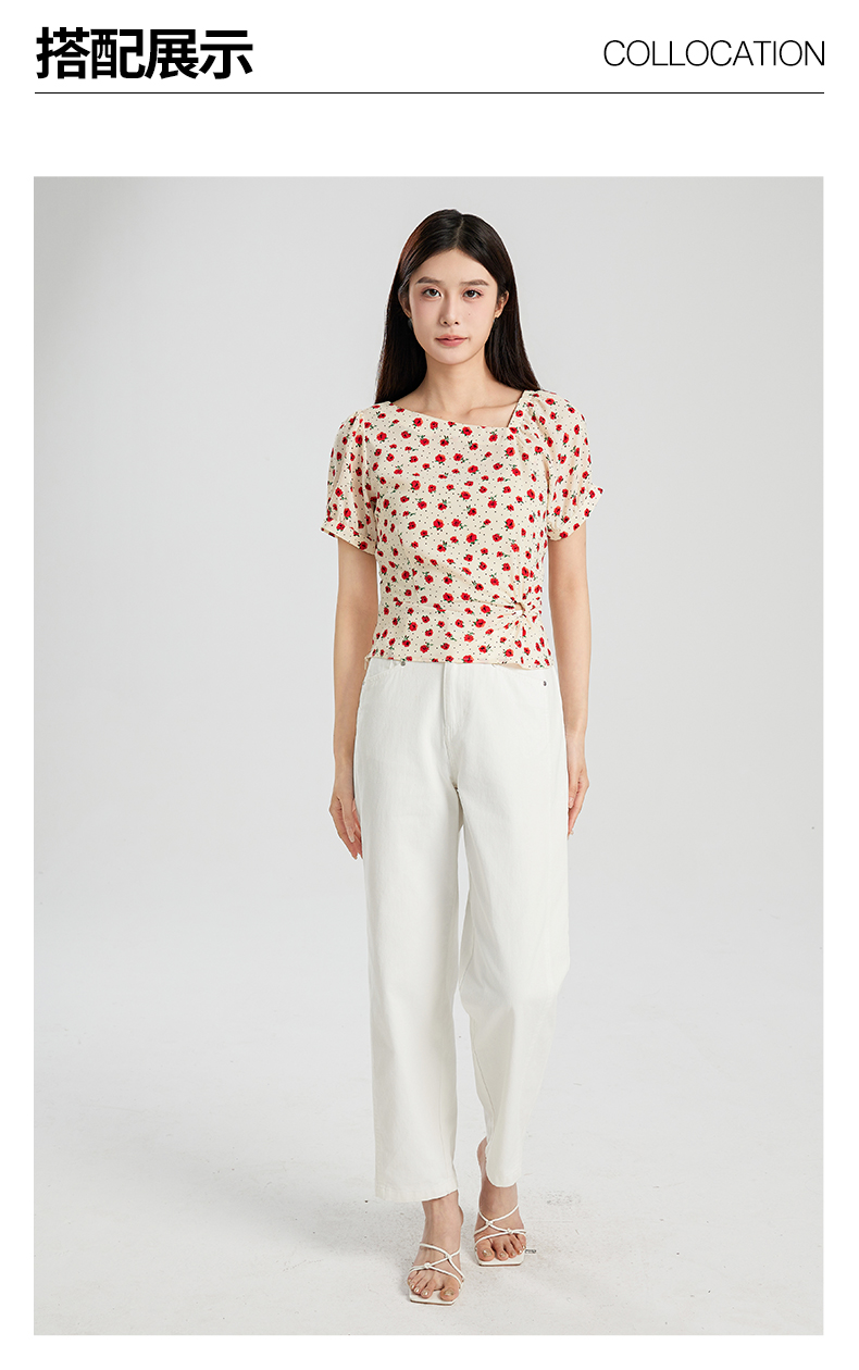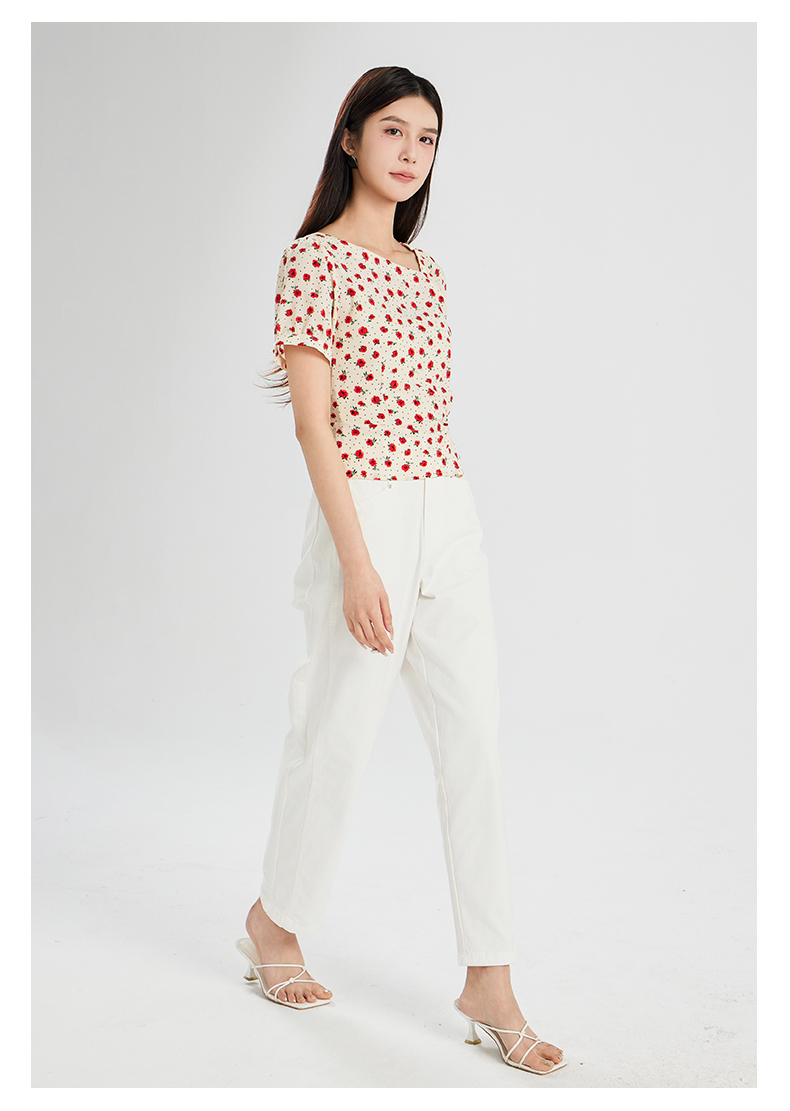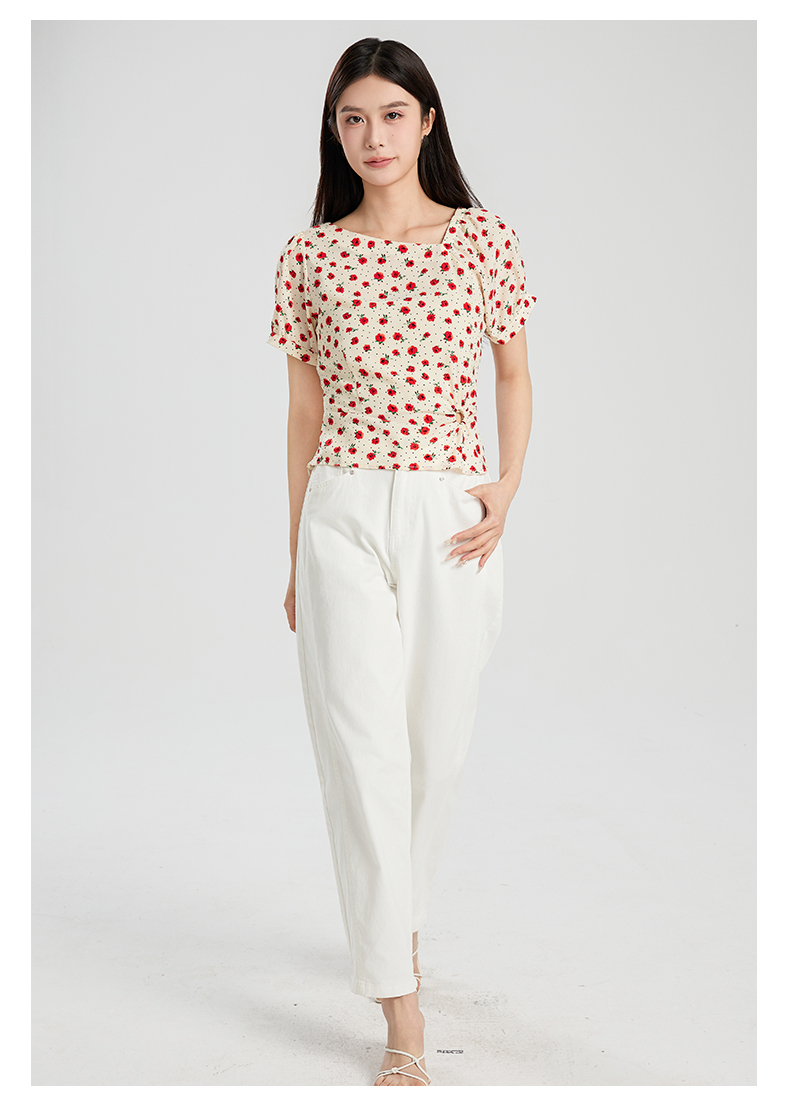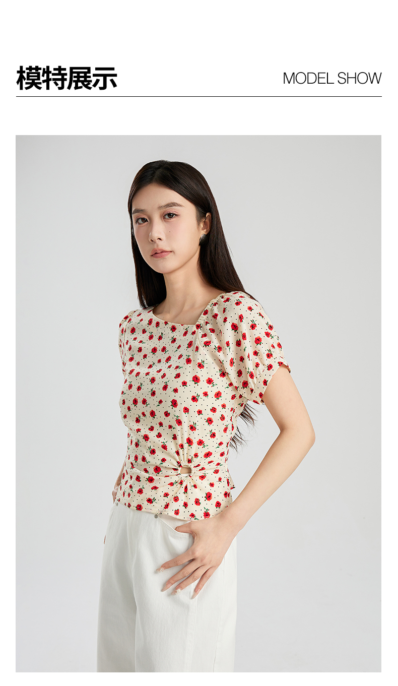 oldcolour夏季新款设计感气质收腰短袖套头碎花衬衫女Q280106A1