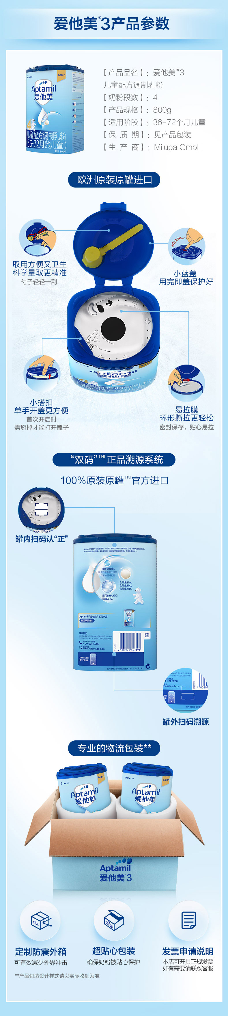 爱他美儿童配方调制乳粉(36-72月龄4段)800g