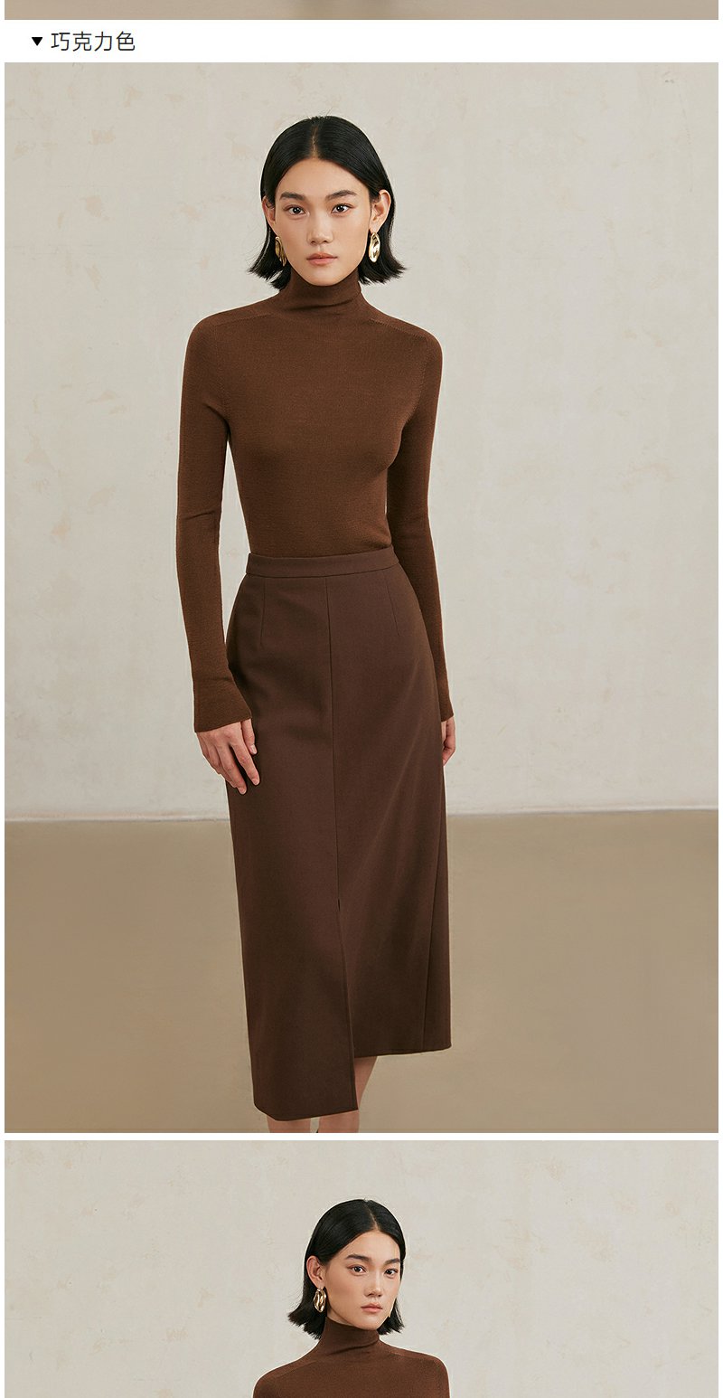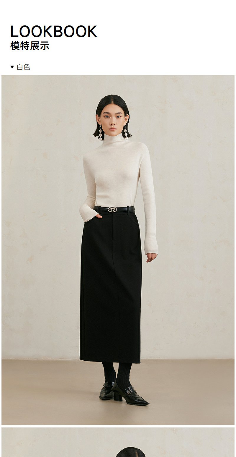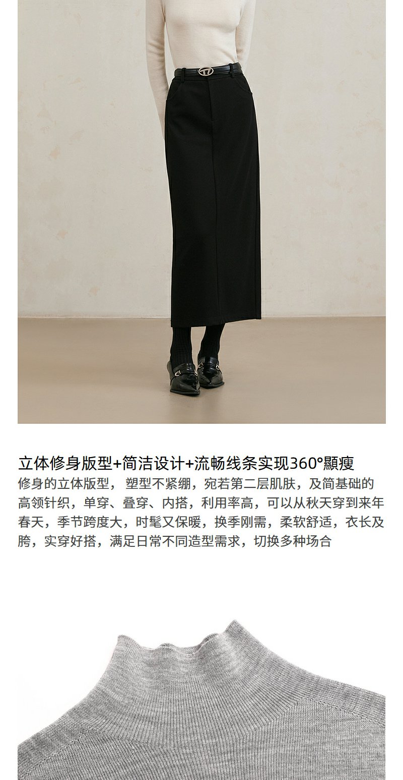 NEELLY纳俪商场同款冬季新款纯羊毛高领套头针织衫女通勤简约毛衣N25104A04421