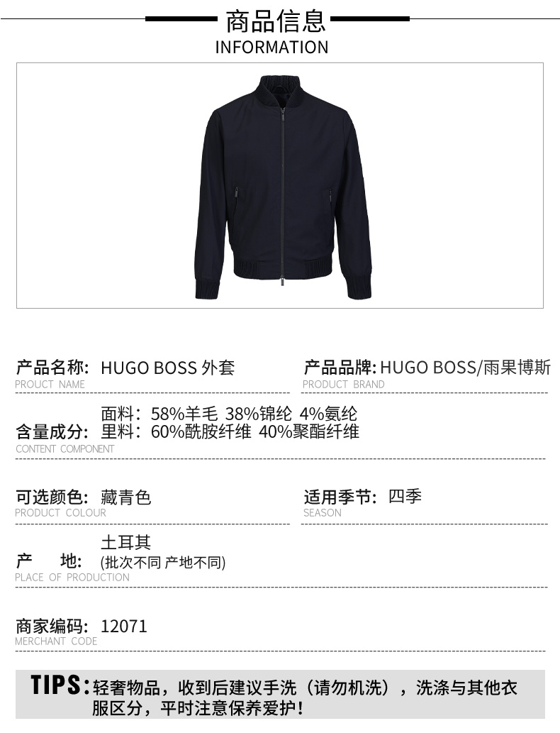 【超惠秒】BOSS 男士弹棉羊毛刺绣简约质感夹克外套 12071