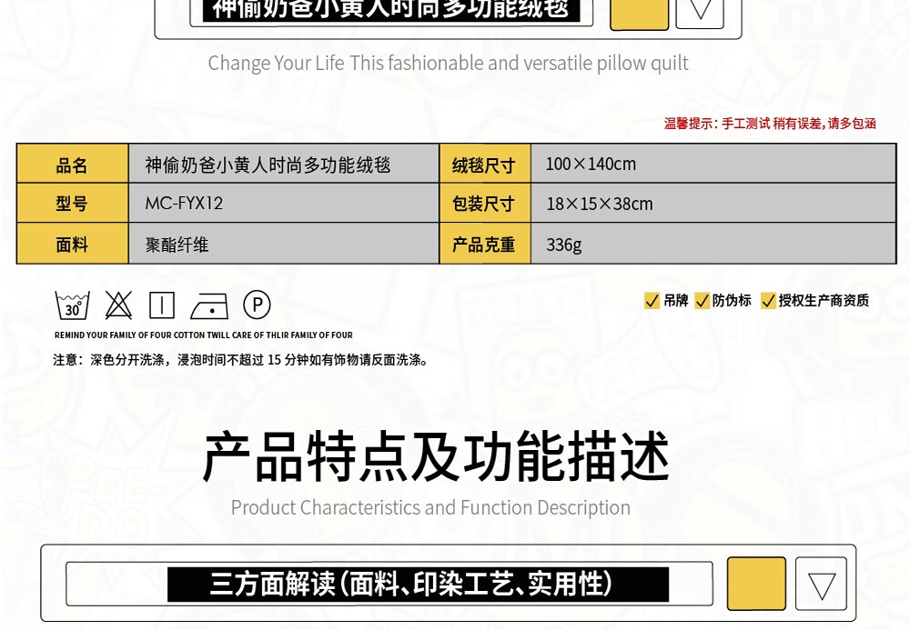 小黄人(Minions)时尚多功能绒毯MC-FYX12
