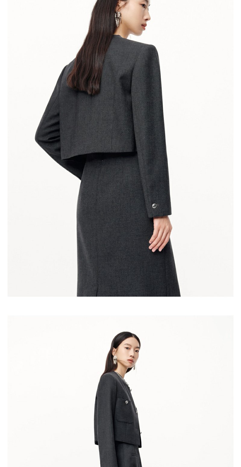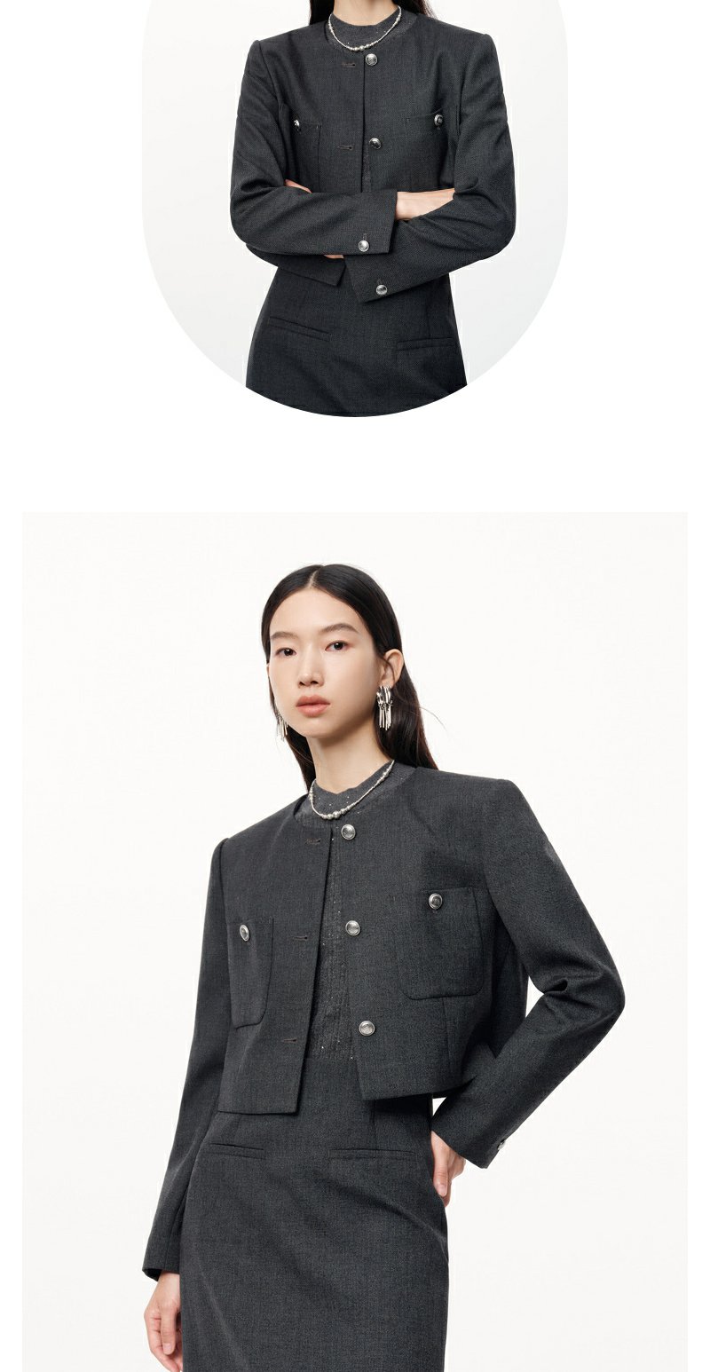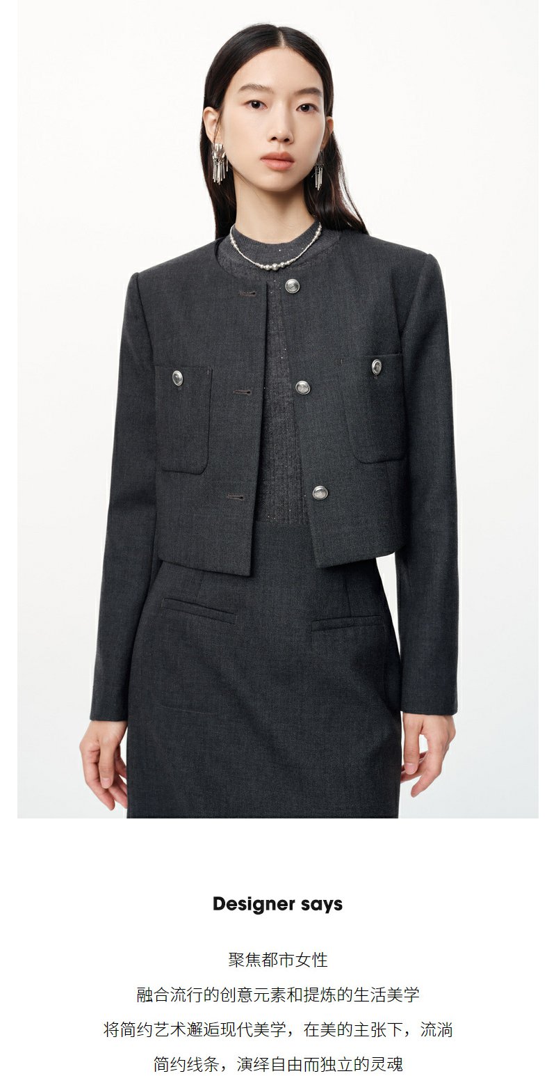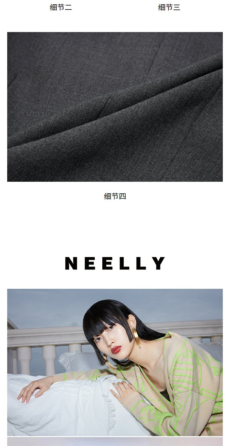 NEELLY纳俪2024秋商场同款绵羊毛混纺通勤灰色正肩短外套女新款N24091C01168