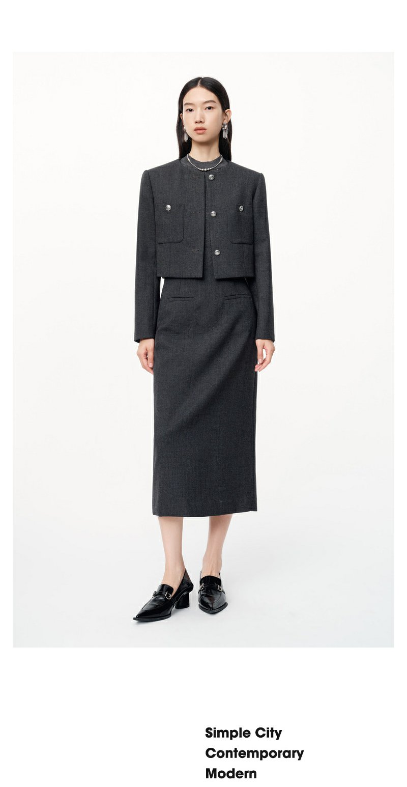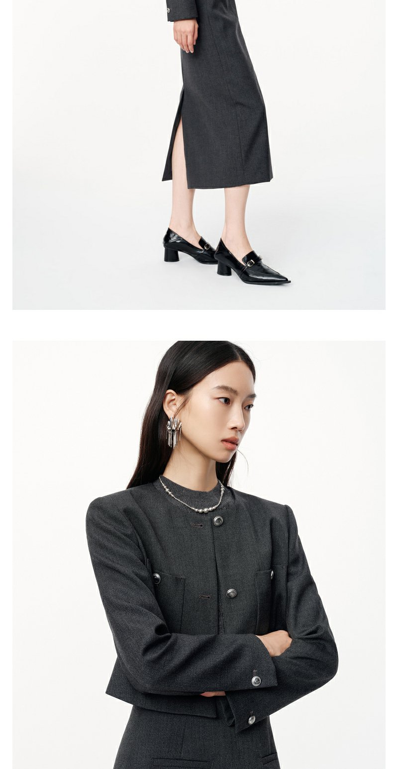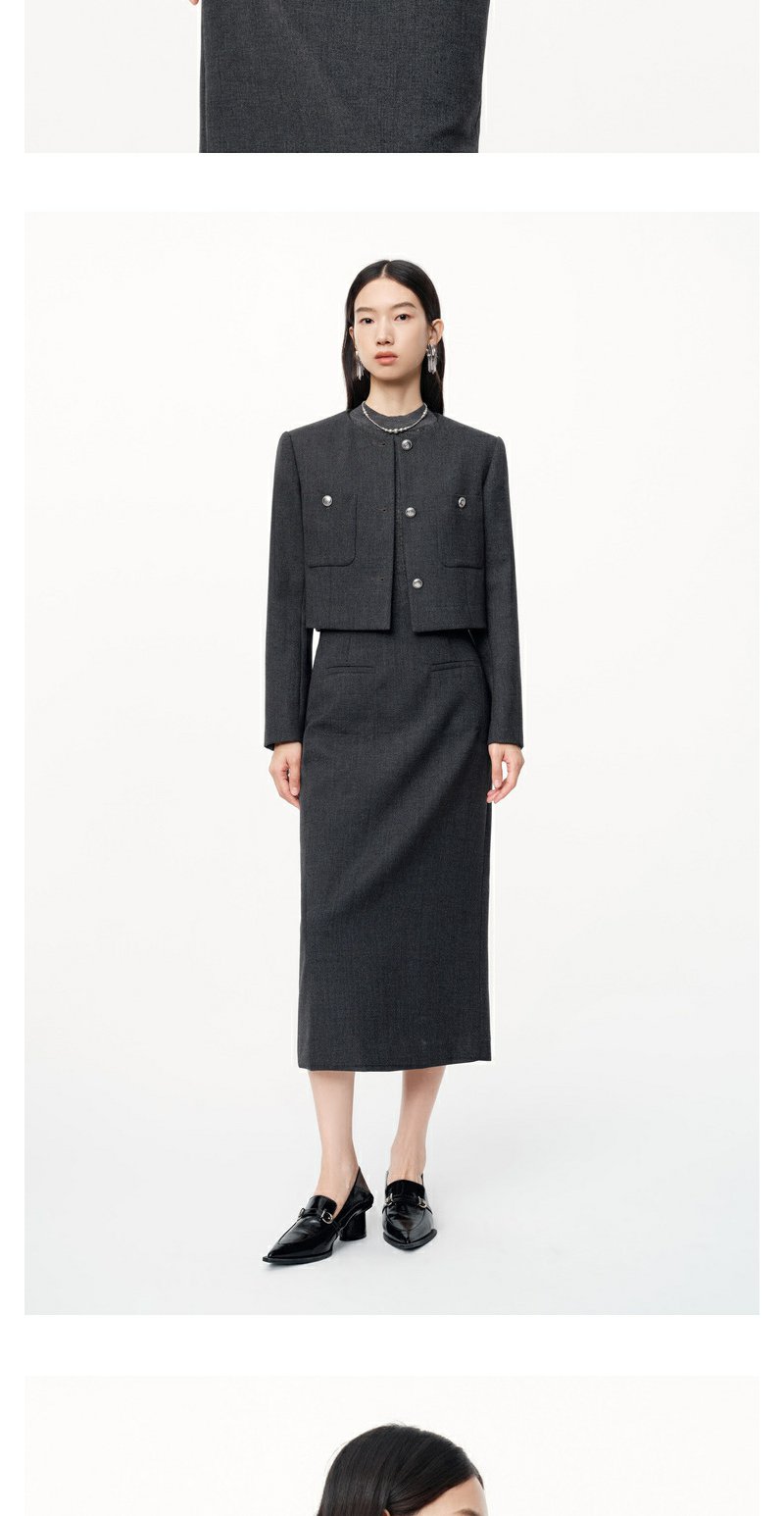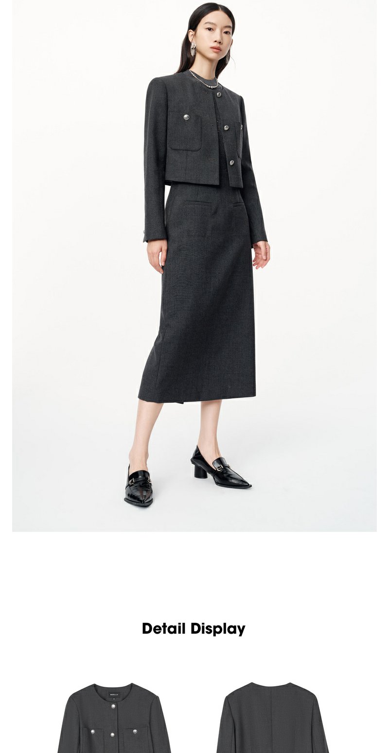 NEELLY纳俪2024秋商场同款绵羊毛混纺通勤灰色正肩短外套女新款N24091C01168