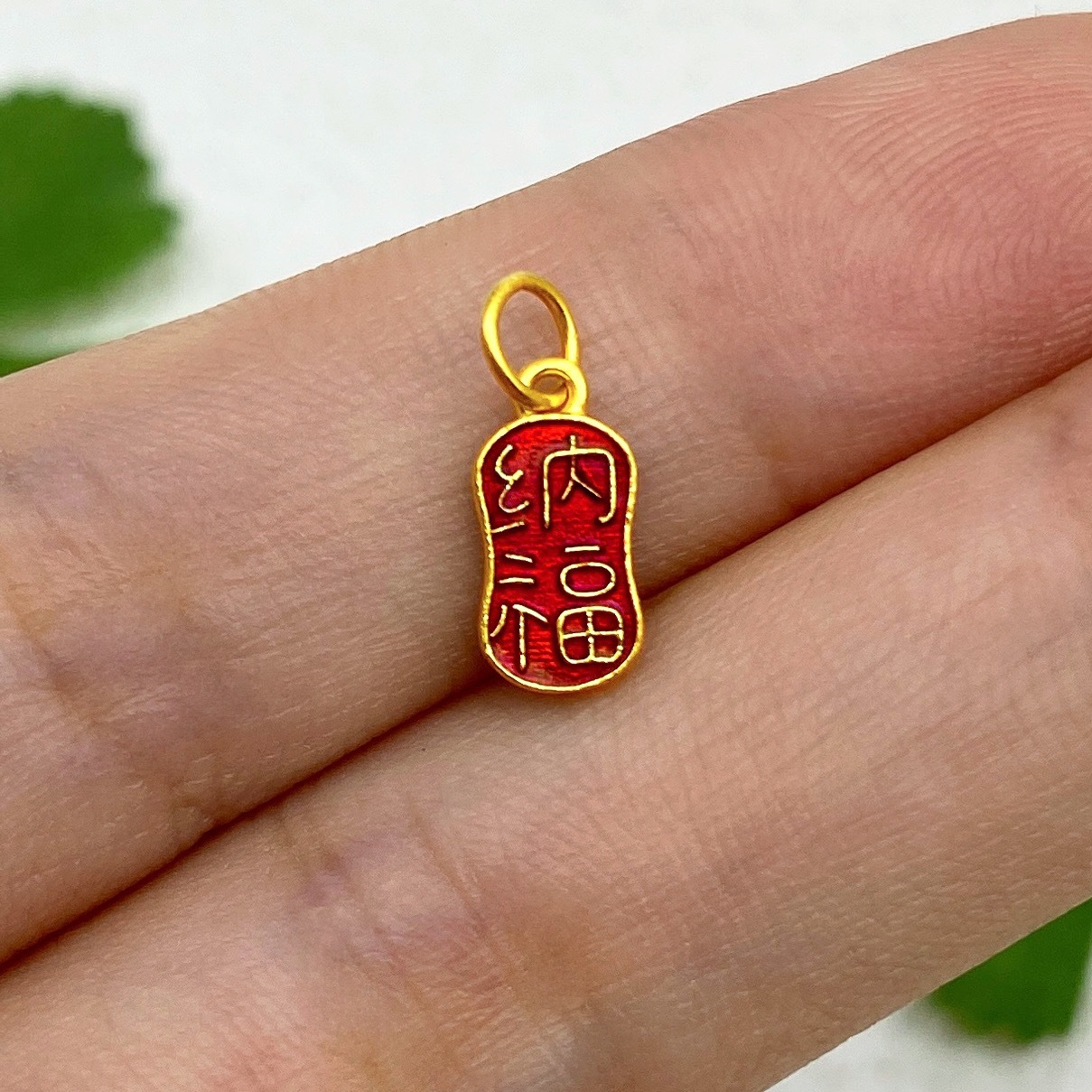 【限时7.5折】【定价黄金】足金 #招财纳福 #高温珐琅 古法实心高温烧蓝高温珐琅招财纳福牌字牌吊坠挂件(AKGFDZ00366)(预售产品下单后不退款不退货不换货不补差价)