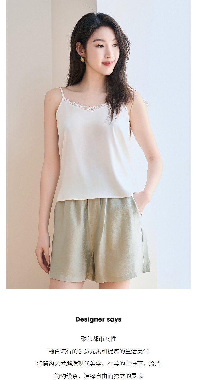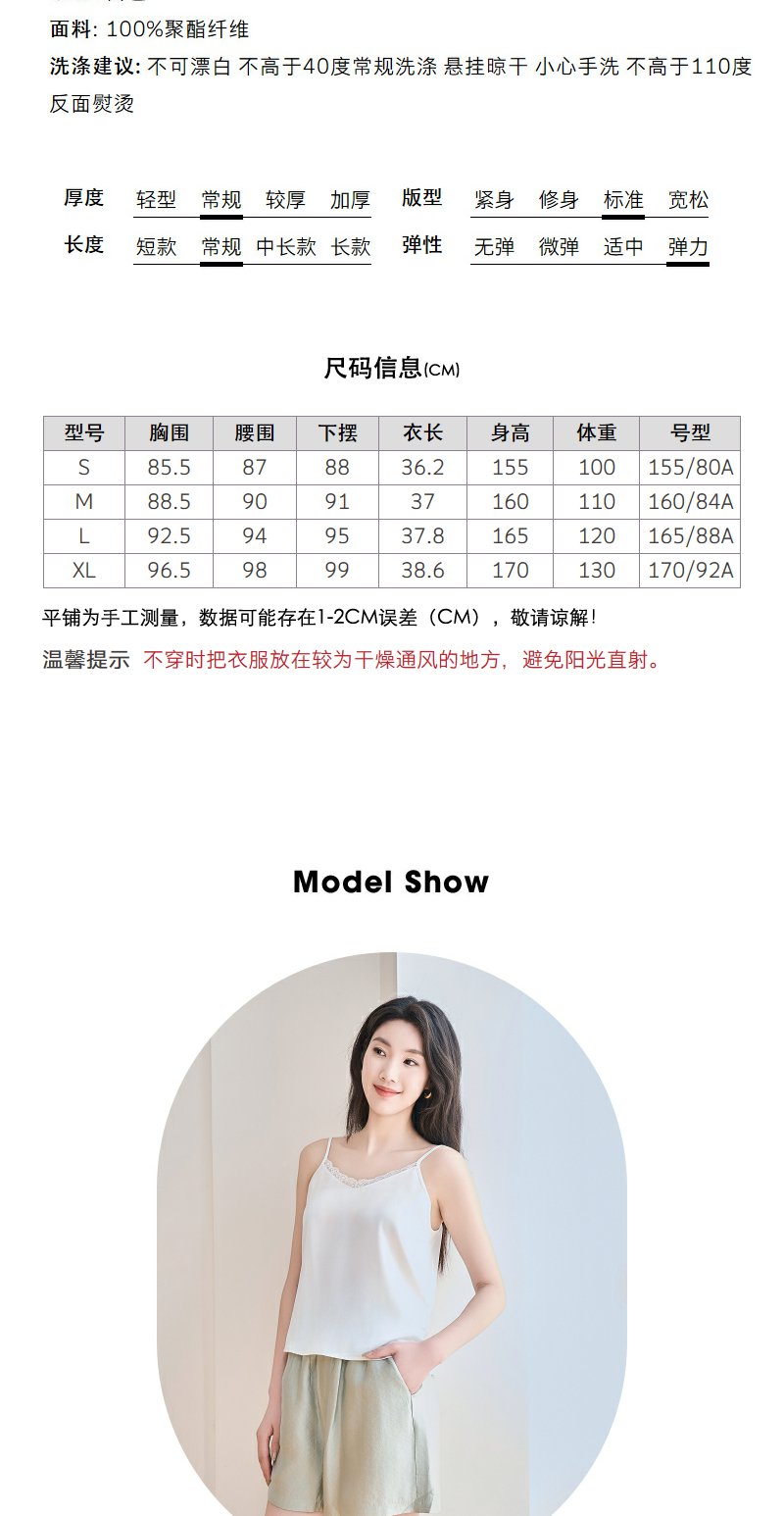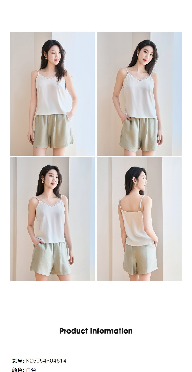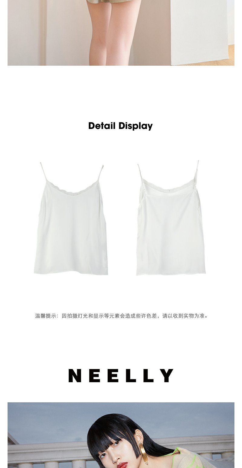 NEELLY纳俪商场同款夏新款时尚性感蕾丝边吊带女V领显瘦内搭上衣N25054R04614