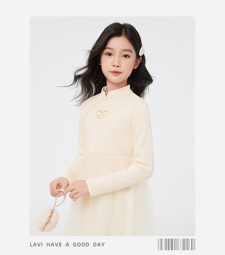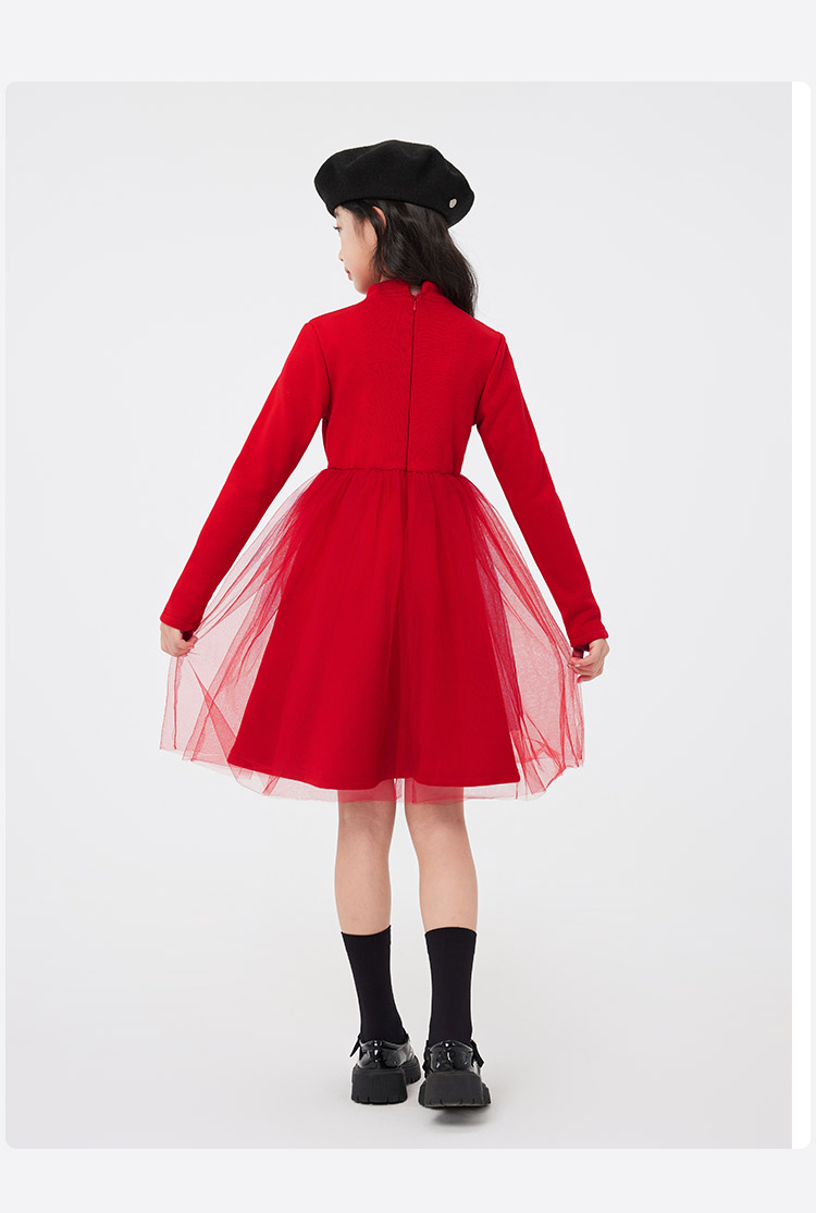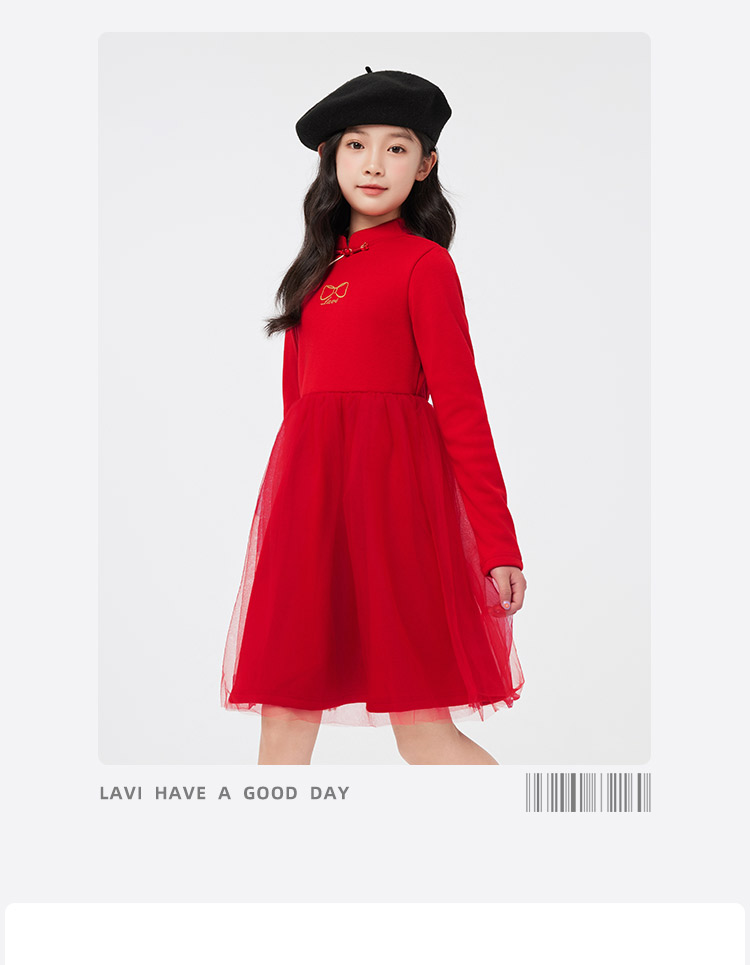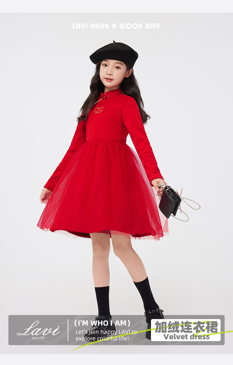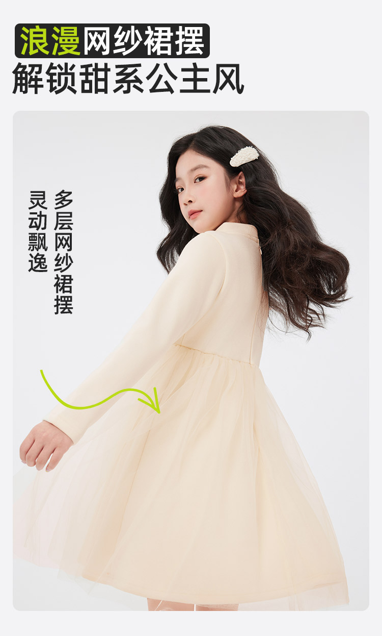 【清仓捡漏】【140-165】【LAVI】女童加绒连衣裙长袖网纱保暖公主裙