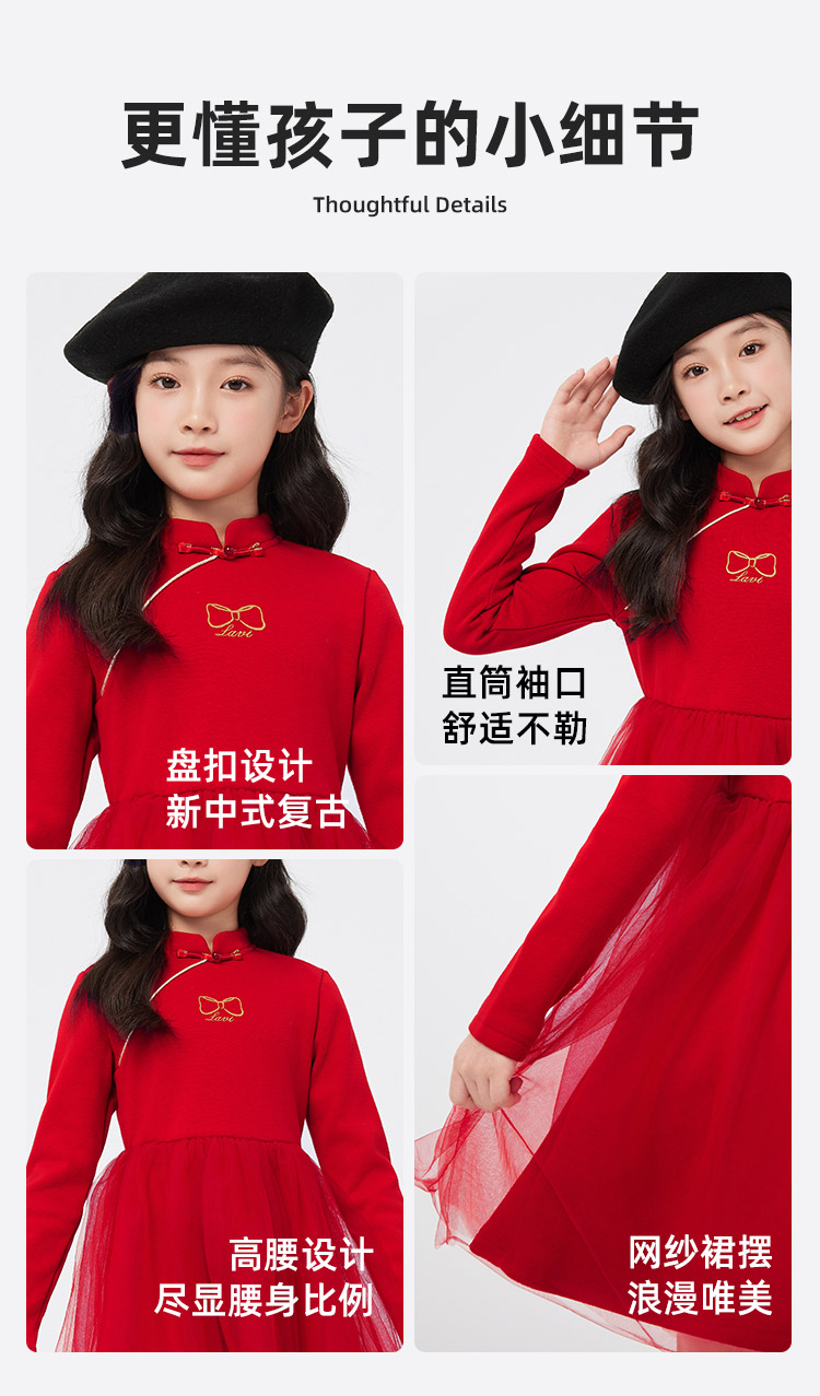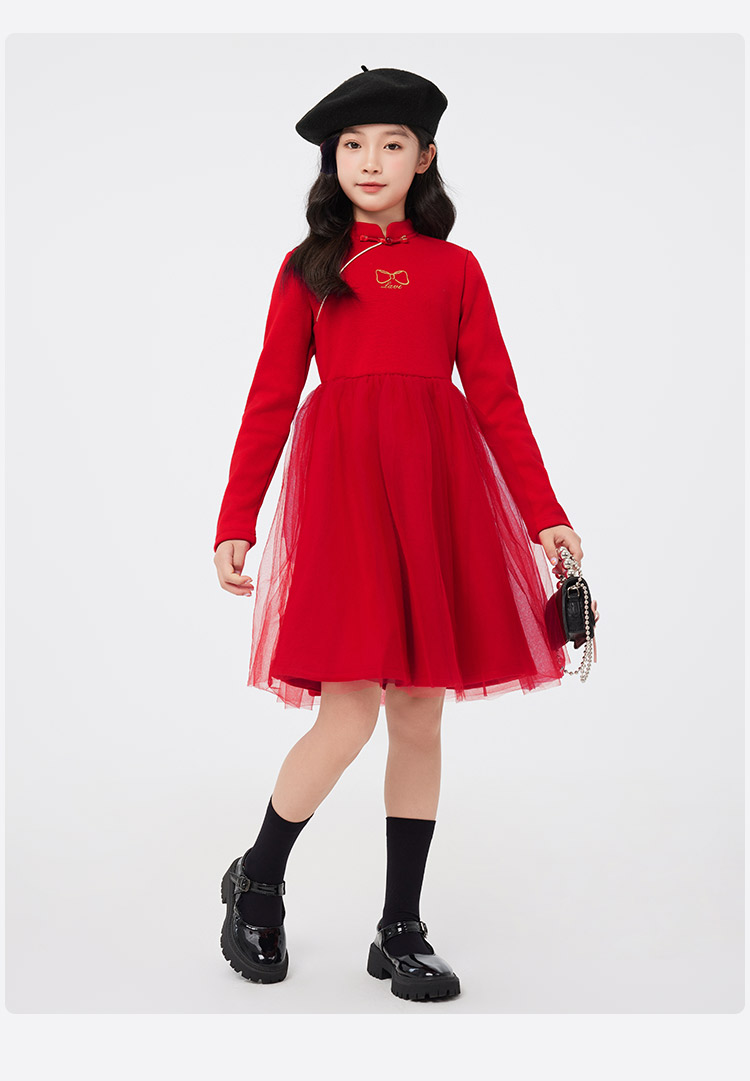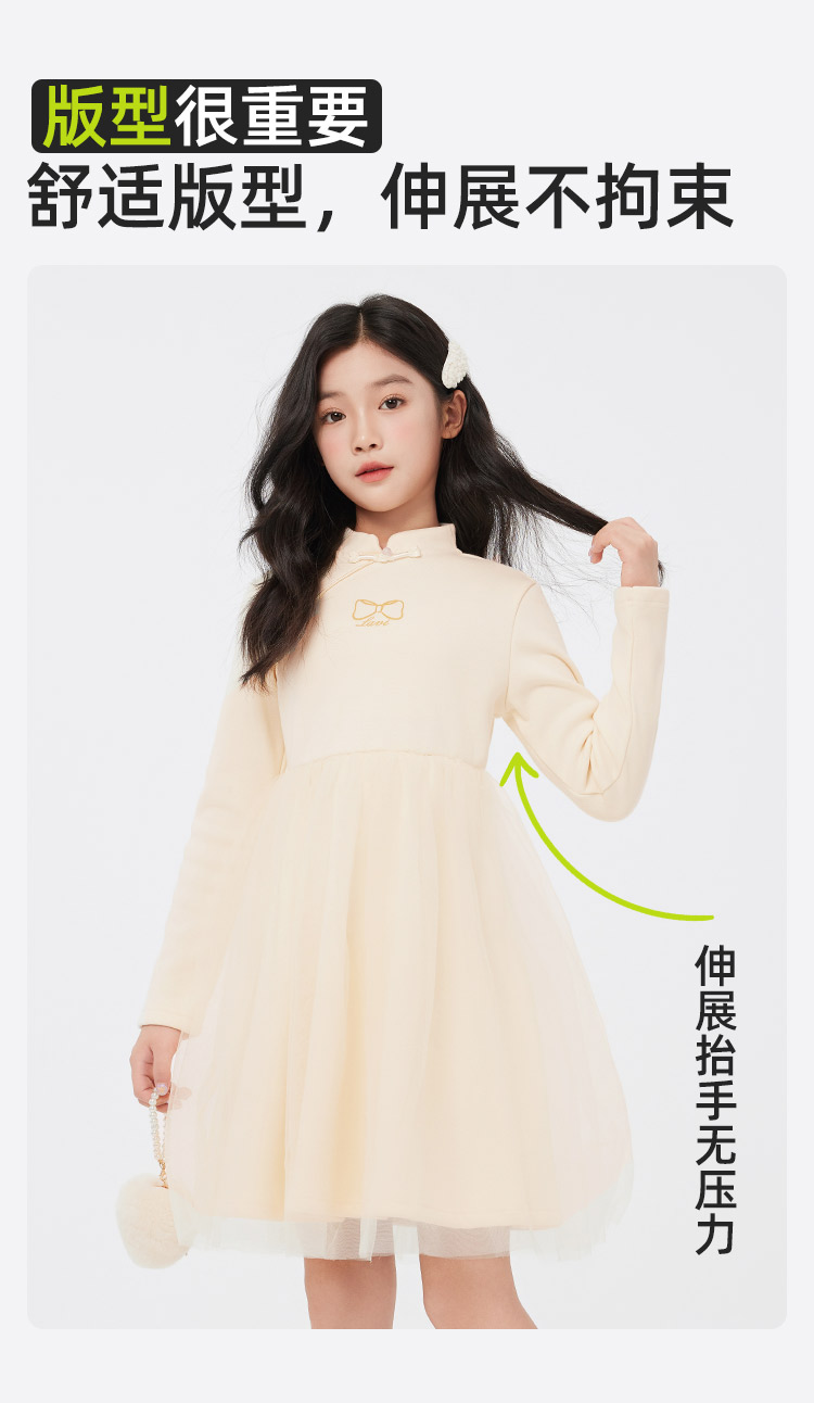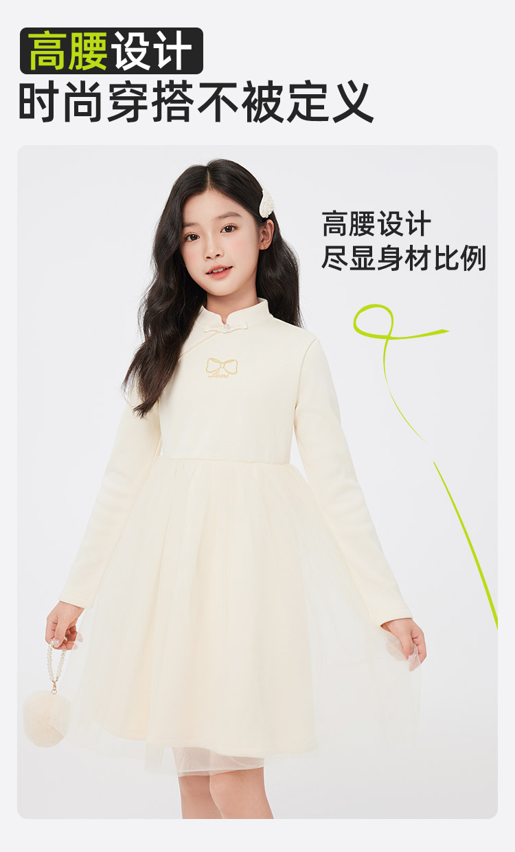 【清仓捡漏】【140-165】【LAVI】女童加绒连衣裙长袖网纱保暖公主裙