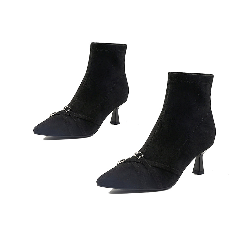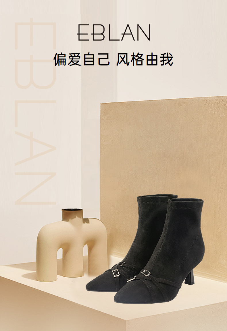 伊伴冬季百搭纯色弹力瘦瘦靴女鞋B25571106