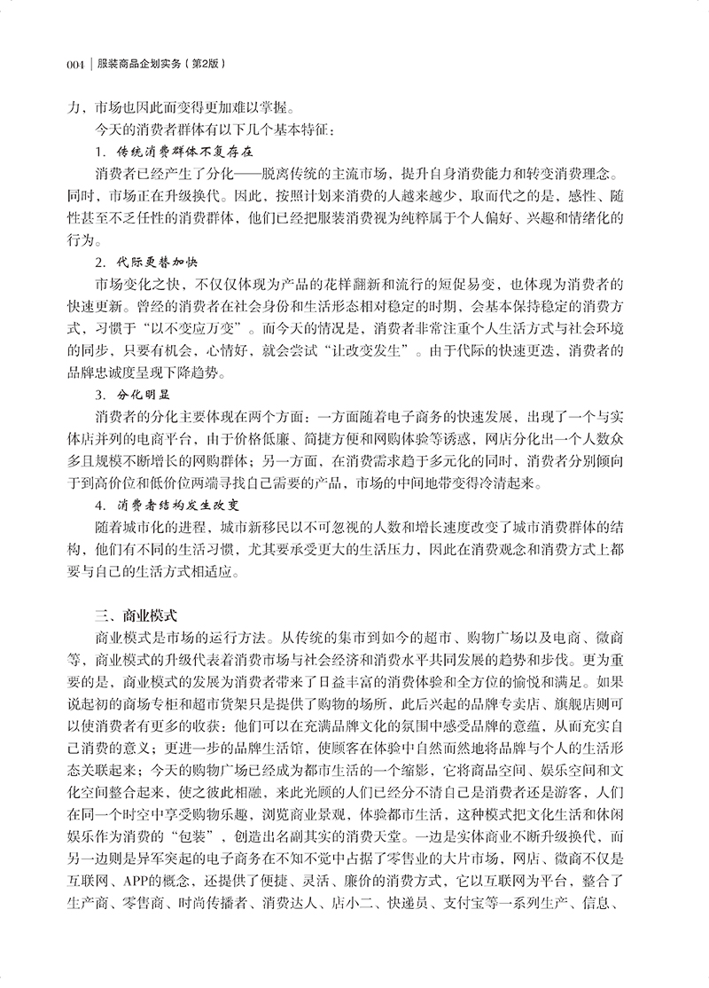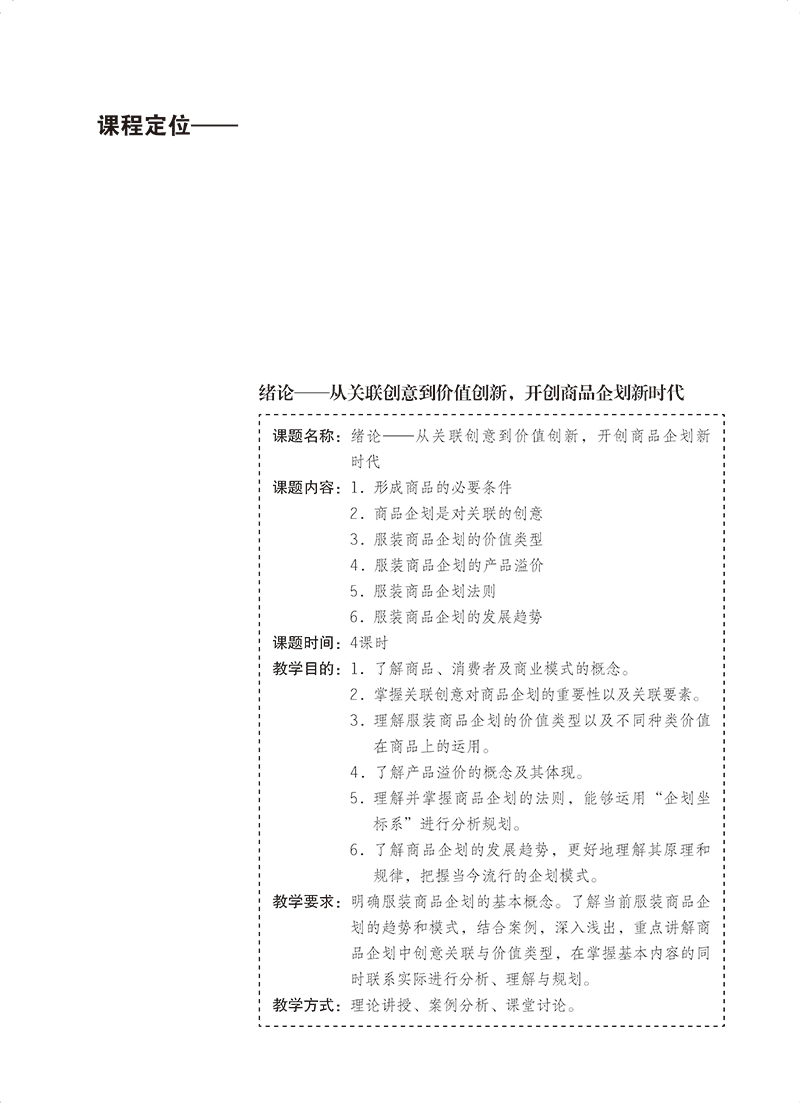 《服装商品企划实务(第2版)》从工作实际和专业教学发展的需要出发,对服装商品企划的目标、思路和方法进行了全面的讲解,旨在使读者能够系统了解服装商品企划的原理与应用。全书共分八章内容,具体括商品企划概论、产品设计开发、生产订单与管理、消费者需求对策、商品的系统规划、消费体验创意设计、营销与传播策划、定价与策略。《服装商品企划实务(第2版)》立足于分析和解决实际问题,运用了新的视角和研究方法,体现了实用性、前瞻性和创新性。