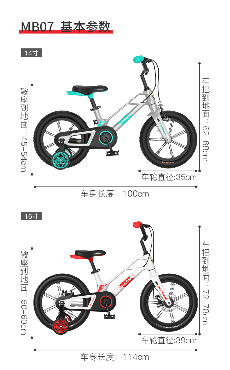 萌大圣MB07儿童自行车中大童男孩3-6-8岁14-18寸轻便镁合金单车女 90-135cm