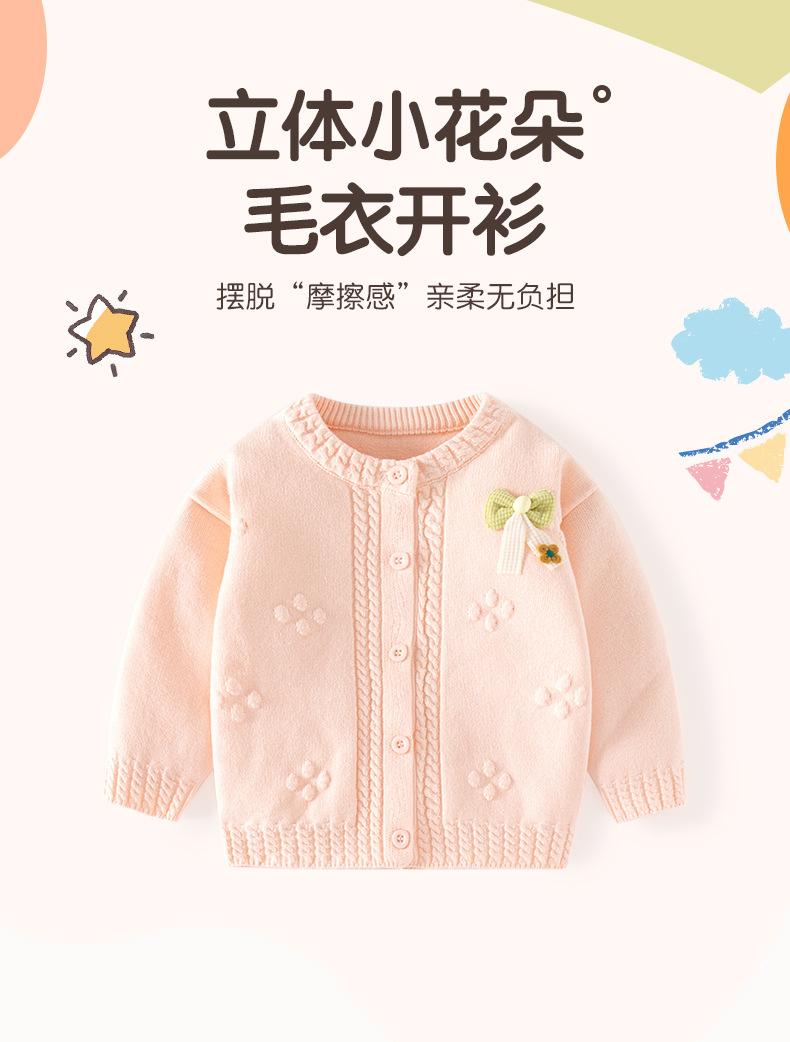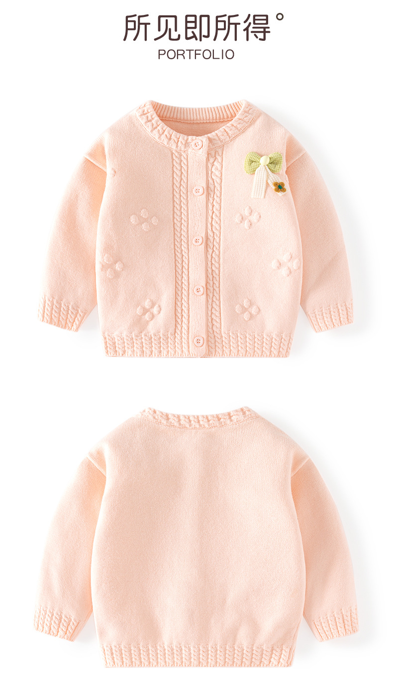 女童羊绒外套,柔软舒适!巴布雨纯棉女童毛衣开衫A类蝴蝶结纯色针织婴儿毛衣秋季婴儿外套lmzbsh
