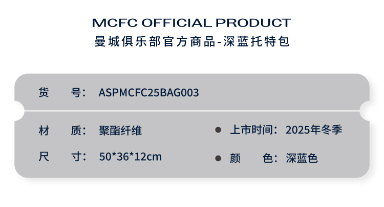 【官方正版】曼城俱乐部 | 深蓝托特包大容量单肩包球迷周边