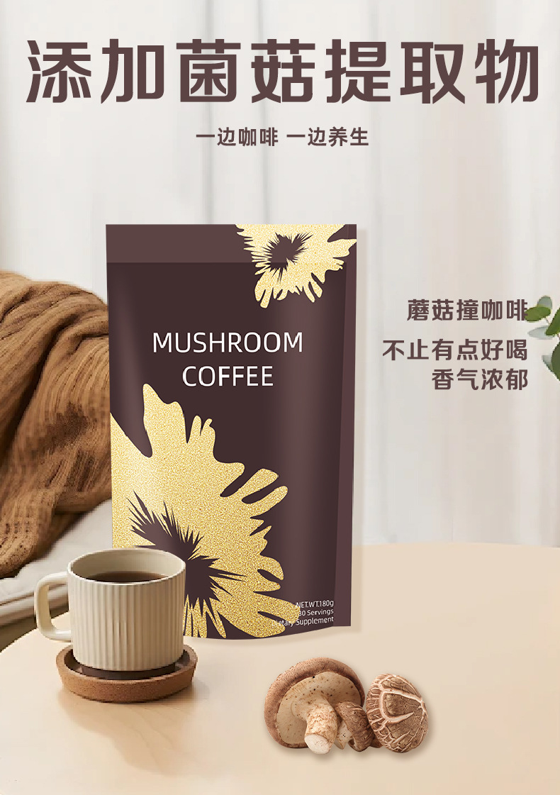 现货蘑菇咖啡跨境外贸袋装菌菇国王小号火鸡尾巴mushroom coffee
