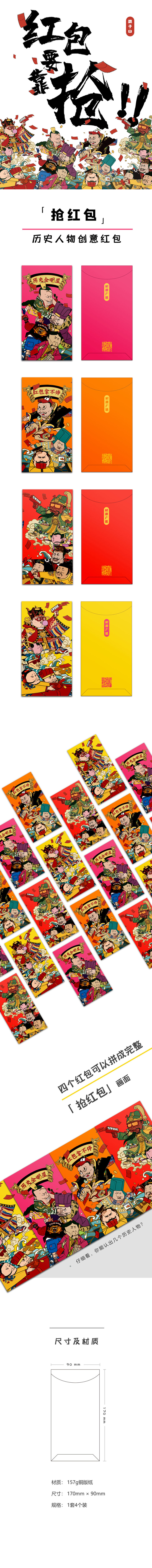 【混知出品】“抢红包”主题 历史人物创意红包 【一套四个,两套起售】