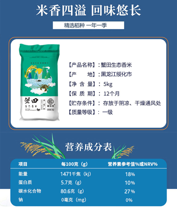 稻宝昌东北蟹田生态香米10斤珍珠米编织袋装