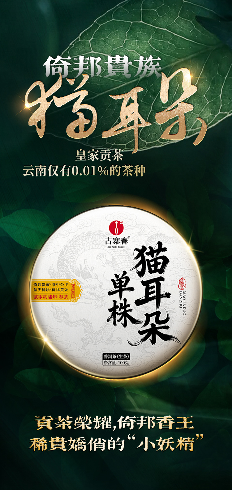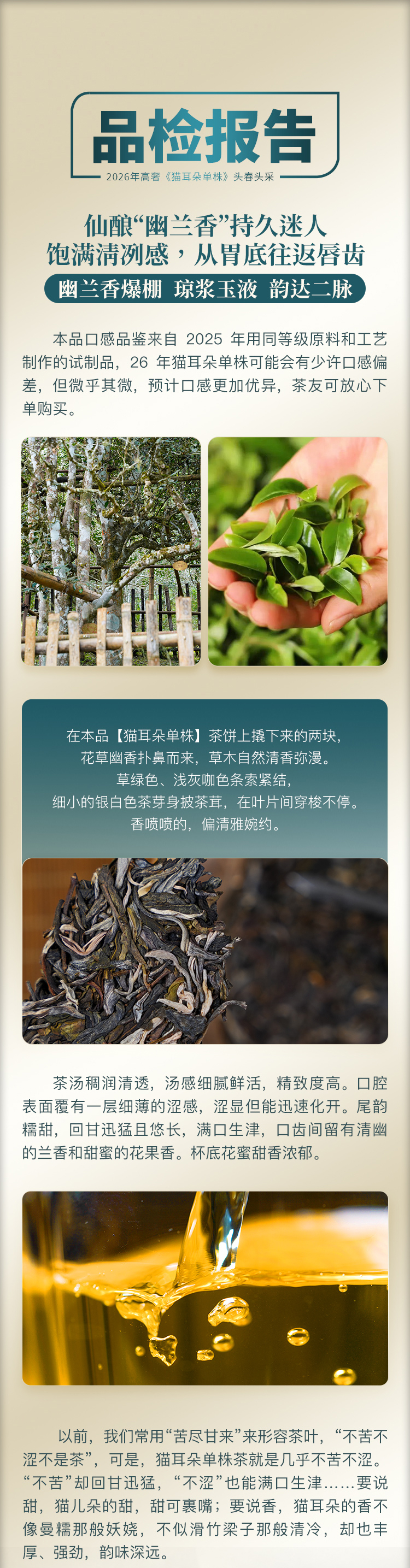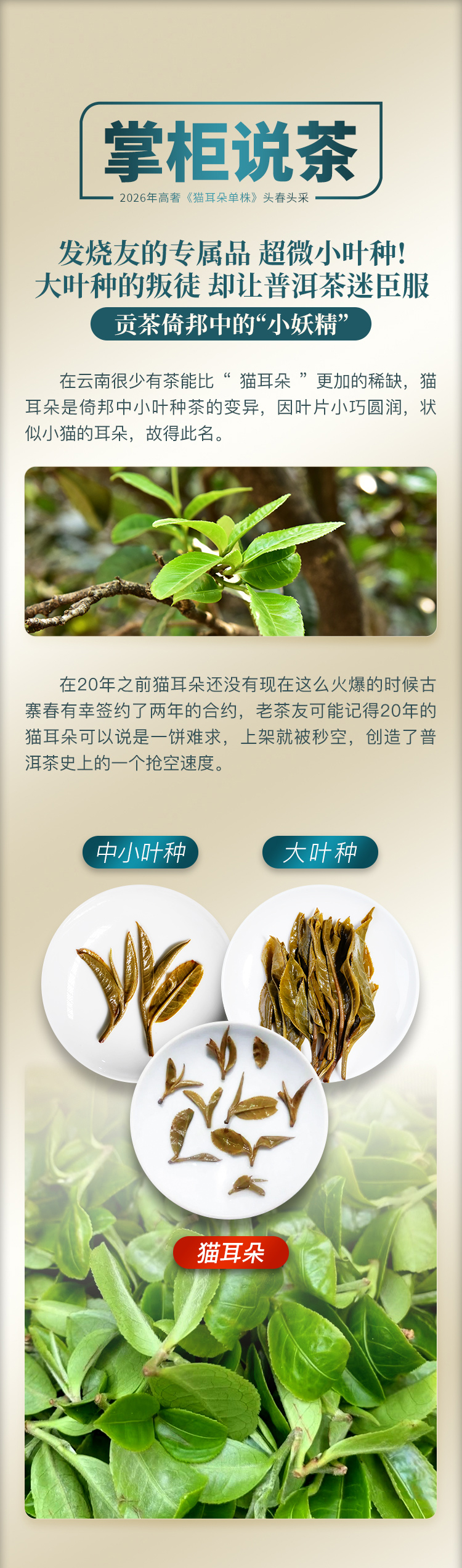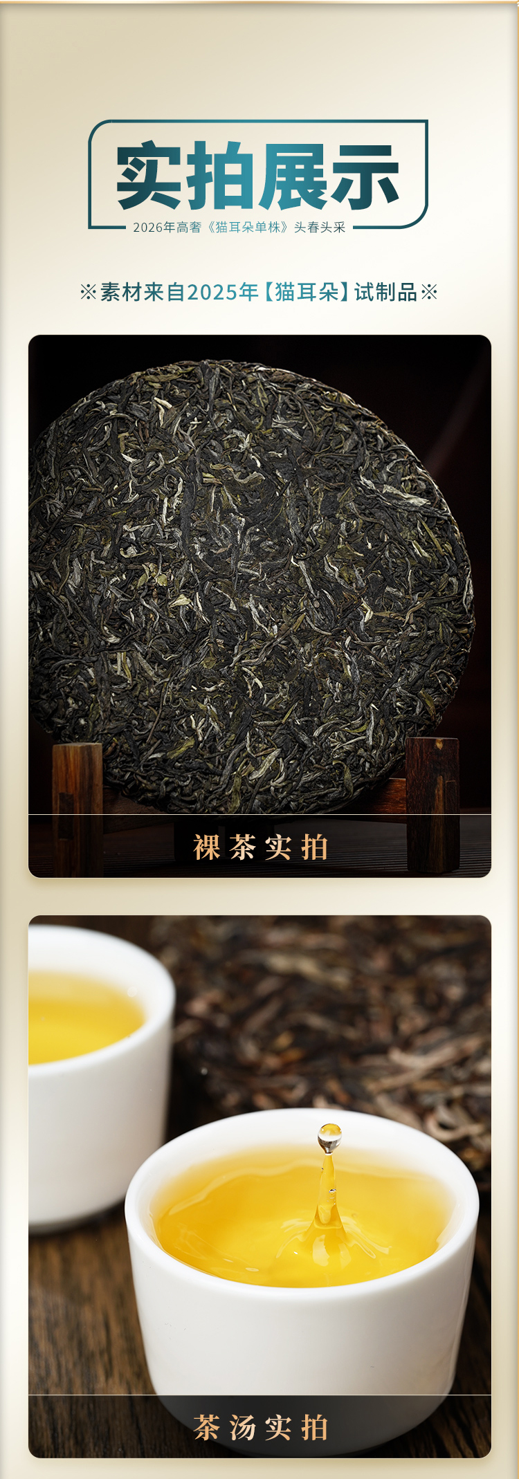 3月12日中午12点【新品预售】【猫耳朵单株】2026年头春头采茶中精灵“猫耳朵”云南仅有0.01%的茶种 100克/饼 5饼/提,每提加送60克同款散茶