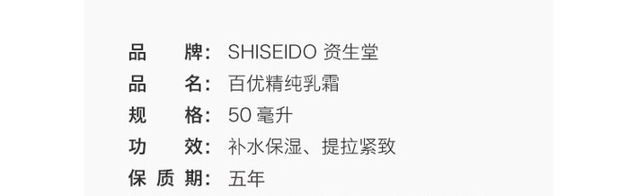 【跨境】SHISEIDO 资生堂 百优精纯乳霜 50毫升 补水改善细纹(效期到28年)