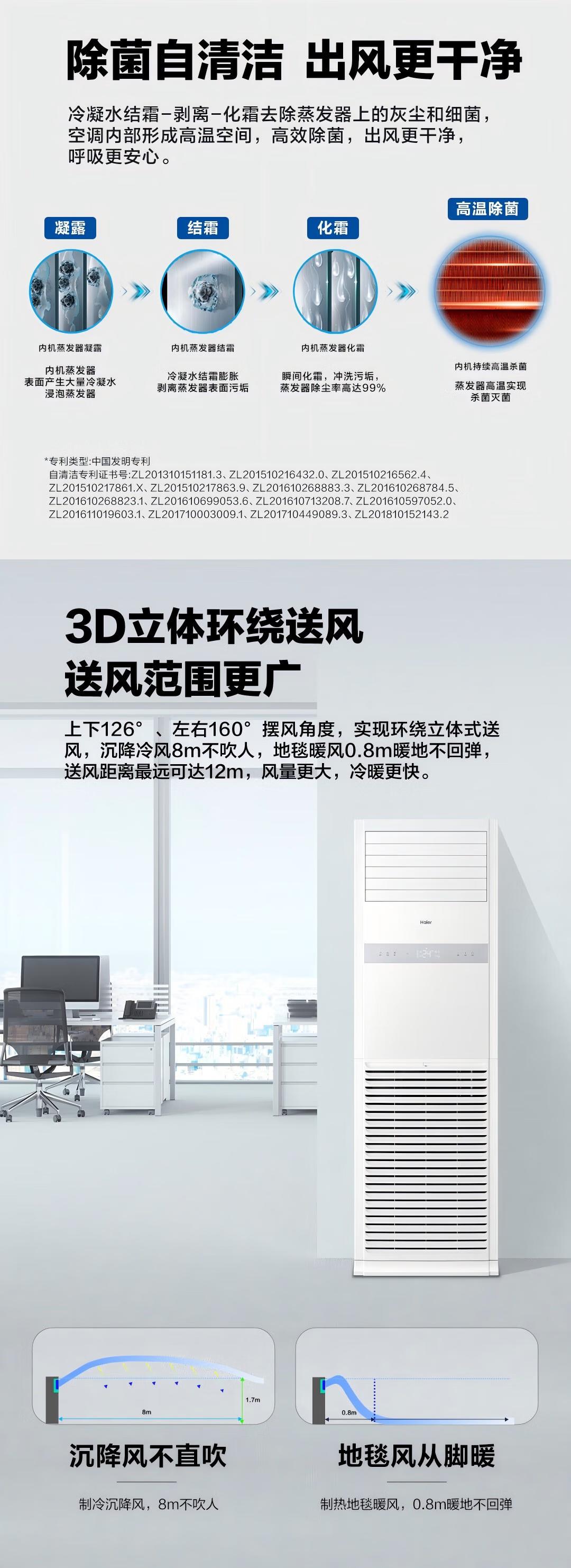 海尔(Haier)4P柜机变频冷暖立式客厅空调220v 二级能效 动力强劲+高效节能 KFRd-100LW/5DF82U1