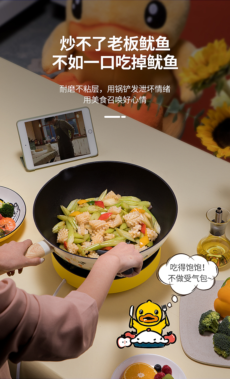 炊大皇(COOKER KING)不粘炒锅 小黄鸭联名IP系列炒菜锅不粘少油煎炒锅平底锅家用锅具燃气灶电磁炉通用