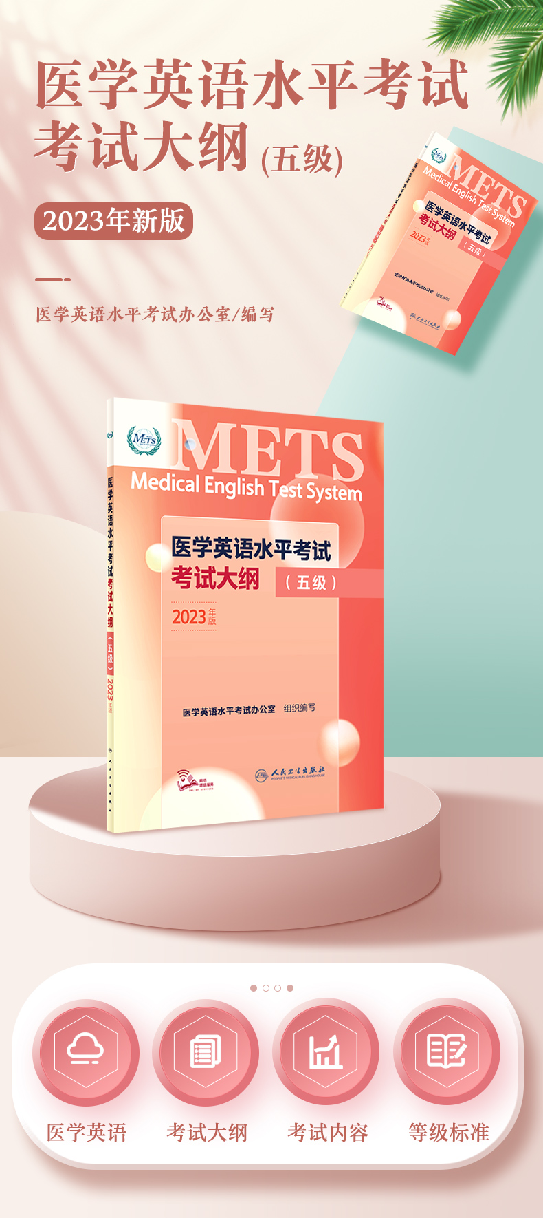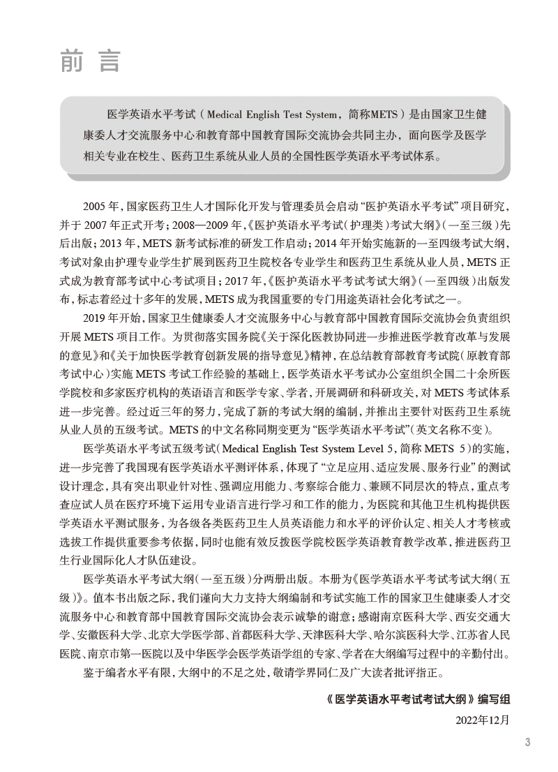 2023年新版医学英语水平考试考试大纲五级 METS5全国医护强化教程应试指南教材外语书籍考试用书词汇 人民卫生出版社9787117345194