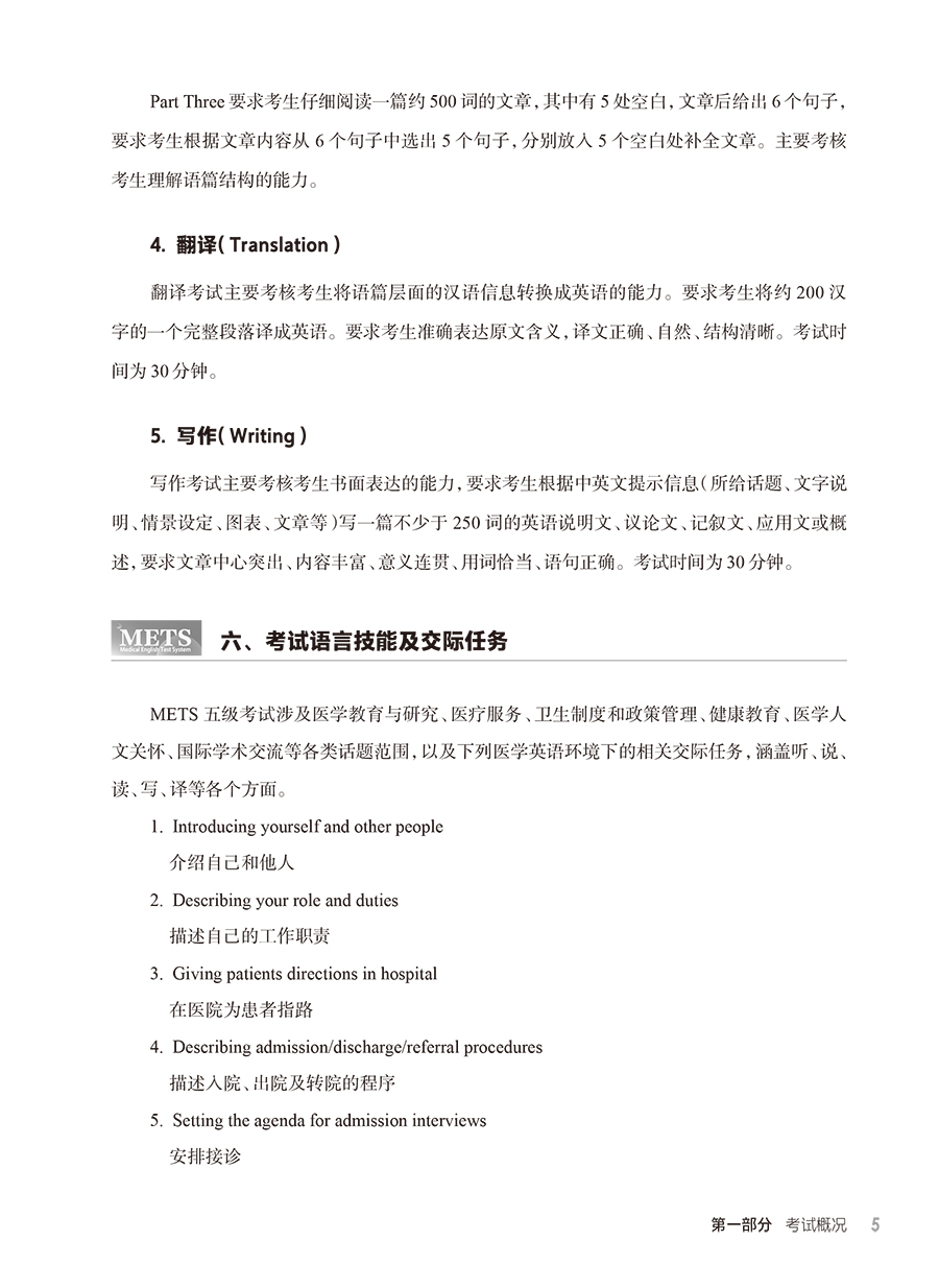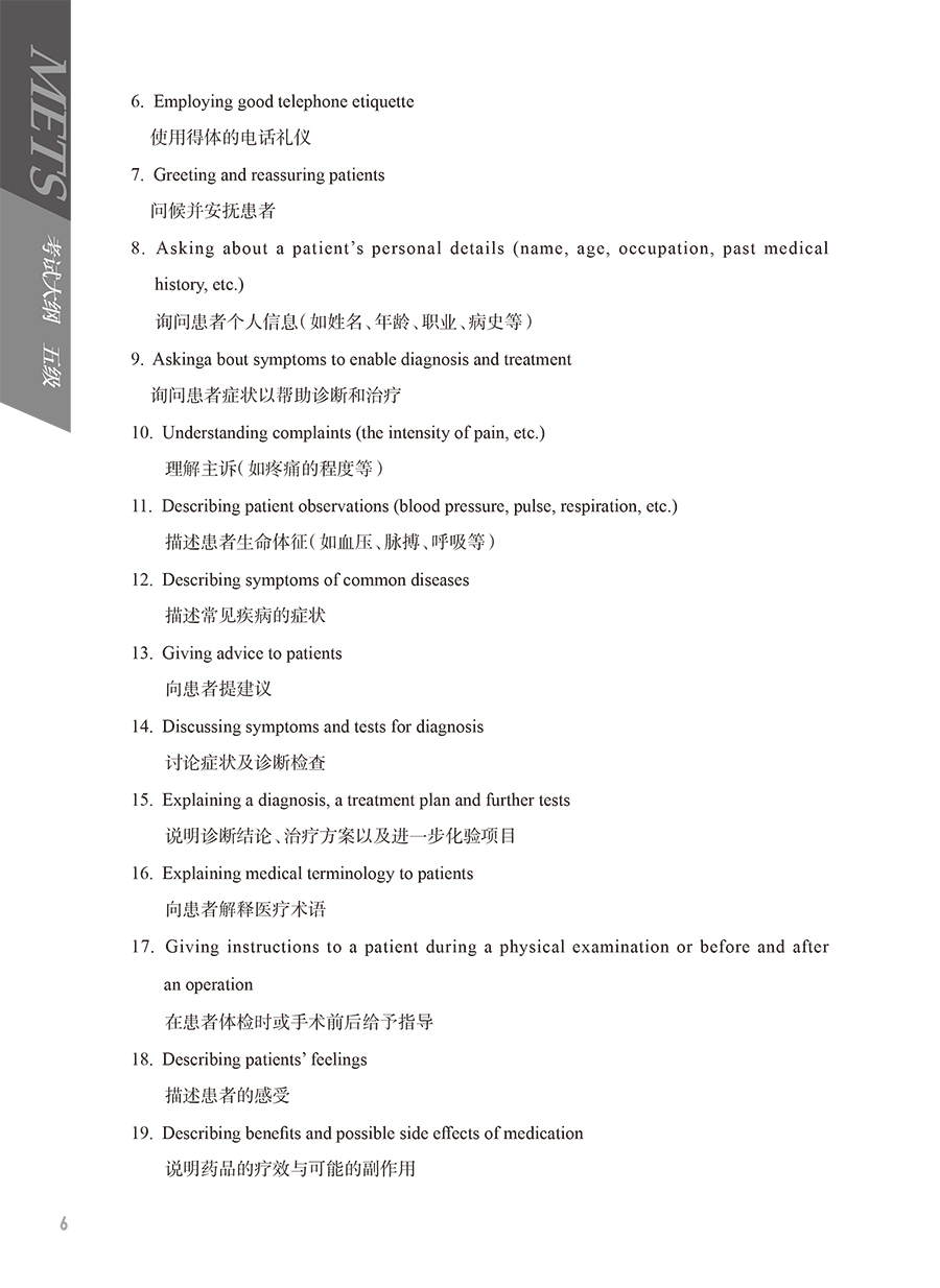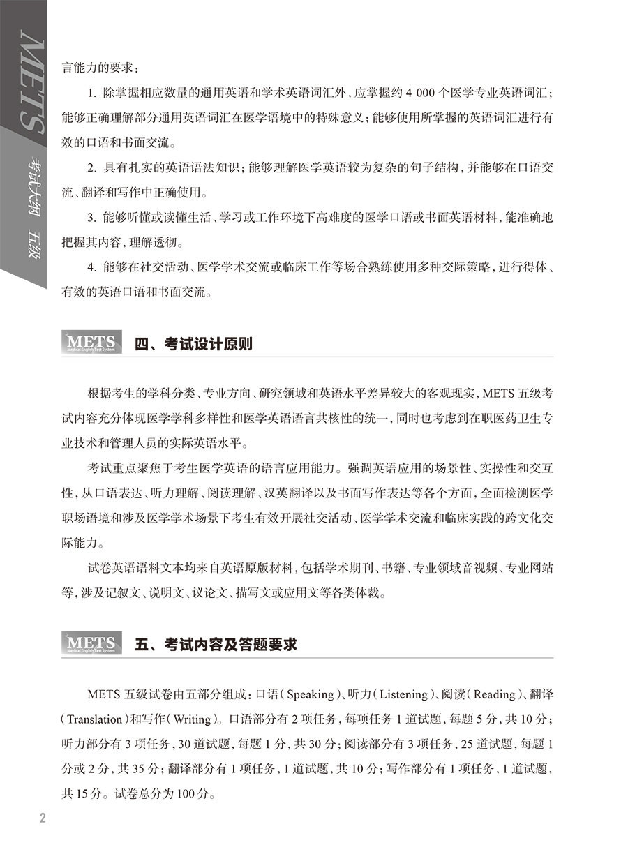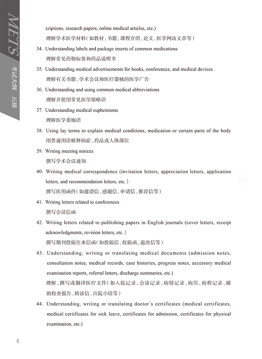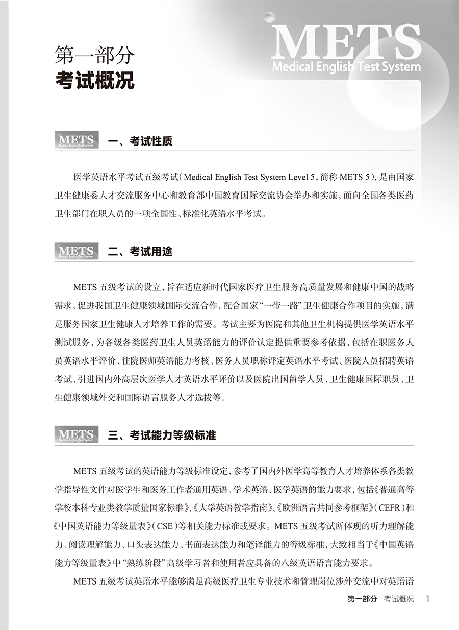 METS医学英语水平考试用书适用建议: