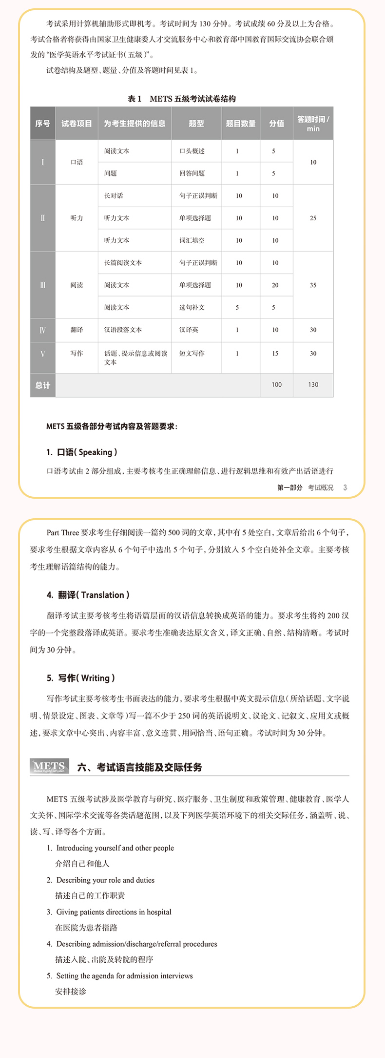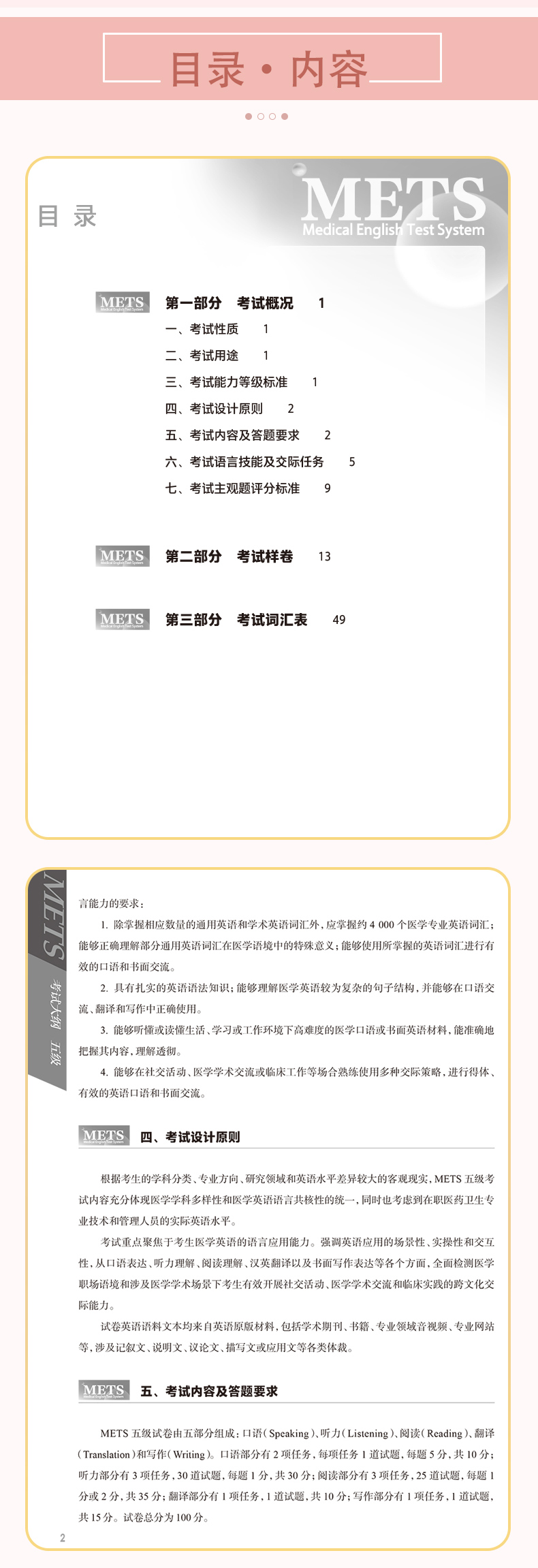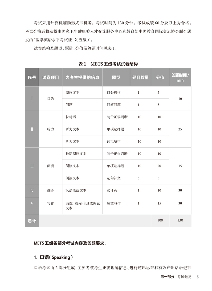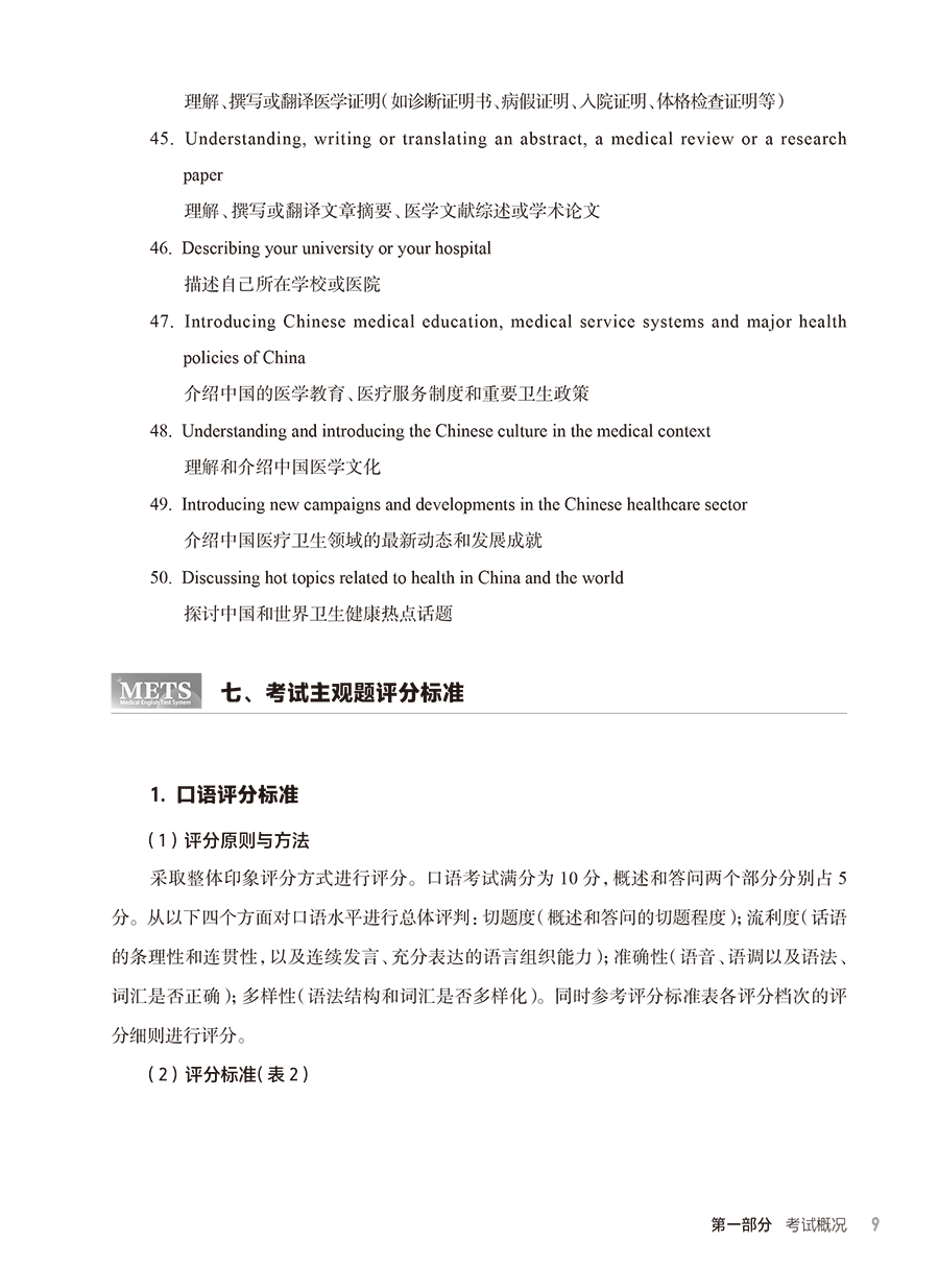 METS医学英语水平考试用书适用建议: