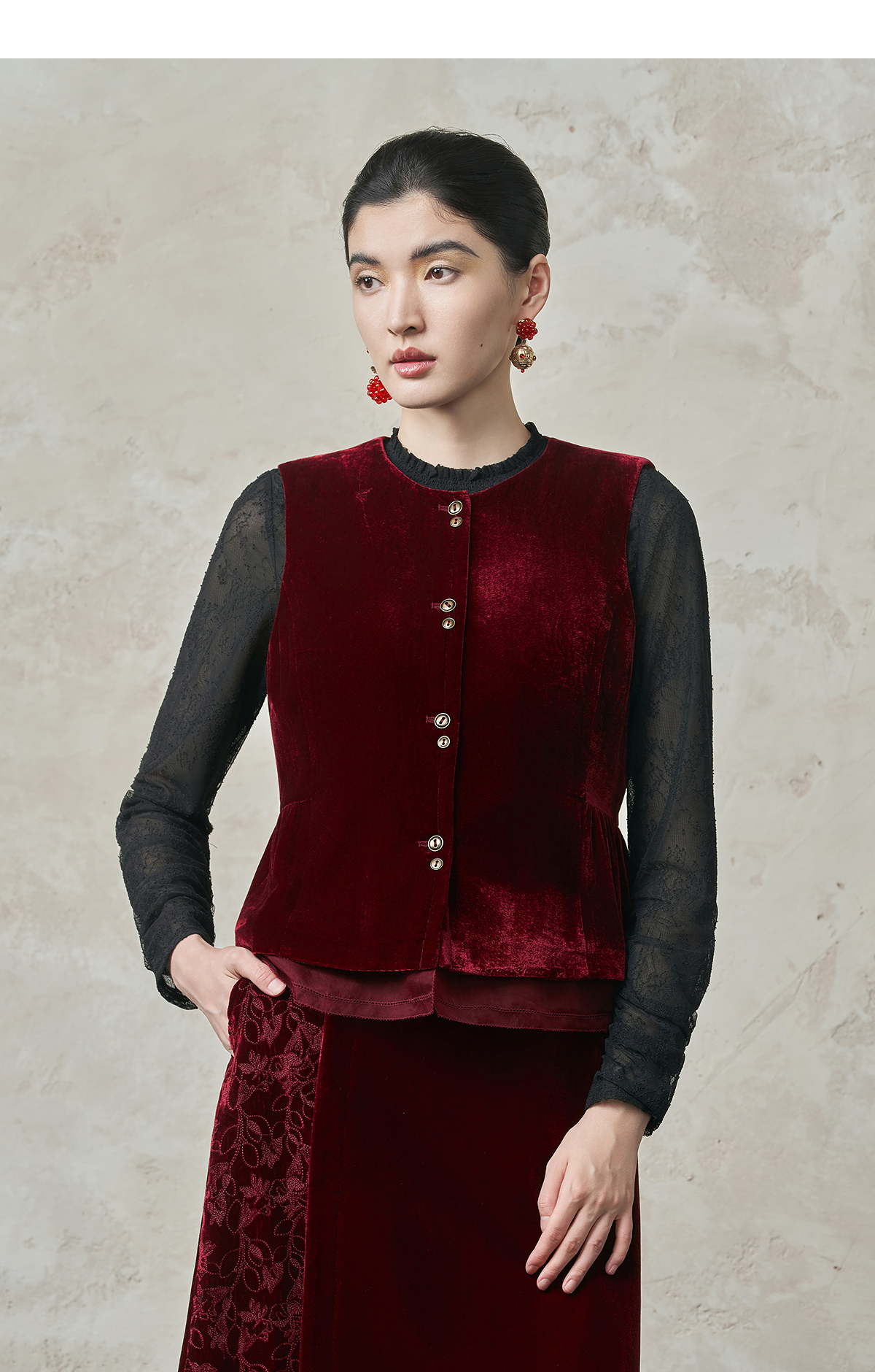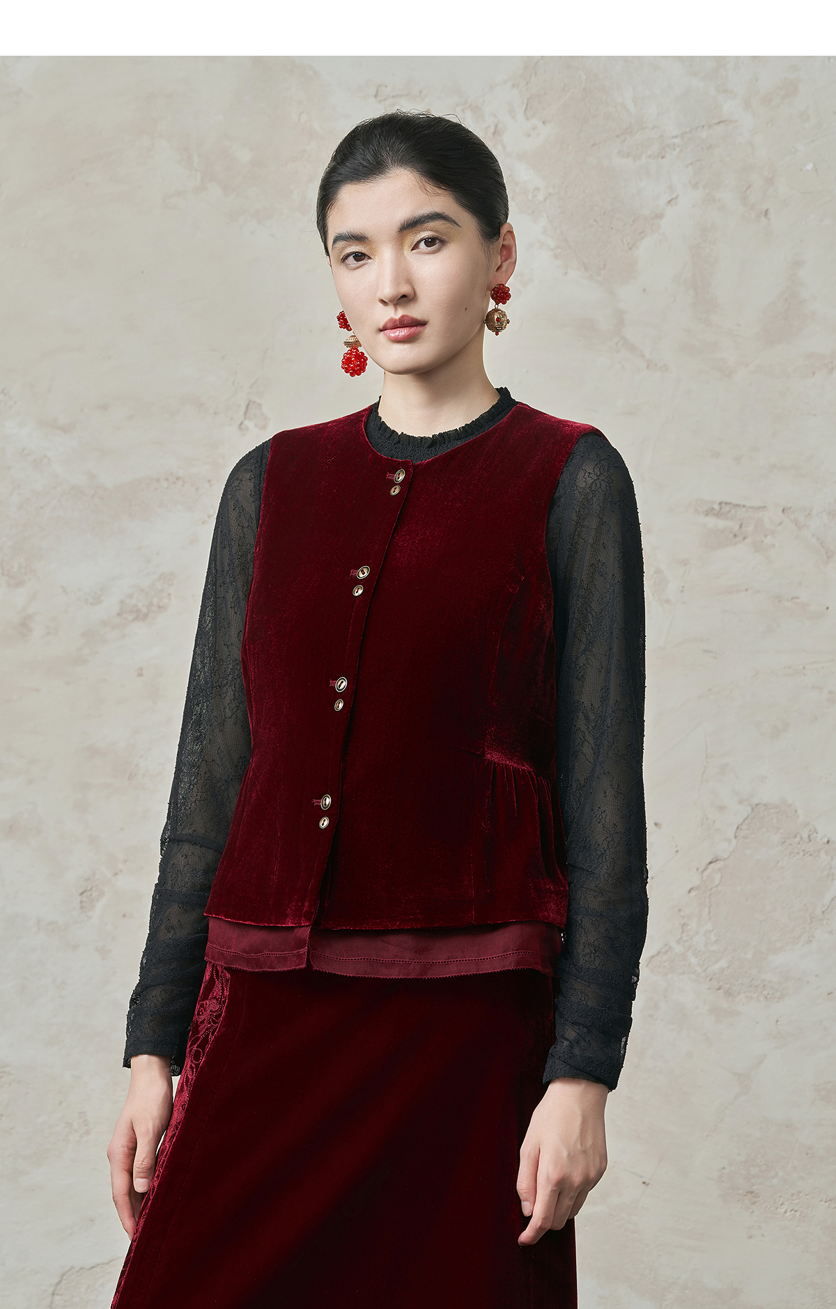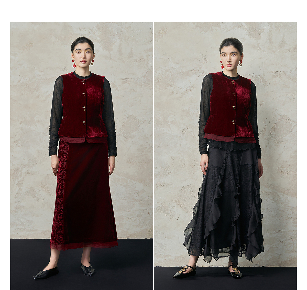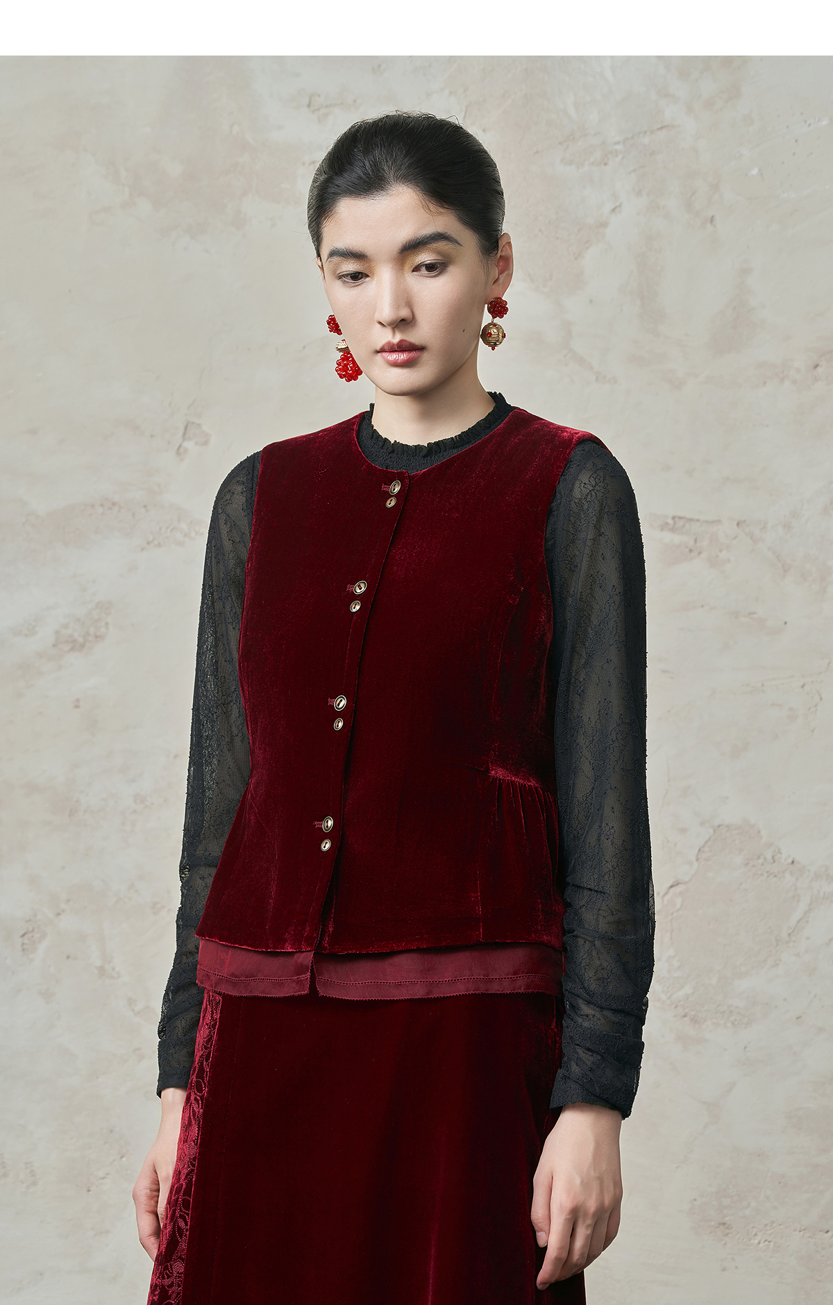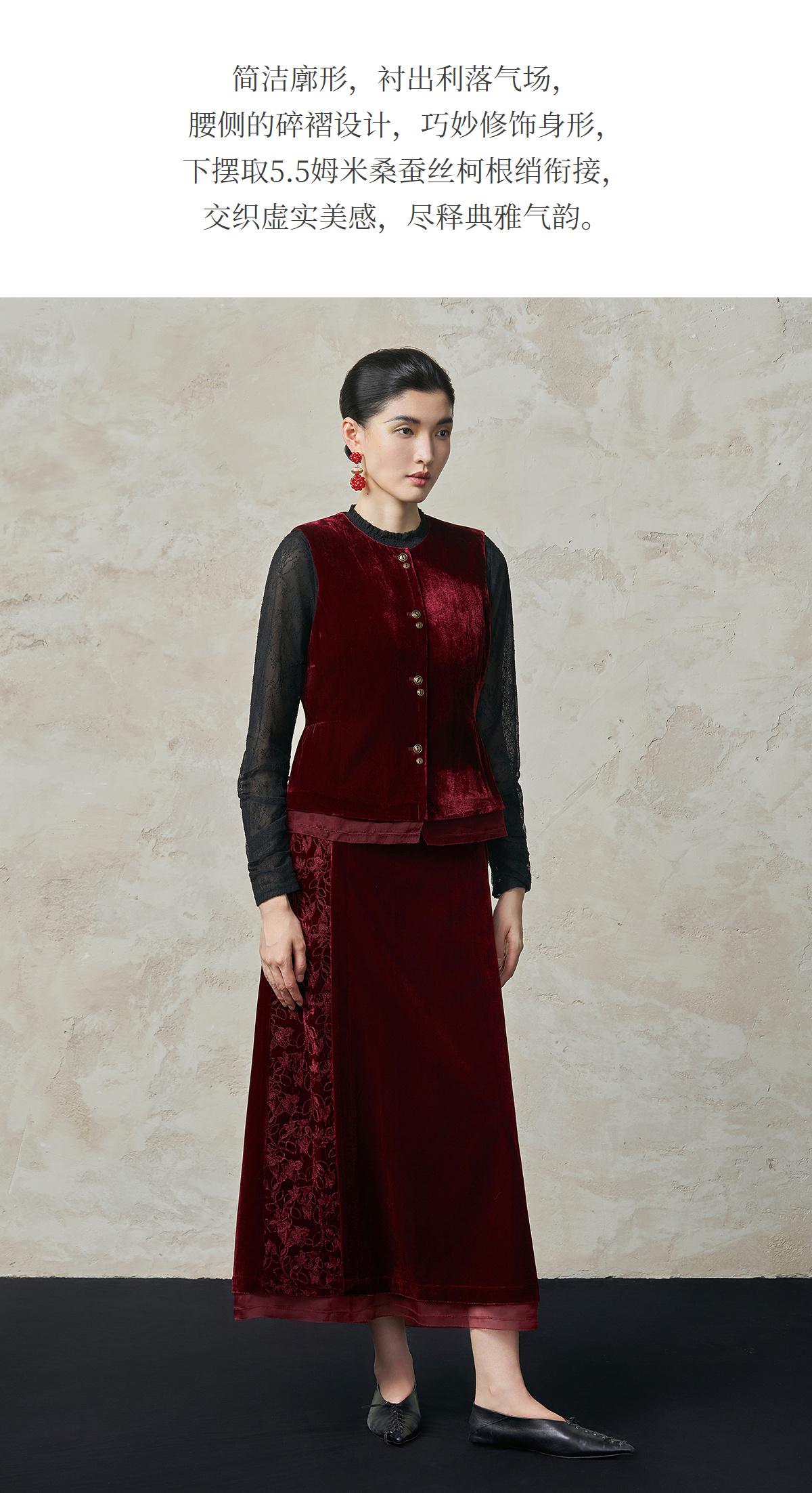 【林栖设计小店】真丝丝绒马甲拼桑蚕丝修身显瘦2025秋冬新款无袖外套女1954009