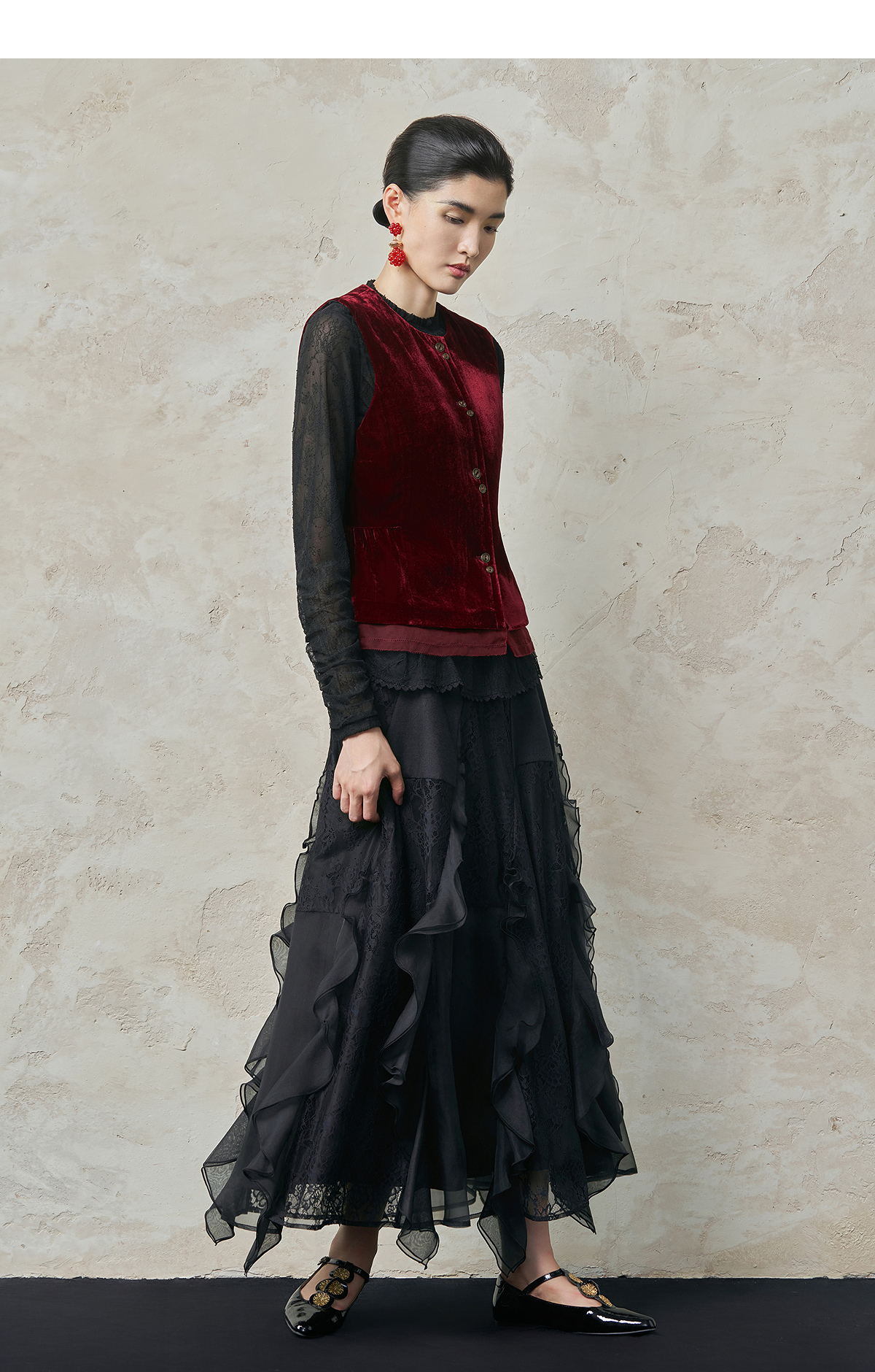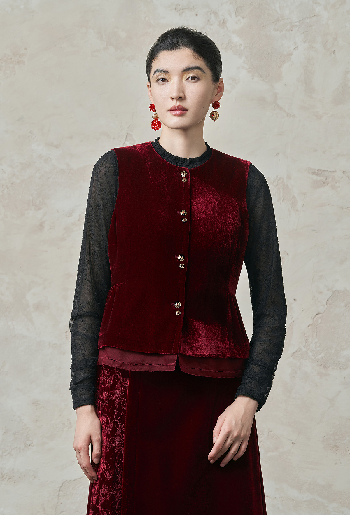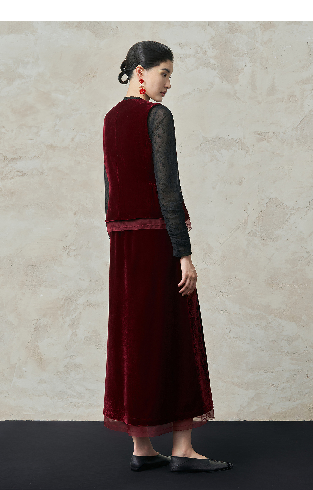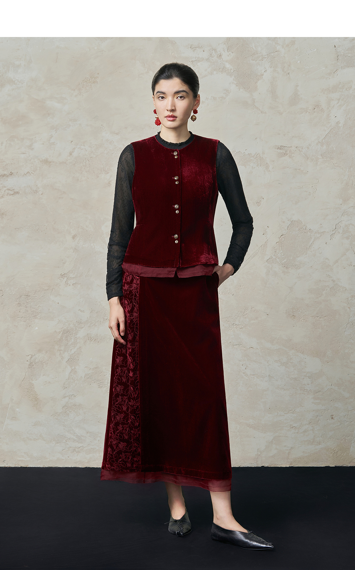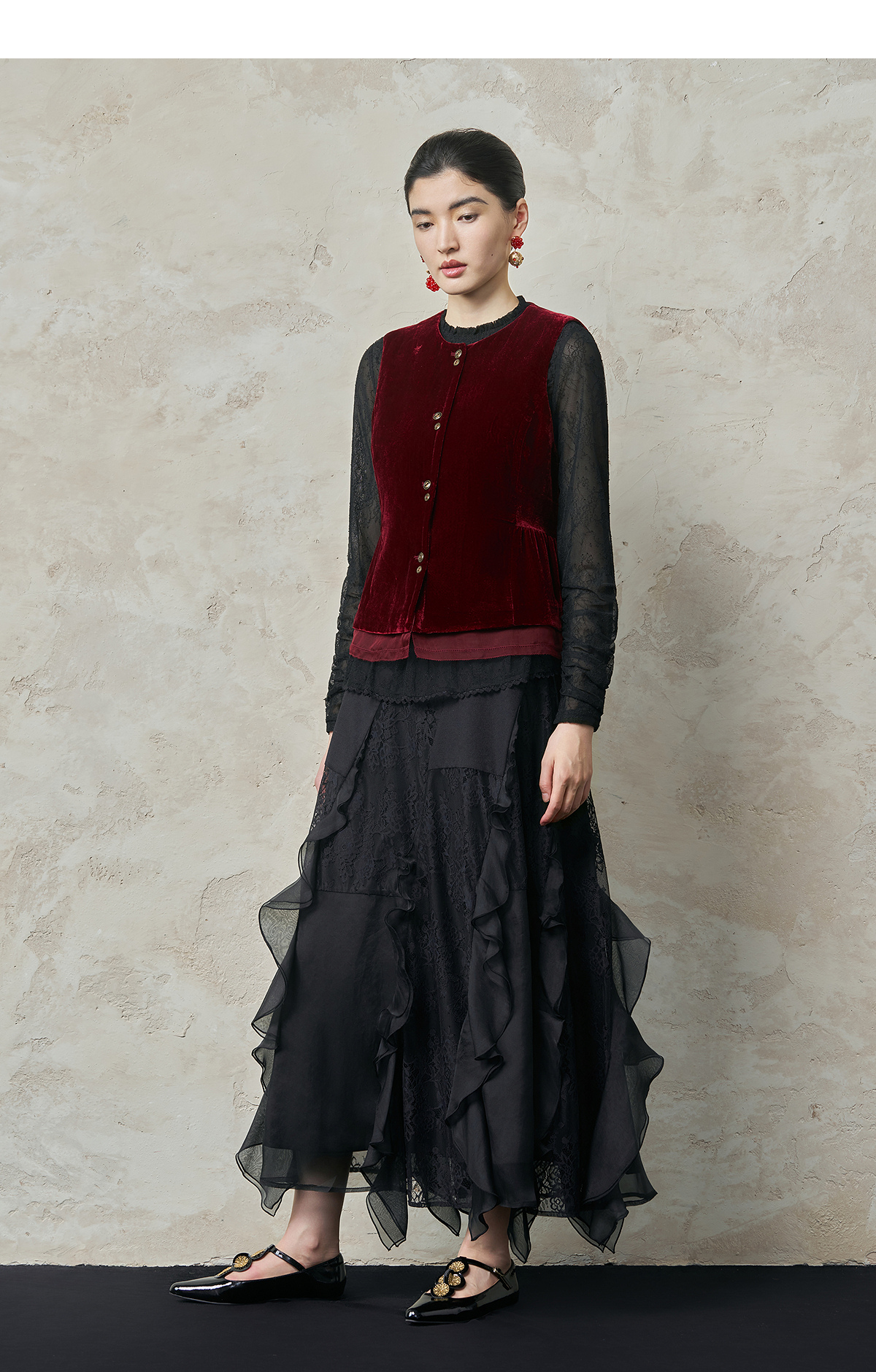 【林栖设计小店】真丝丝绒马甲拼桑蚕丝修身显瘦2025秋冬新款无袖外套女1954009