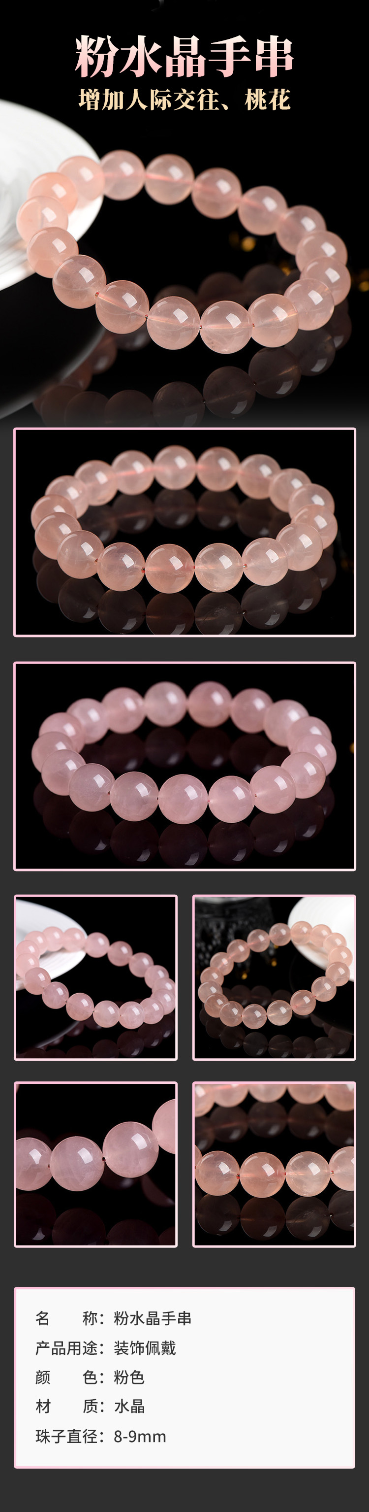 【姻缘】桃花缘粉水晶手串 缘定今生 浪漫情缘