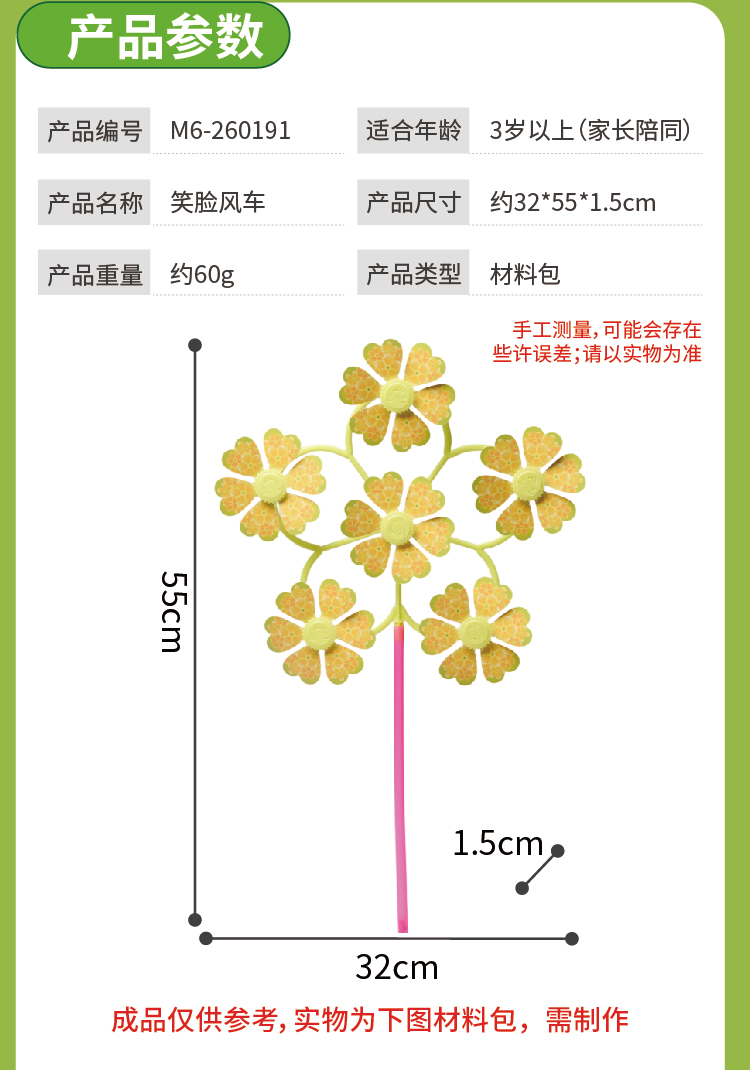 户外春天笑脸风车手工diy儿童制作材料包幼儿园旋转装饰玩具春游