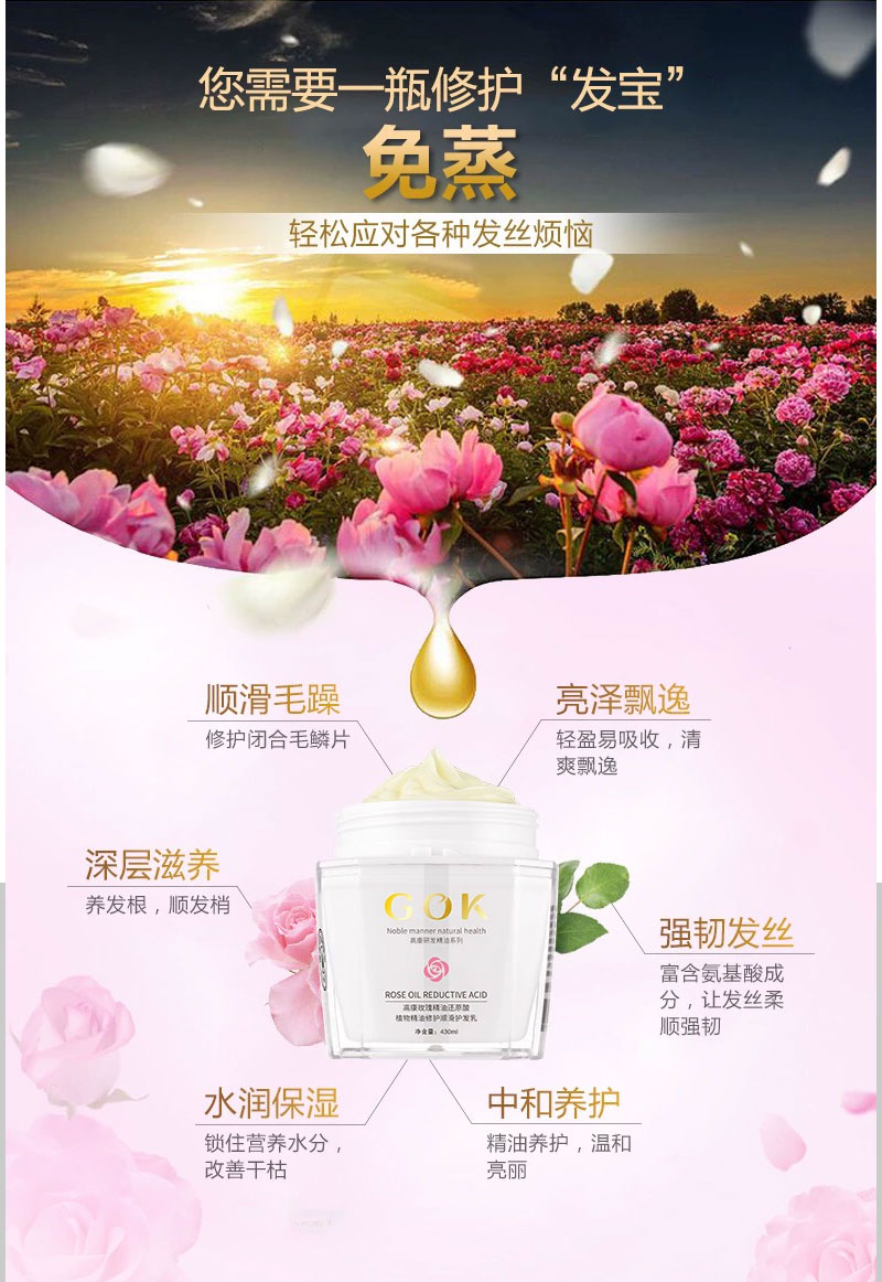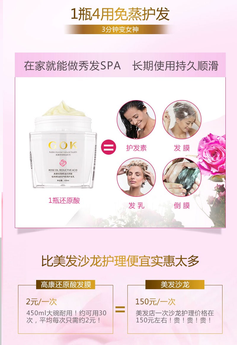 高康玫瑰精油能量多效还原酸450ml /高康茉莉精油还原酸450ml 送80ml同款发膜