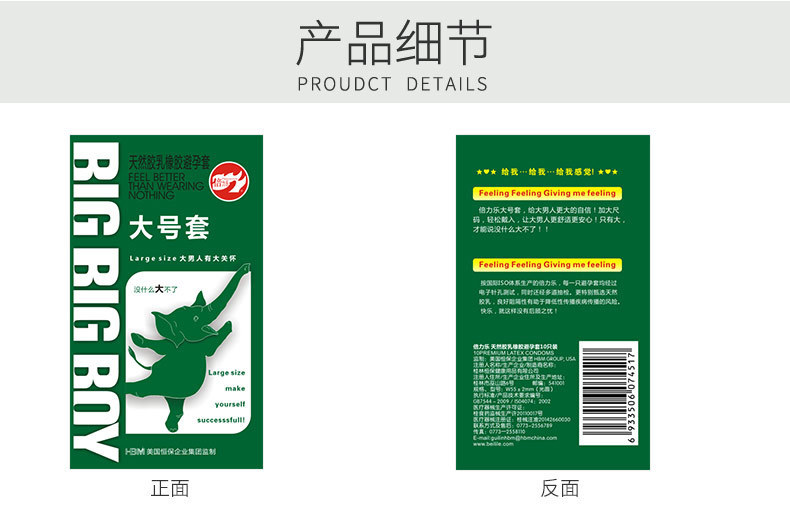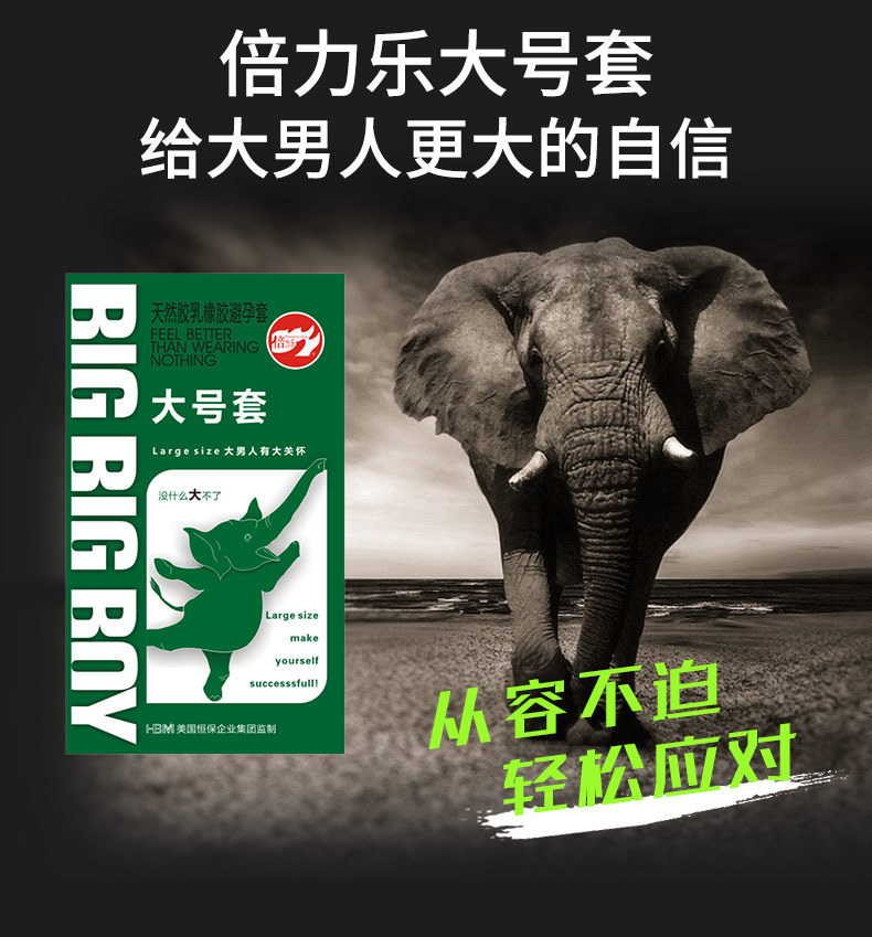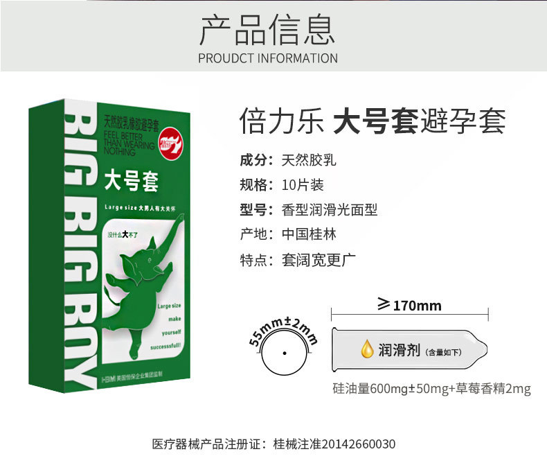 倍力乐绿象大号XXL套阔度58mm大号避孕套10只阔度55mm