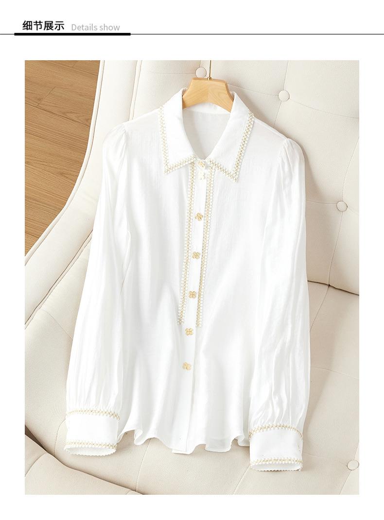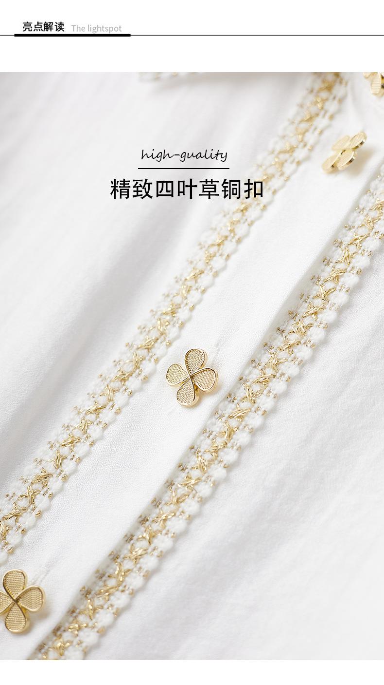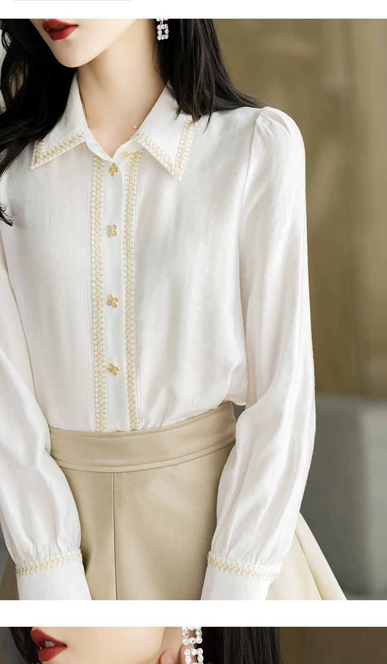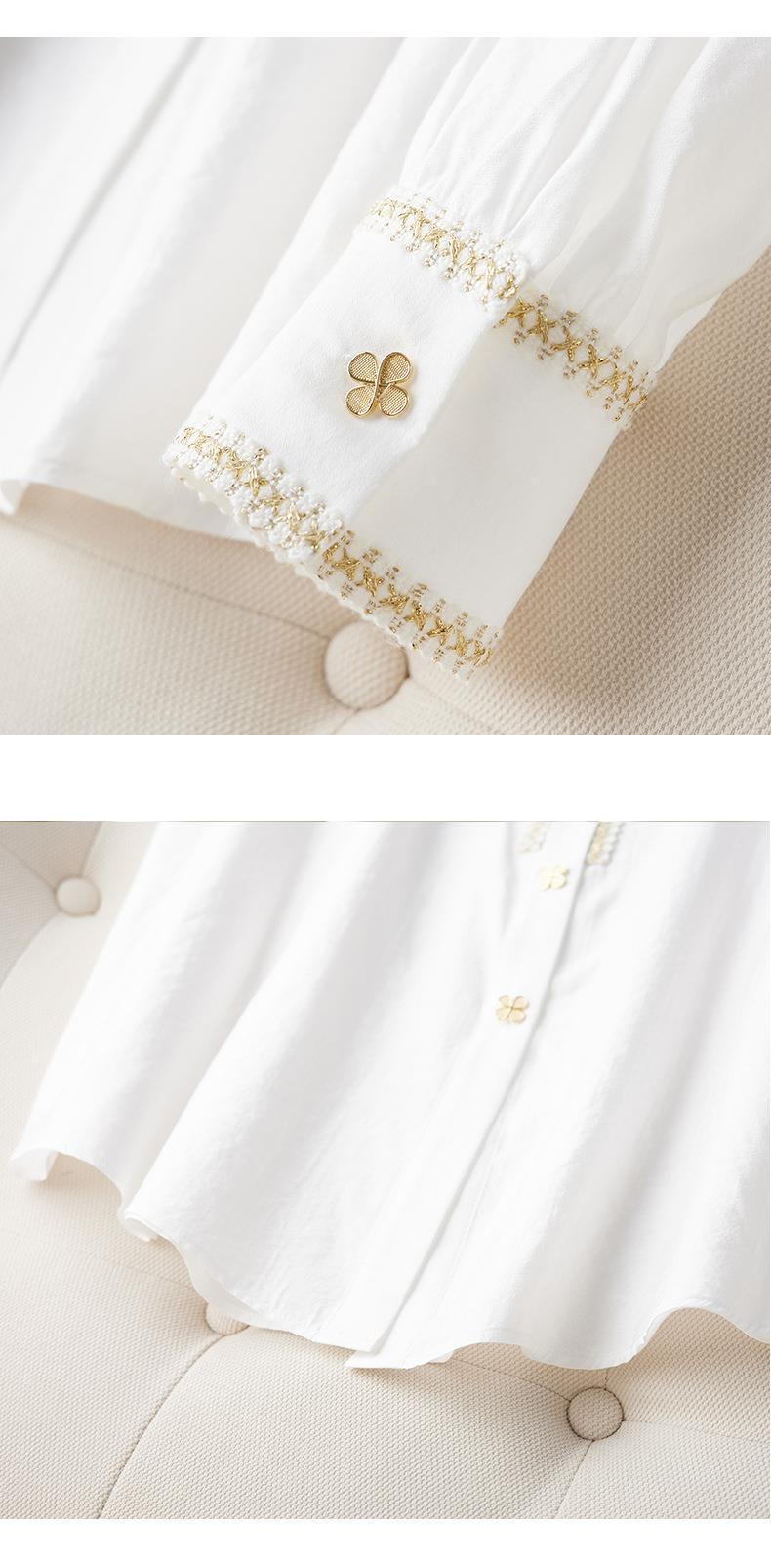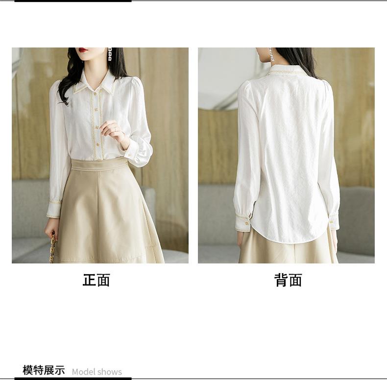 2023秋装新款小香风棉衬衫女长袖翻领白色女士衬衣2067