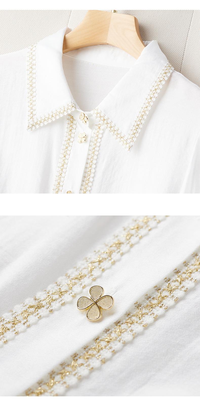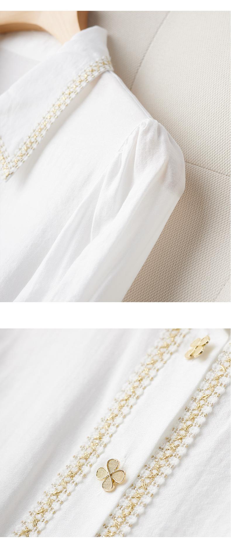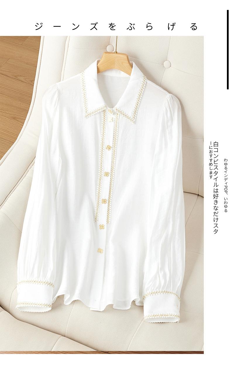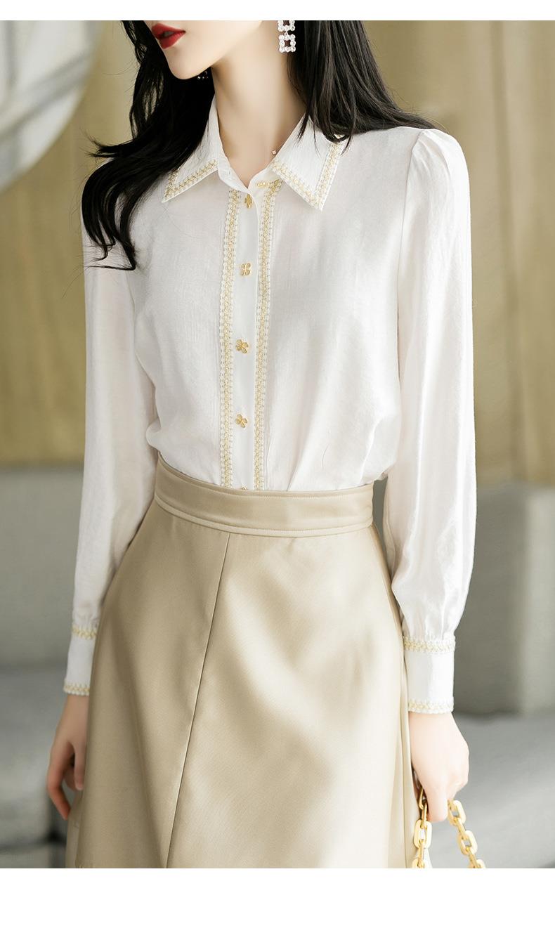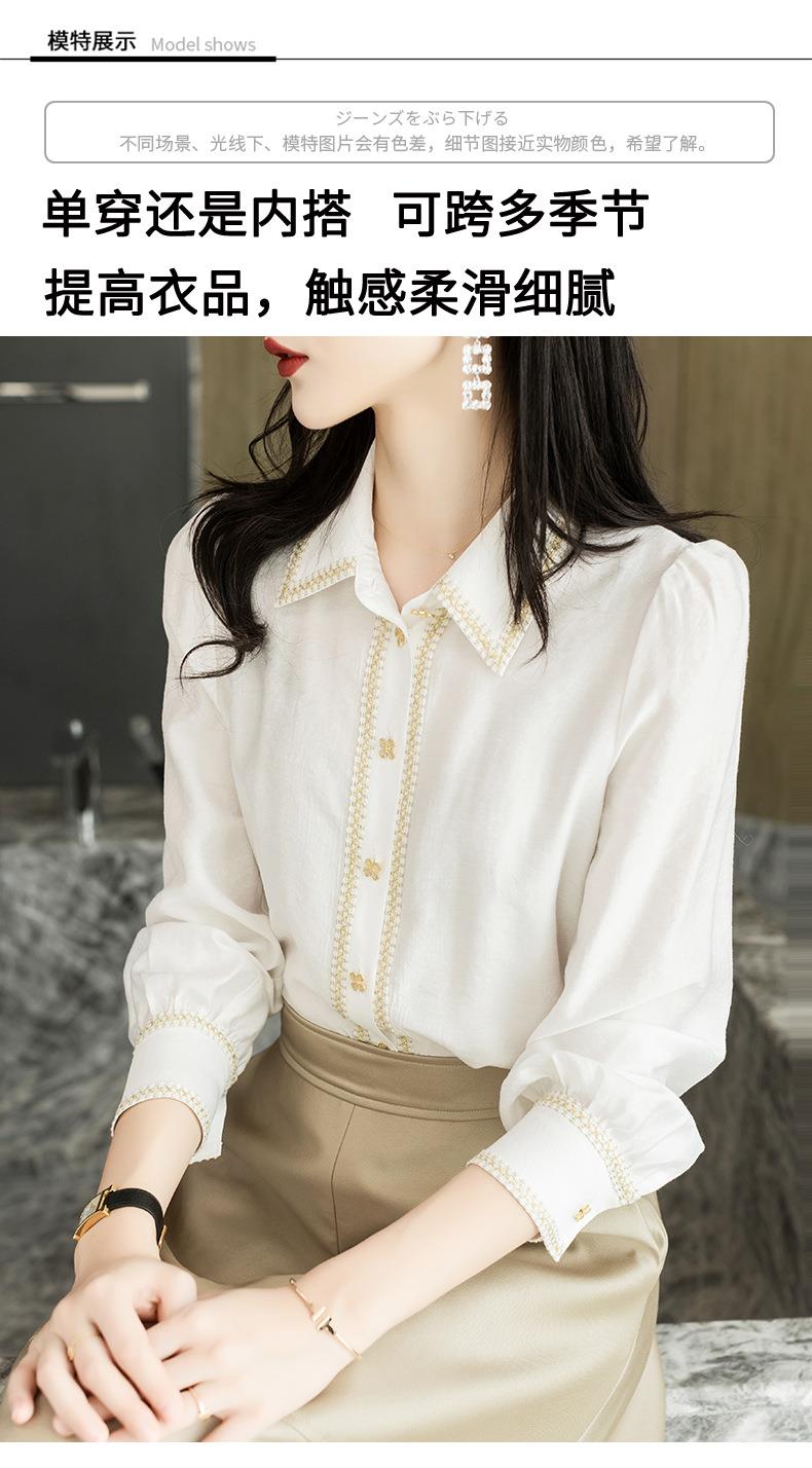 2023秋装新款小香风棉衬衫女长袖翻领白色女士衬衣2067
