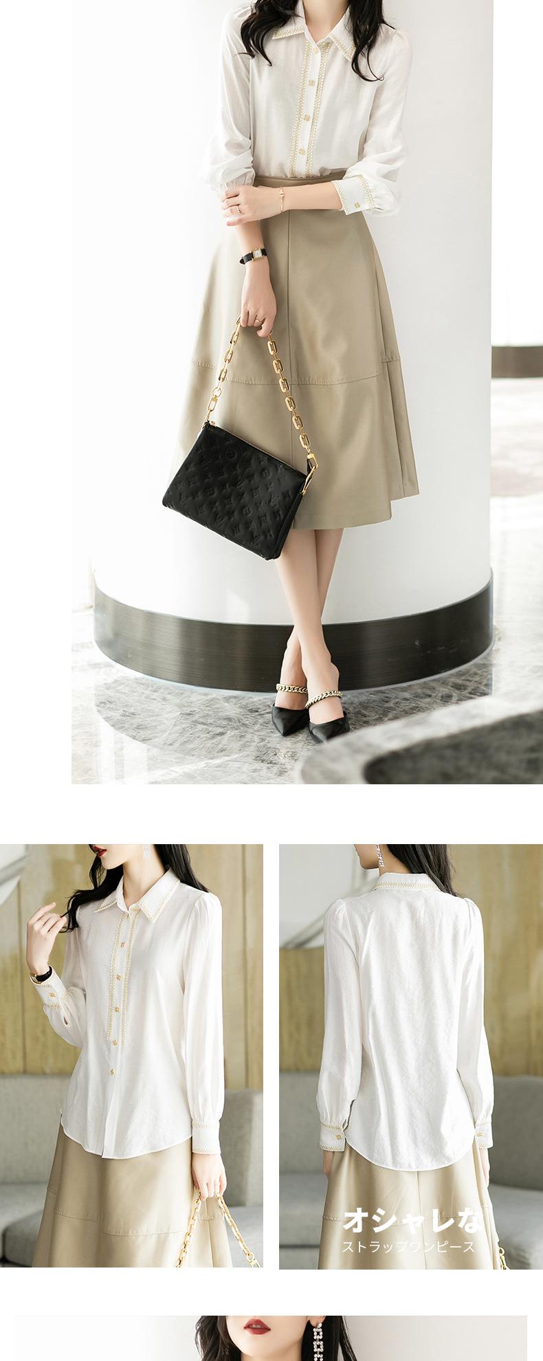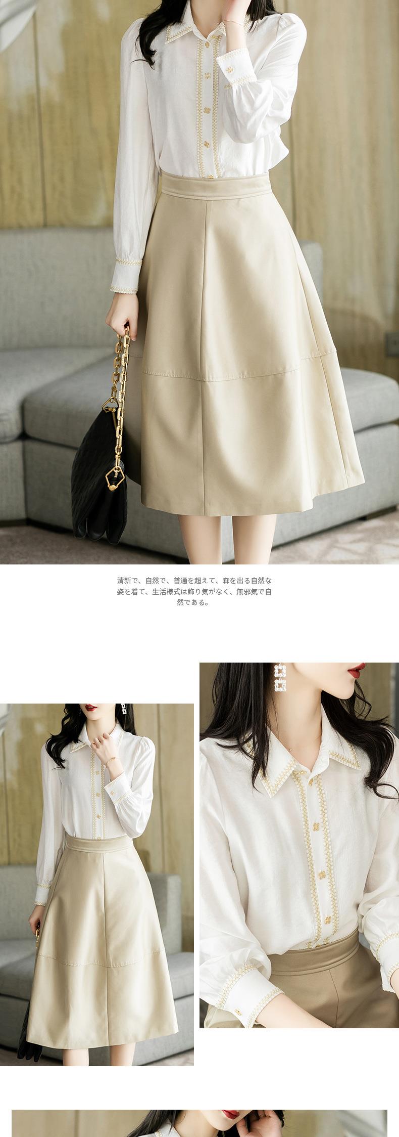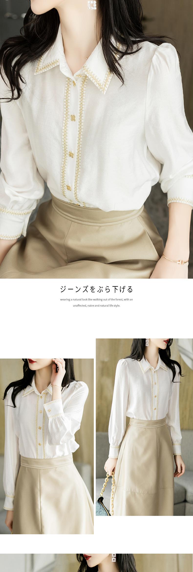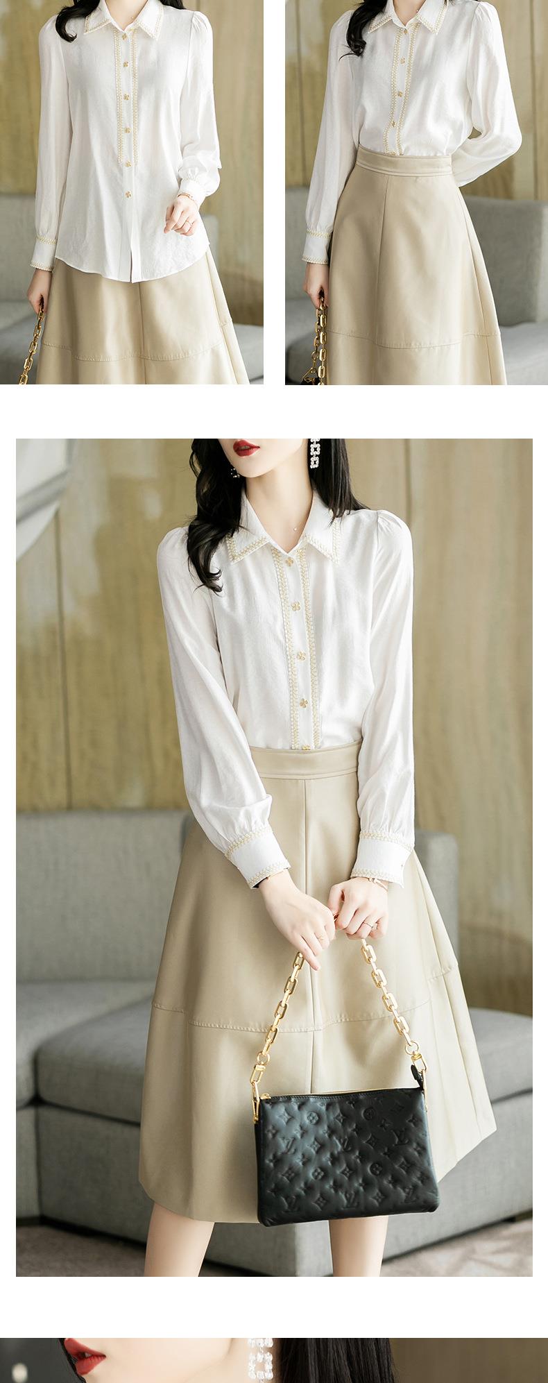 2023秋装新款小香风棉衬衫女长袖翻领白色女士衬衣2067