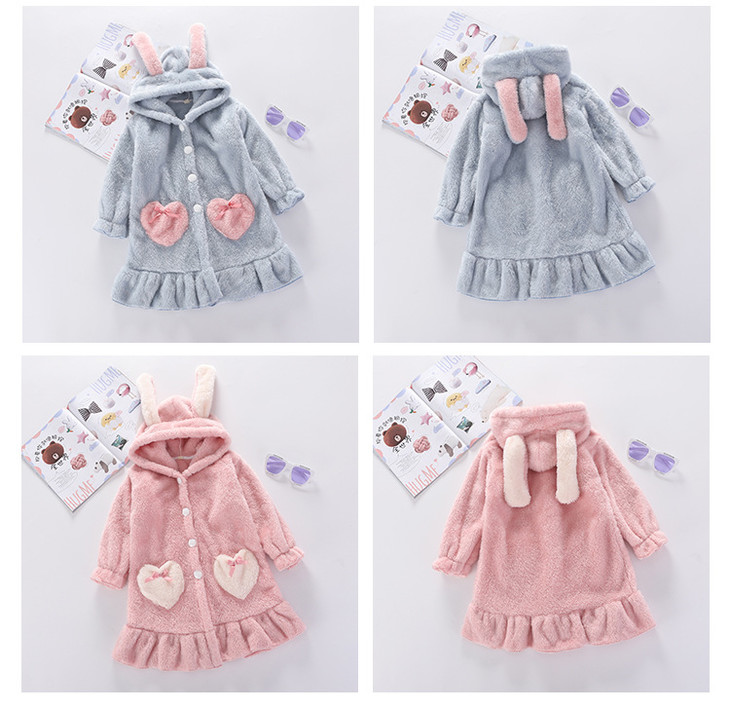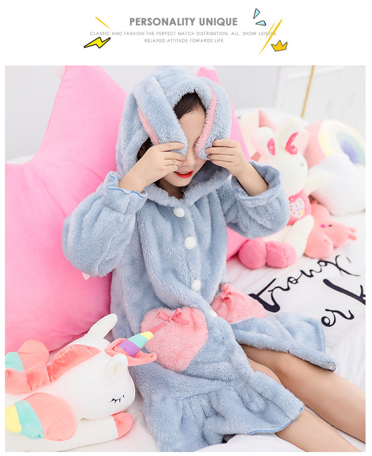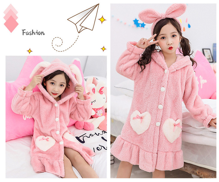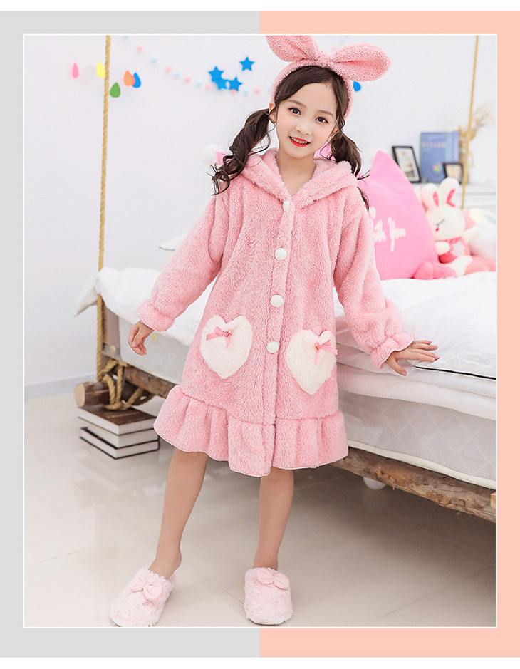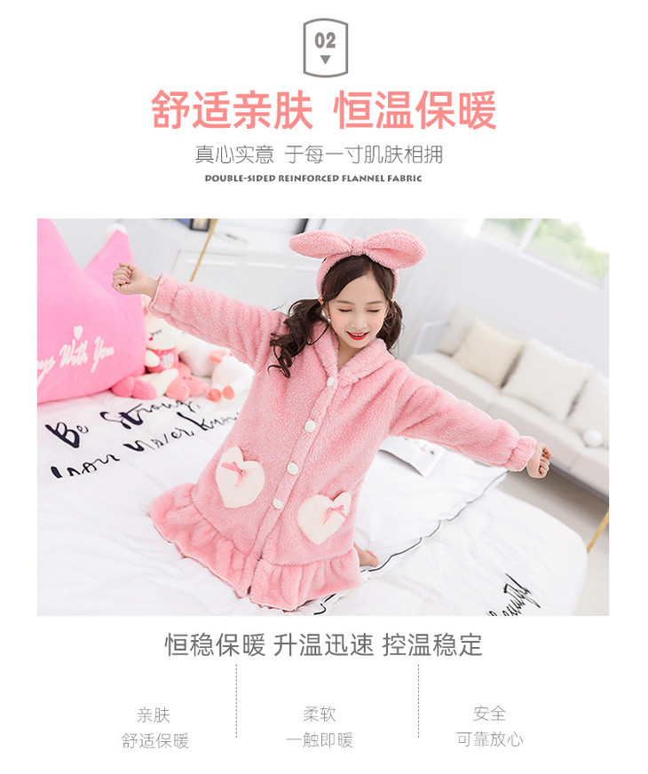 【童装】女童睡袍睡衣冬季童装女童双面加厚长毛绒家居服中大童浴袍冬