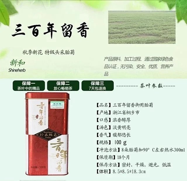 三百年留香御用特级胎菊王(正宗桐乡杭白菊花茶)100克一罐铁罐装
