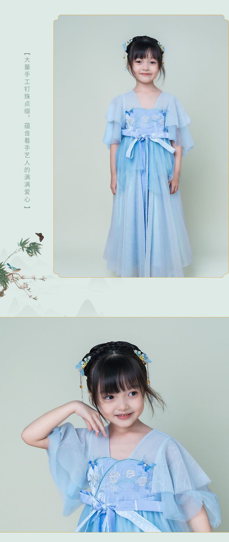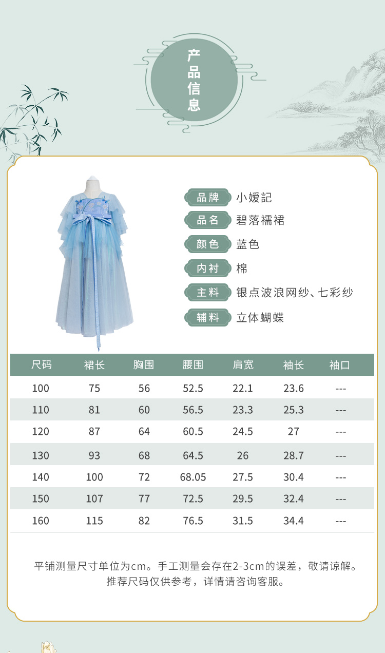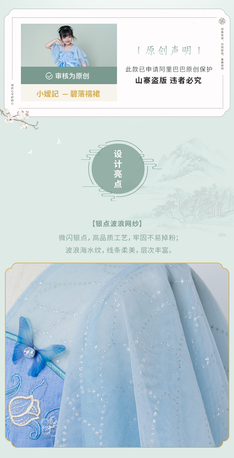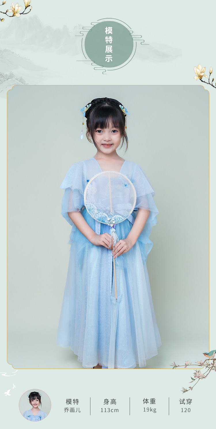 小嫒記 汉服女童秋季儿童汉服超仙中国风高定秀款连衣裙-碧落襦裙