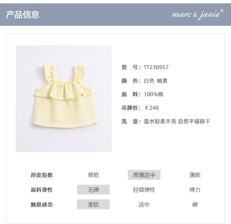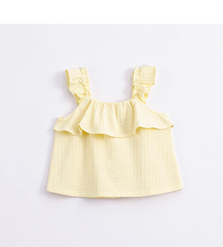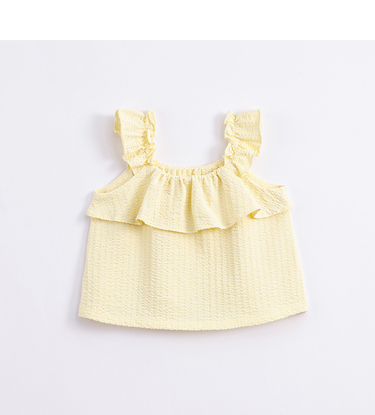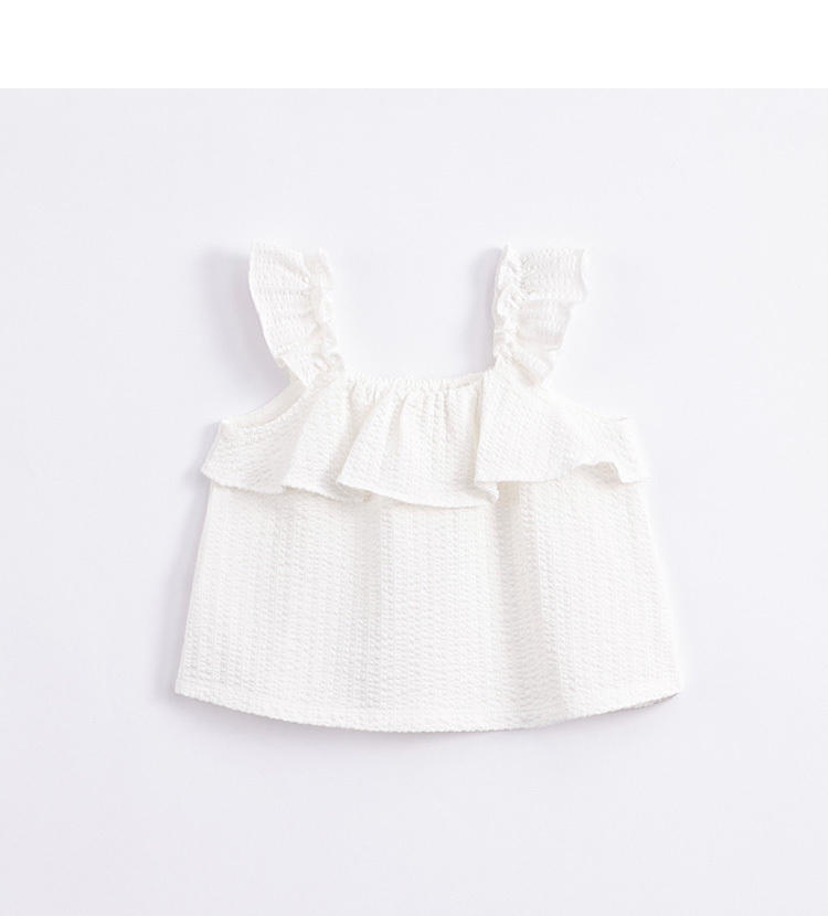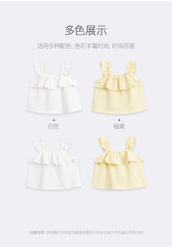 马克珍妮新款夏装 女童舒适泡泡棉花边吊带小衫230957