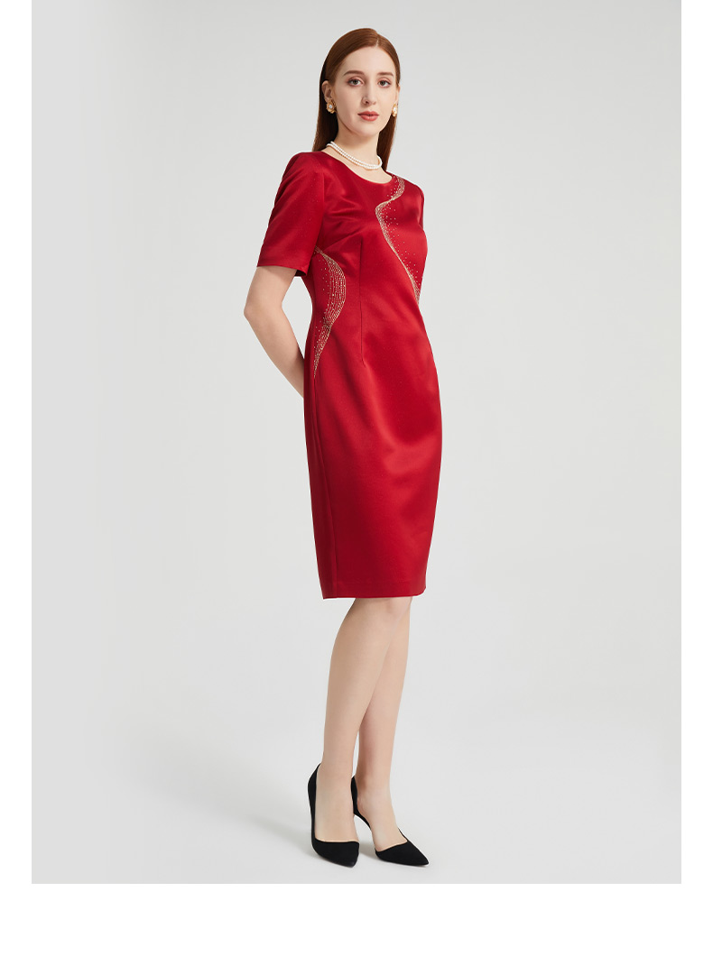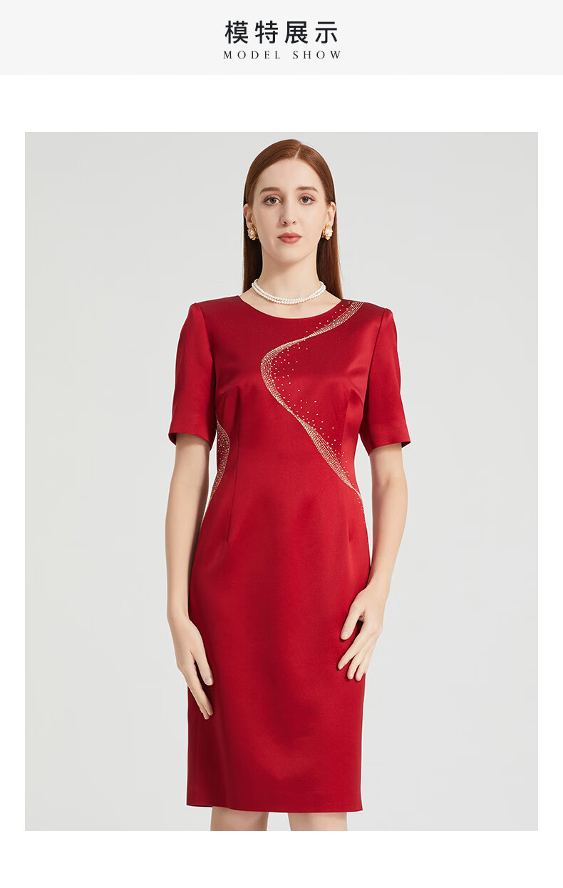 皮尔卡丹女装新款春季新款优雅修身礼服连衣裙P2206D2046T0