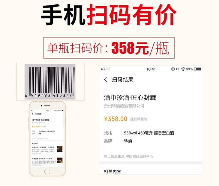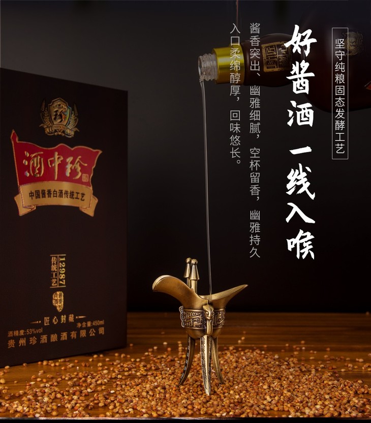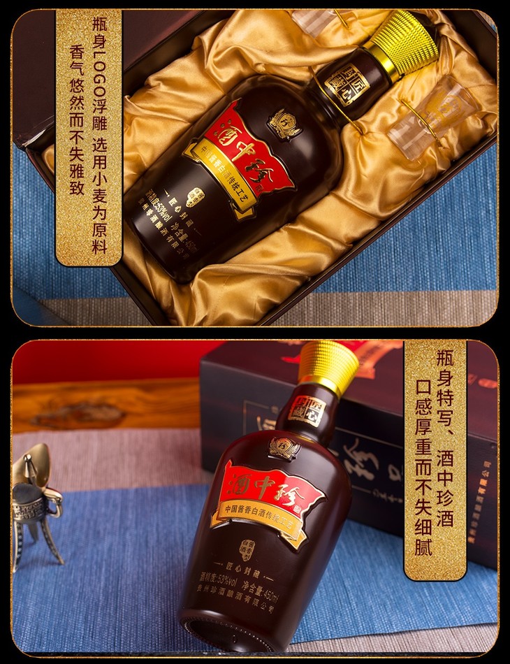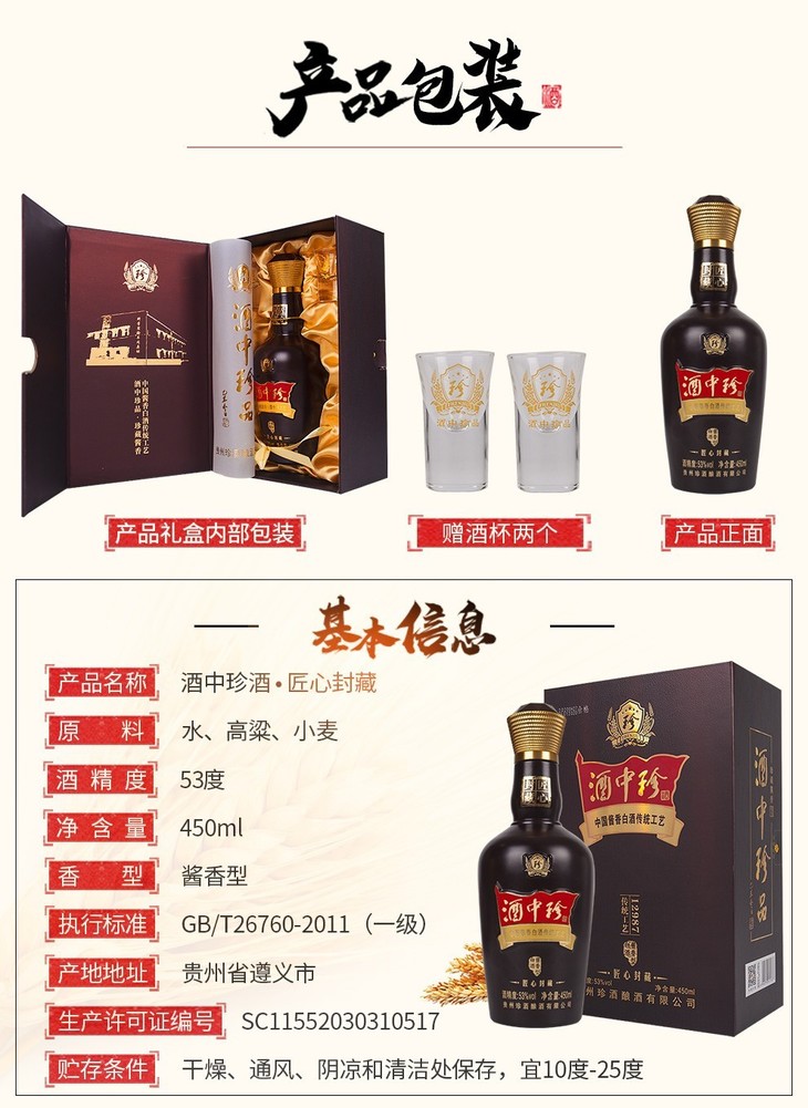 珍酒酒中珍酒匠心封藏白酒酱香型白酒53度450ml/1瓶/2瓶