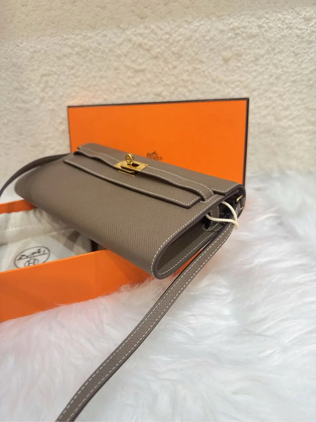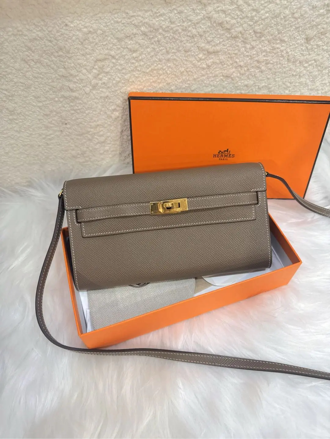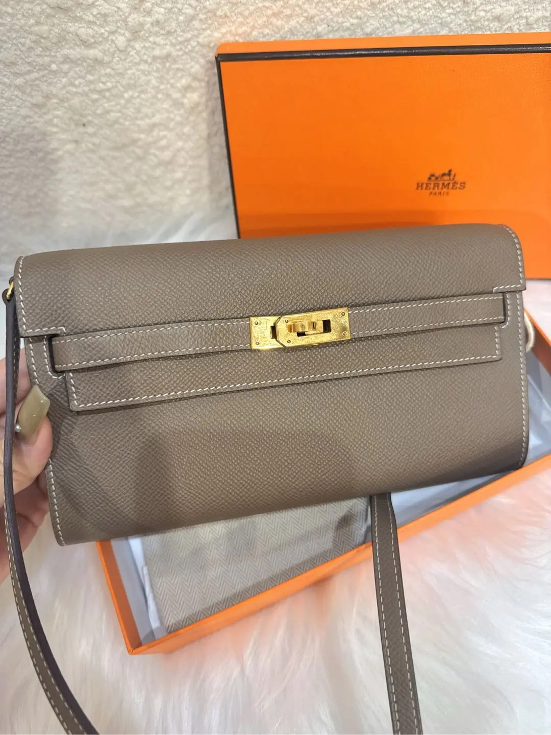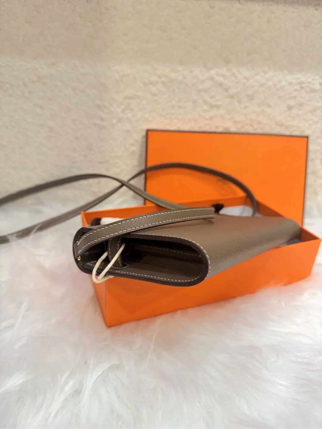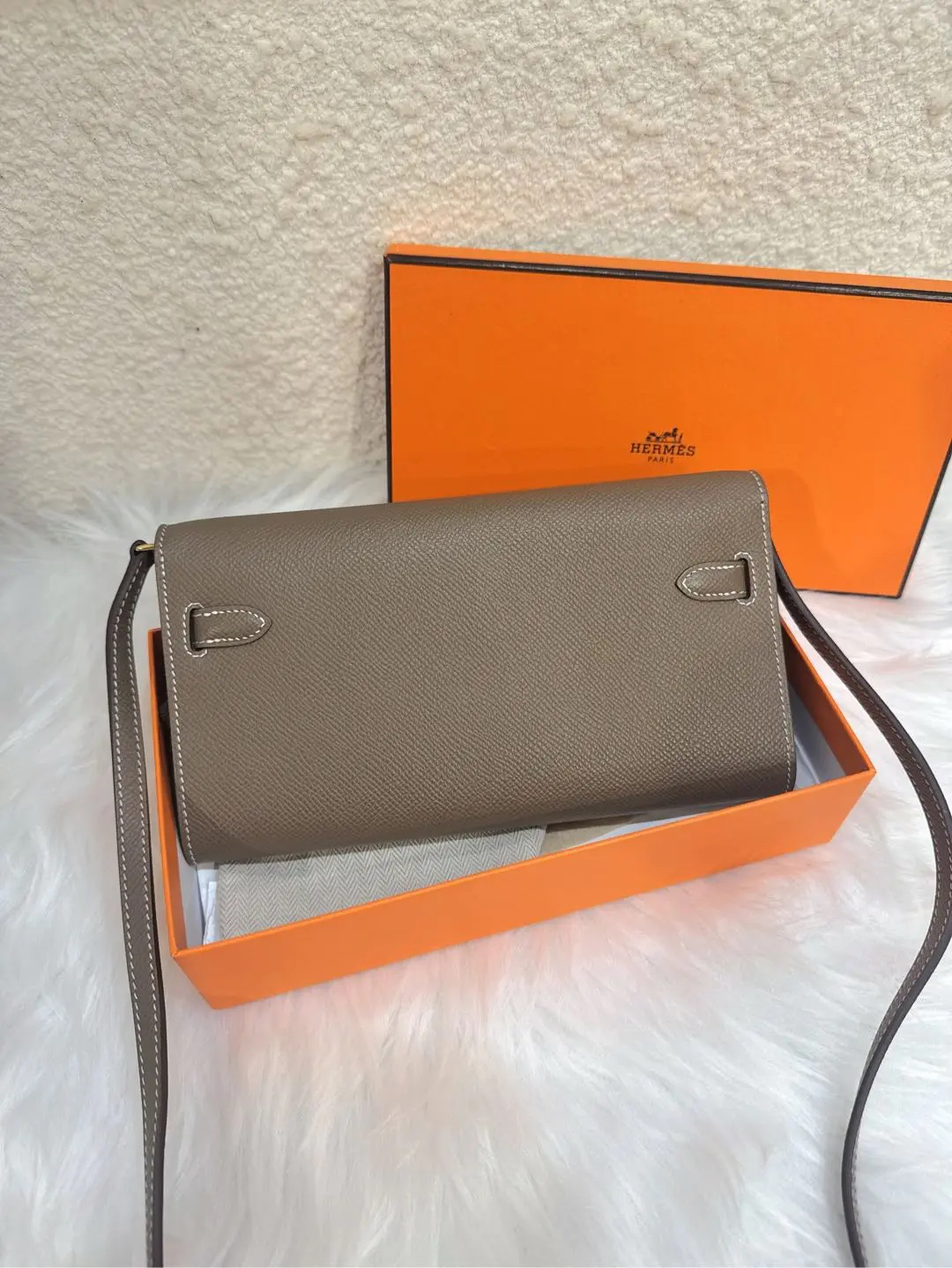 爱马仕 Kelly to go ep皮 大象灰 金扣 钱包
