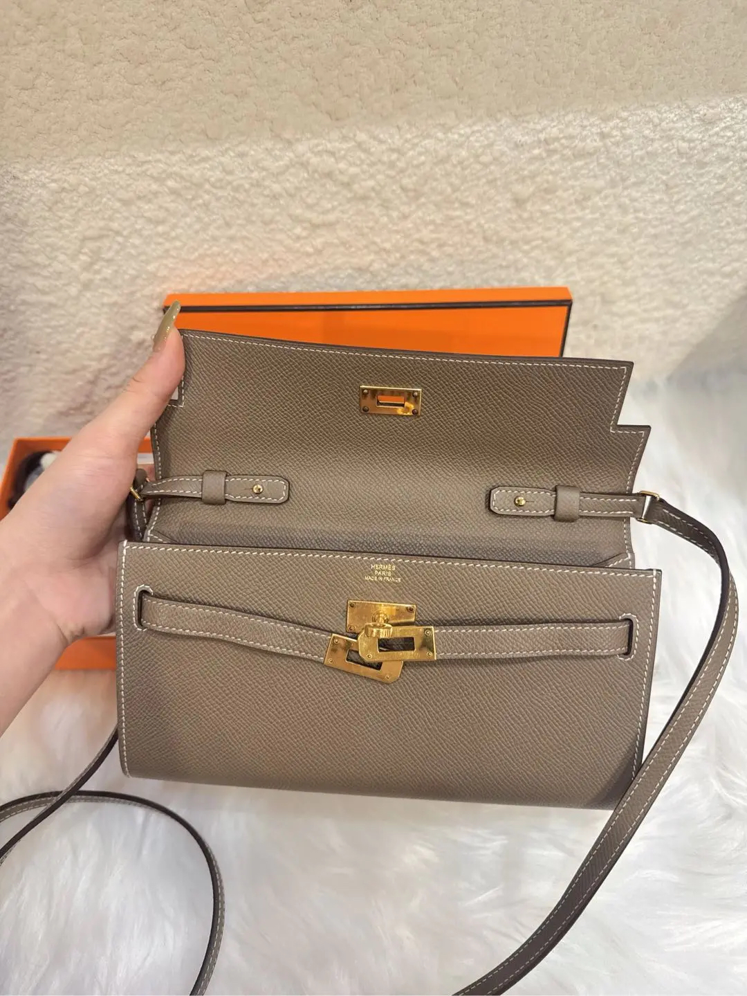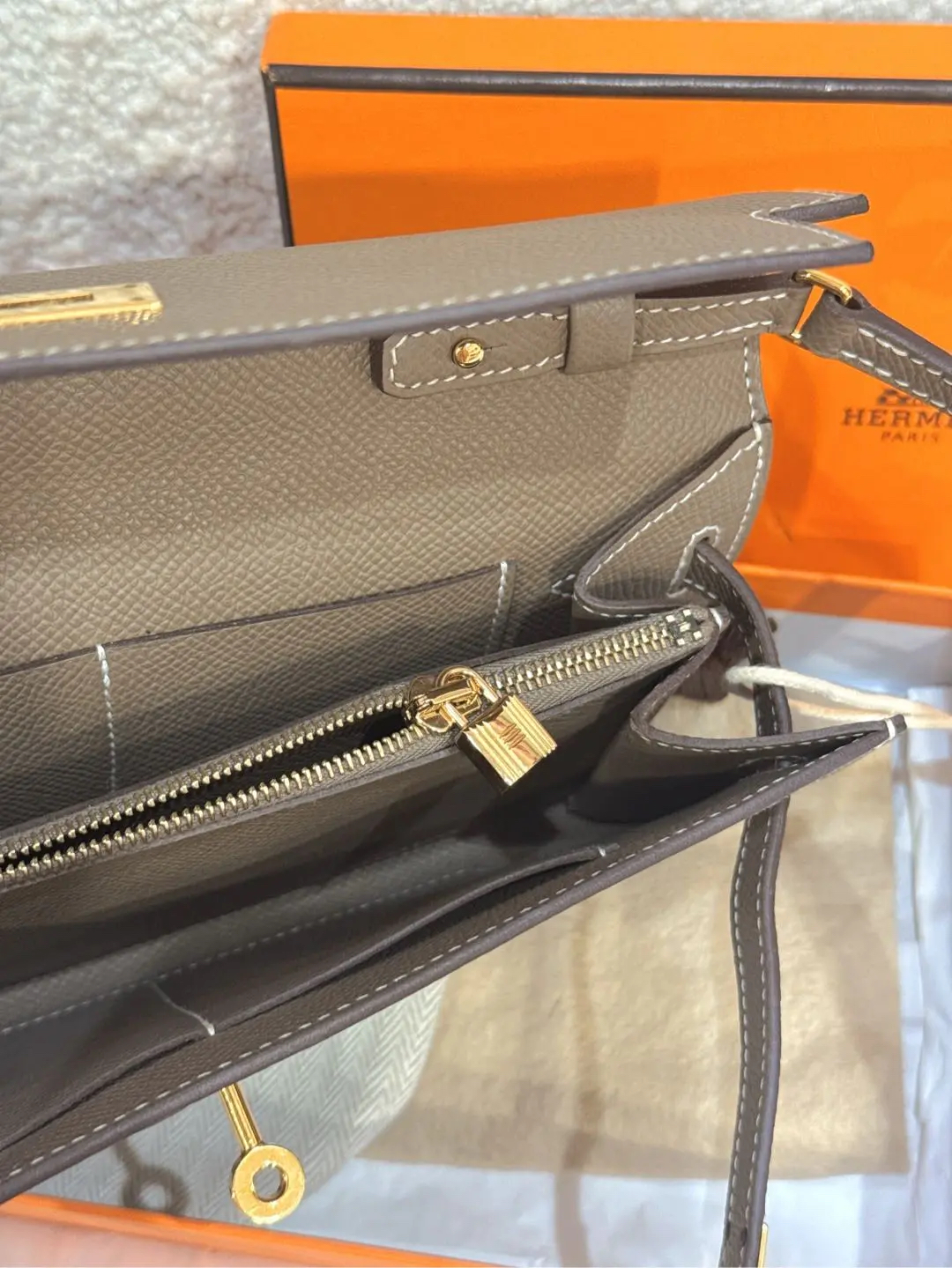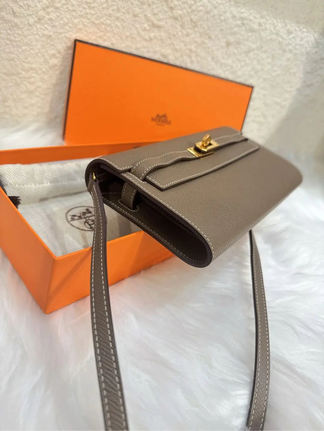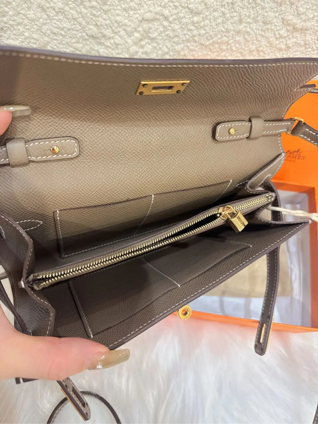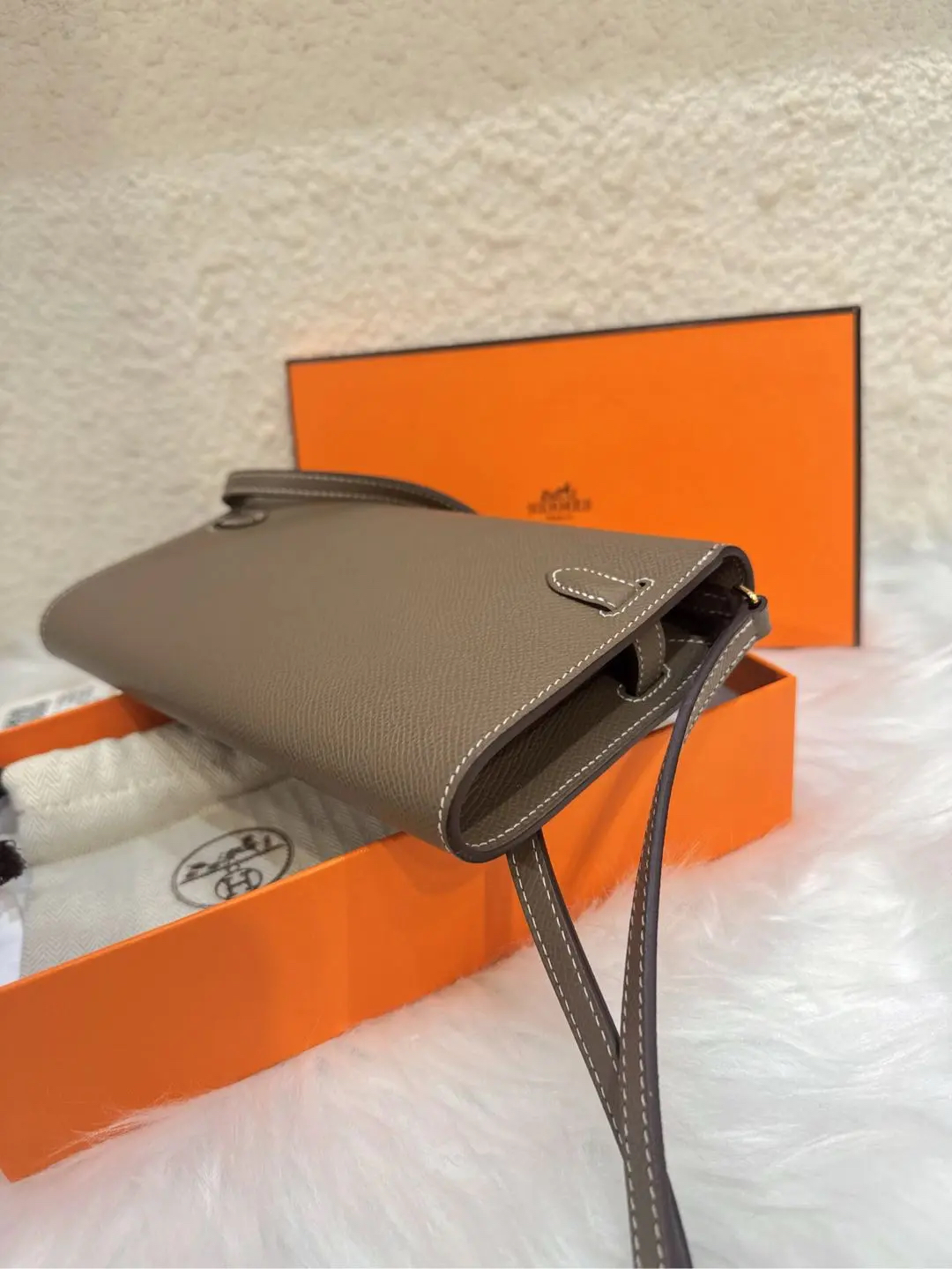 爱马仕 Kelly to go ep皮 大象灰 金扣 钱包