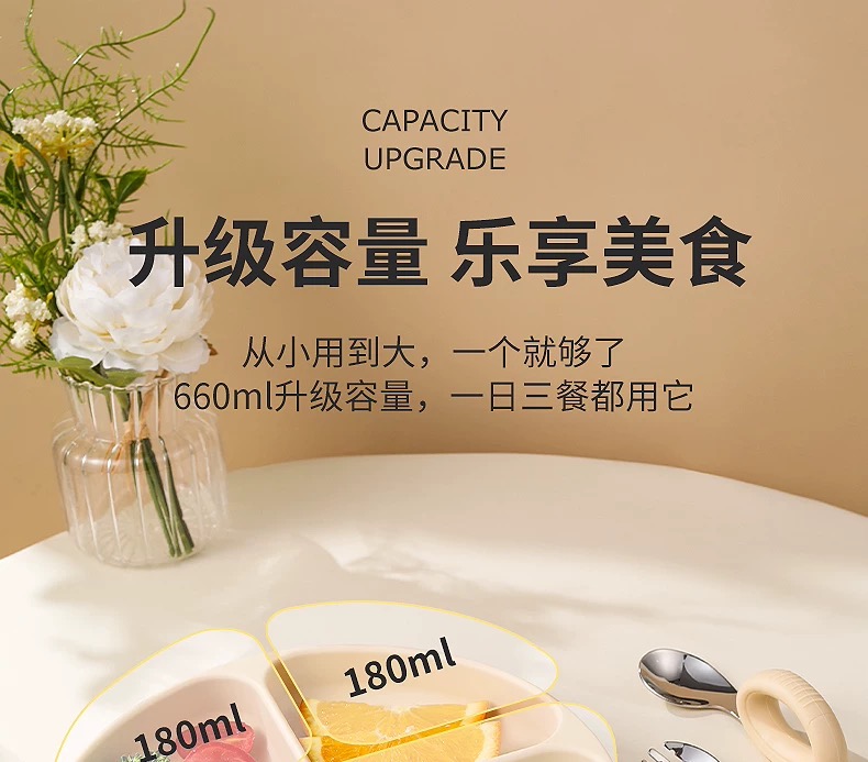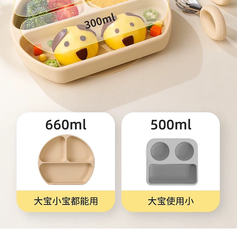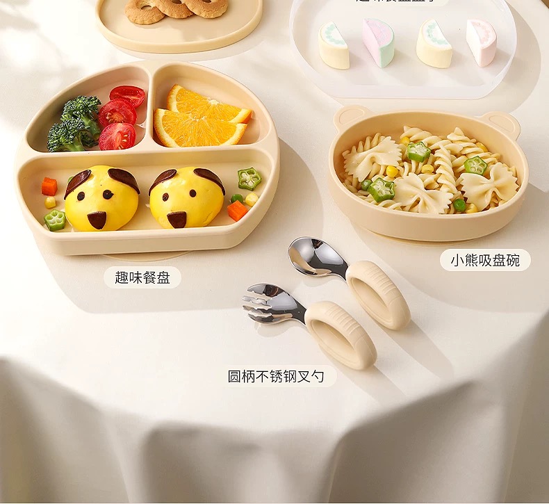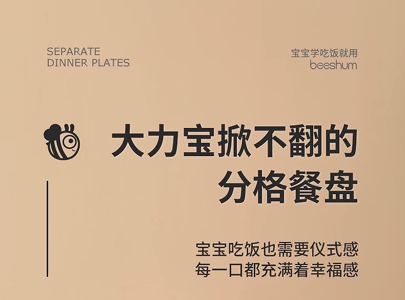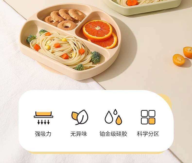 beeshum贝斯哈姆宝宝笑脸餐盘硅胶吸盘式儿童自主进食婴儿分格盘