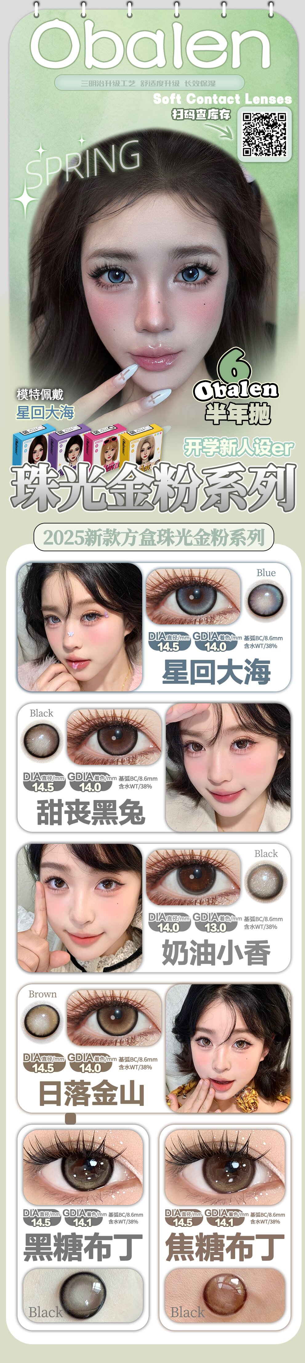 超值囤货【88/4副】Obalen欧巴兰新品方盒半年抛美瞳【款式任选】自然纯欲款彩色隐形眼镜2片装