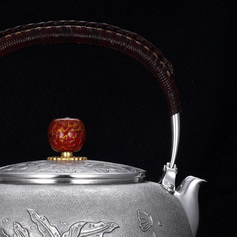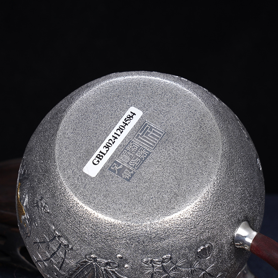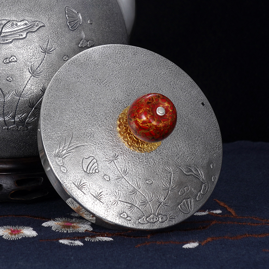 天地广袤,为鱼跃鸟翔提供了无尽空间。作品设计灵感取“在广阔天地中,人亦可自由施展才能”之意,以仿古、錾刻工艺打造。飘荡海草、沉寂贝壳、镀金游鱼等元素,呈现在此“壶”中天地。观此壶,如见大海之辽阔,天际之高远,心旷神怡,胸怀壮志。愿持此壶者,皆能如鱼得水,如鸟翔空,自由驰骋于人生之路,成就非凡之业。