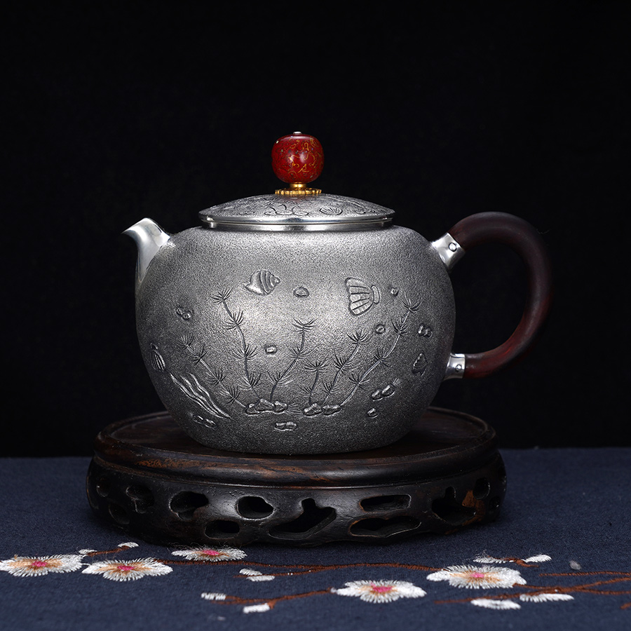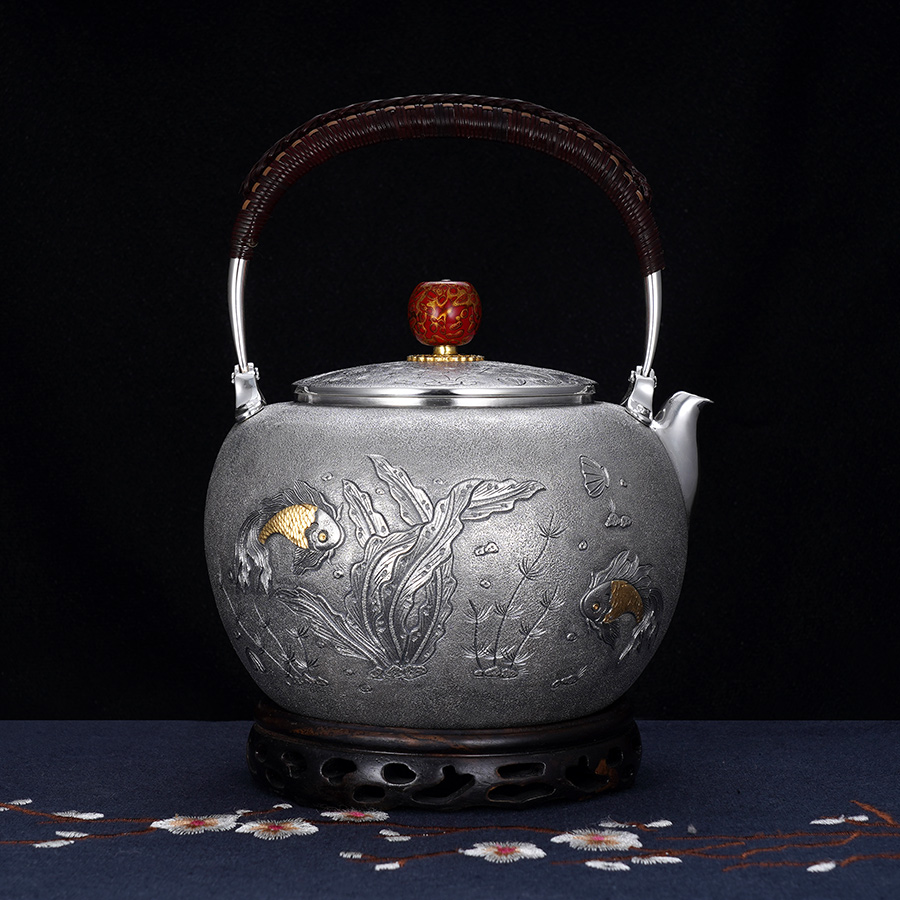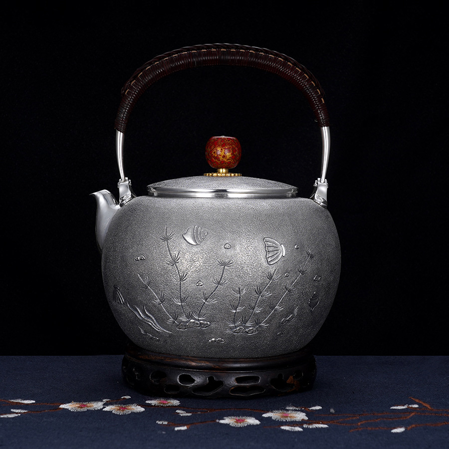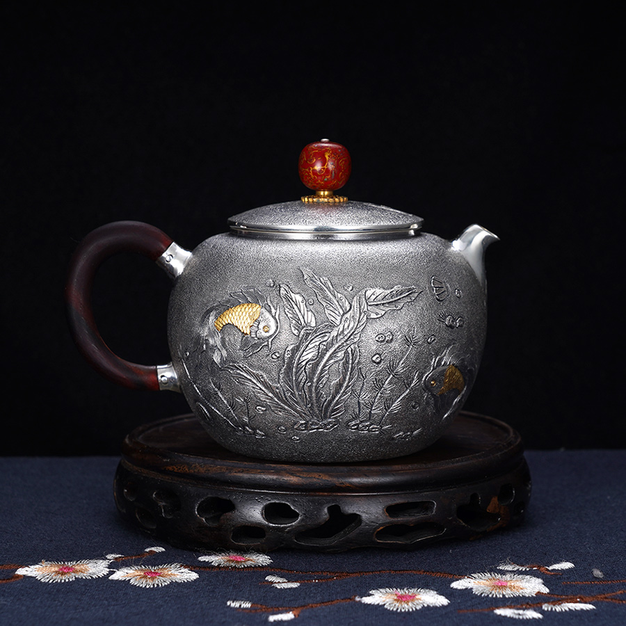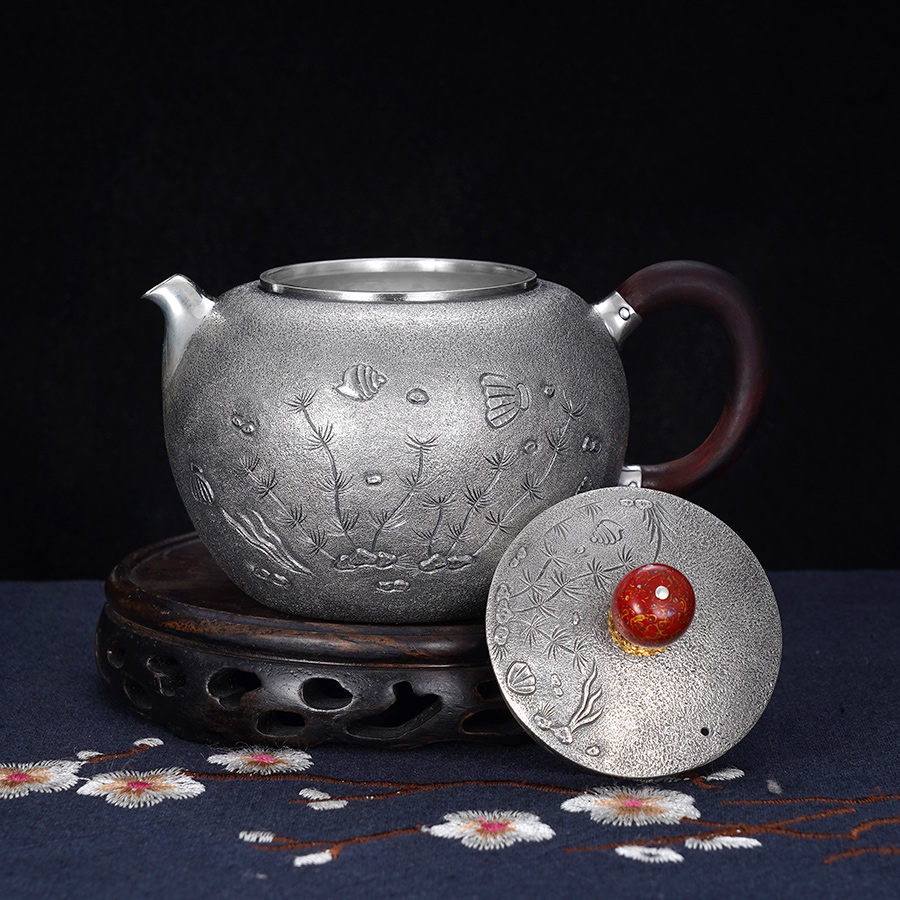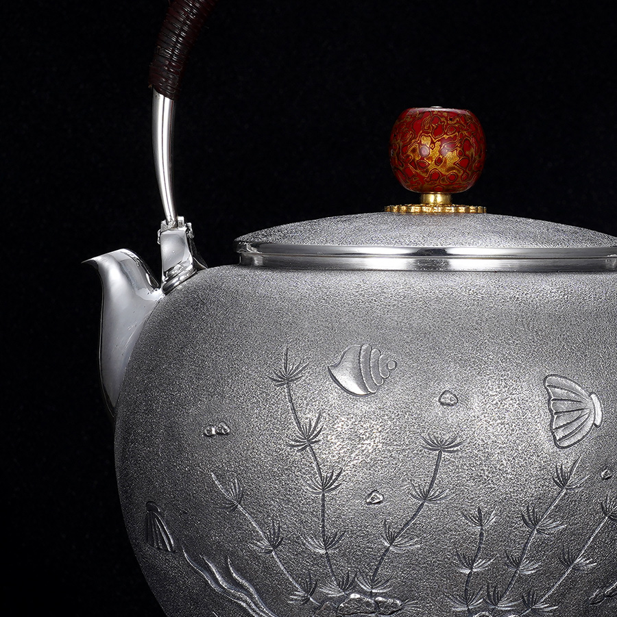 子佩集S990银【海阔鱼跃】纯银套装【HY008】【HY010】【HY009】提梁壶小茶壶公道杯摆件套装原创作品2501
