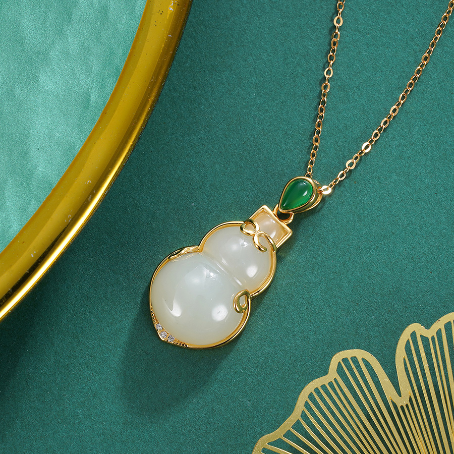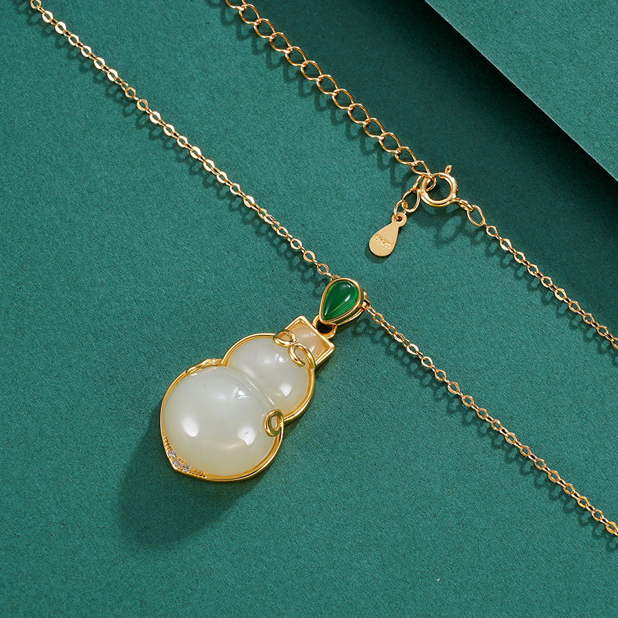 子佩集S925银【福禄长久】和田玉套链项链【WSB6813】镀金国潮葫芦(微瑕)2306