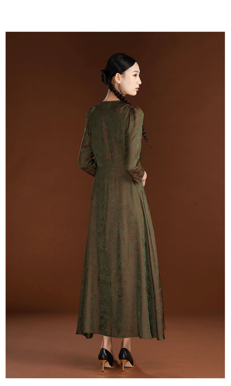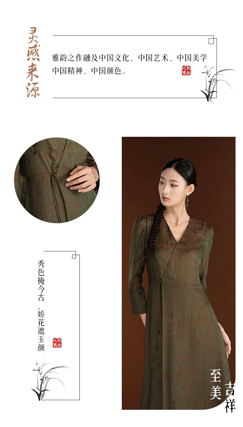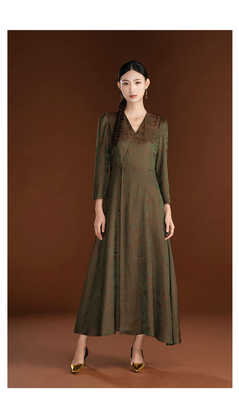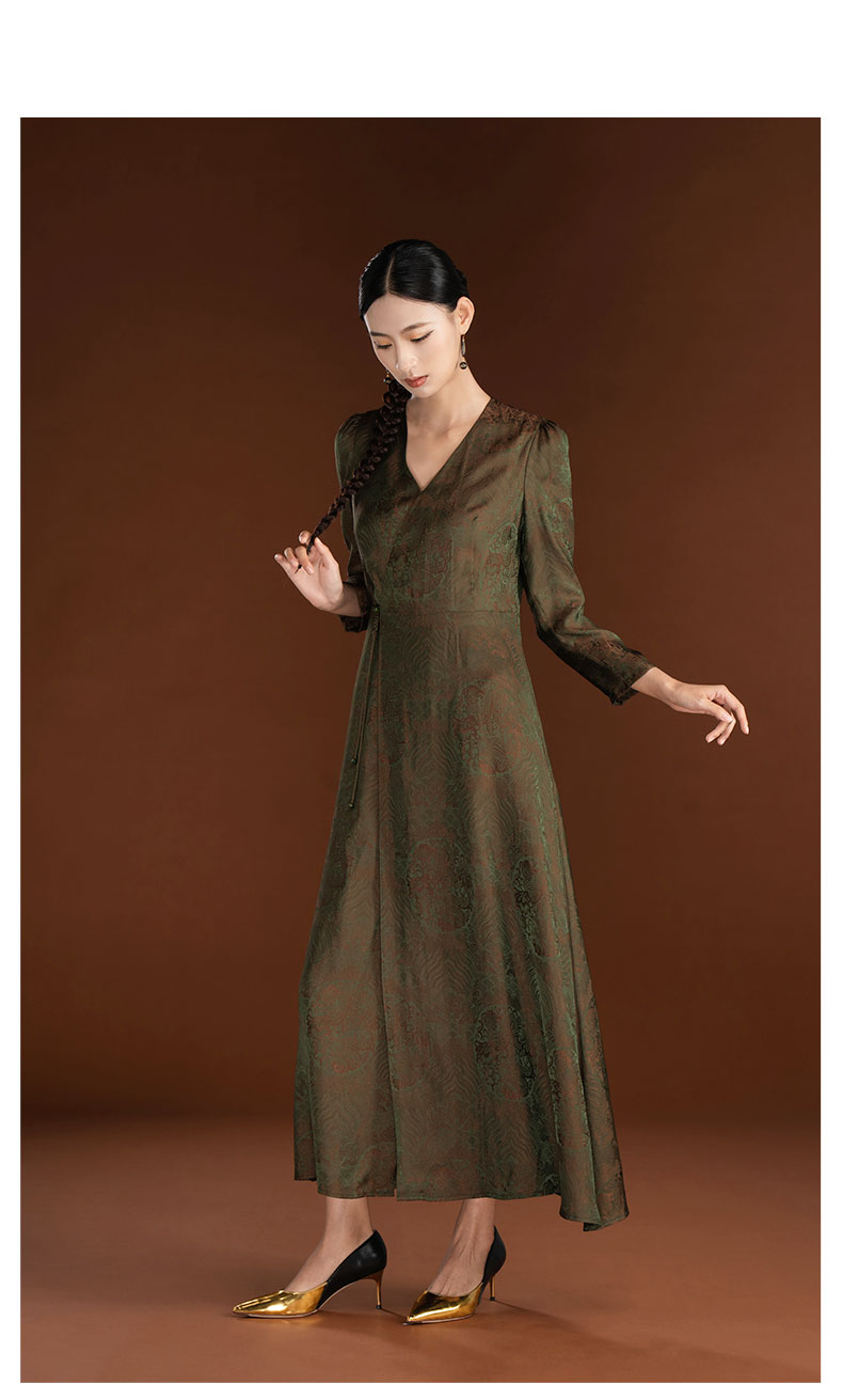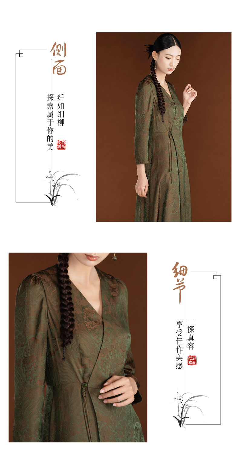 吉祥衣家国风V领气质优雅高级新中式显瘦轻奢女装山扶晚月连衣裙
