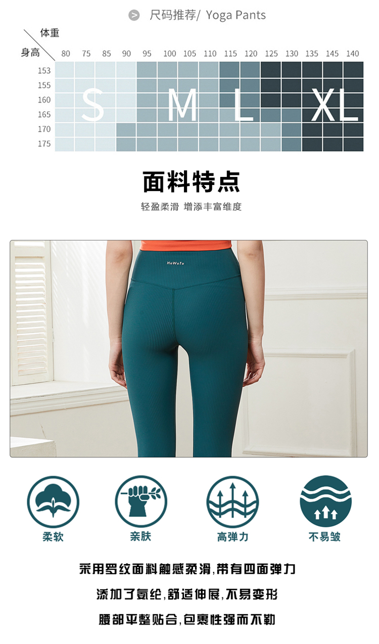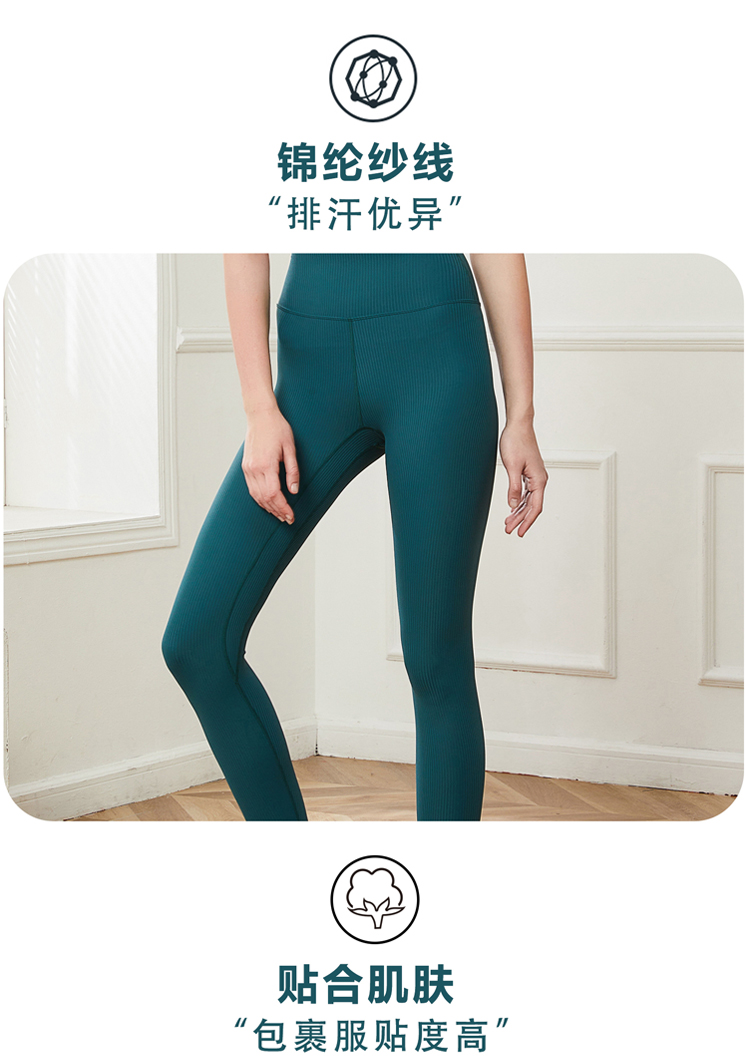 哈瓦塔进口LULU罗纹运动高腰瑜伽九分裤BRA